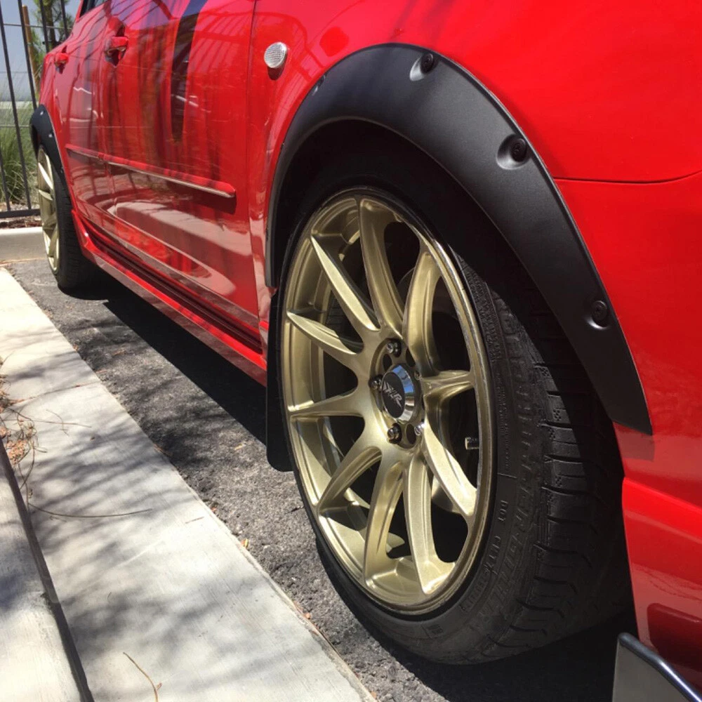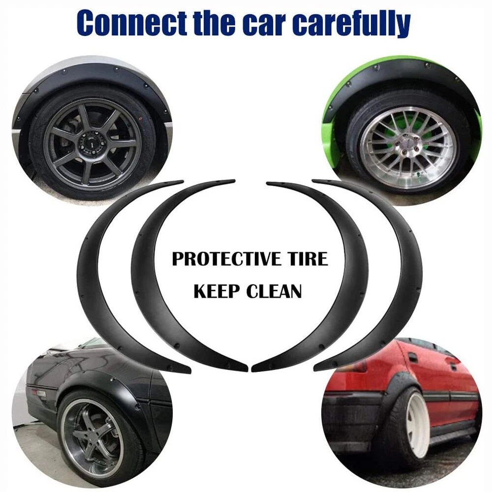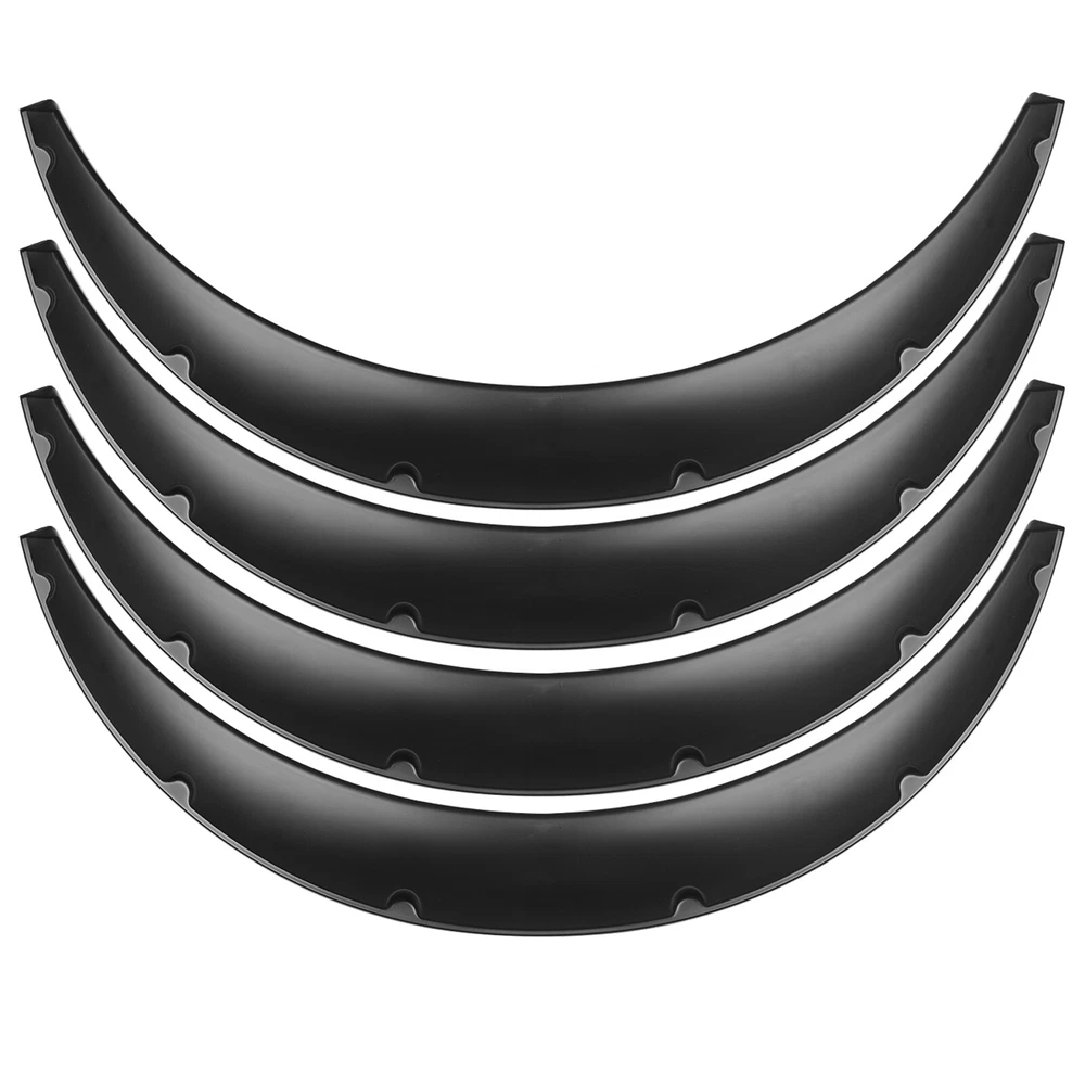 Feature: -Smooth and precise edge cutting finish. -Additional Coverage for Larger Tire and Wheel Packages -Improve Appearance and Styling Dramatically -Protects wheel from mud, scratches, sand and other outer damage. -Made of high quality PP plastic, flexible and resistant to corrosion, harder and more durable. -Easy to install & Universal Fitment (Please make sure to measure vehicle's fenders size before purchasing) Specification: Fitment: Universal fits for most car. Installation: riveted / bolted / sealant silicone Material: PP Colour: Black Placement on Vehicle: Left, Right, Front, Rear Size: 34.84"/885mm (length), 13.62"/346mm (Height) *May not fit if other accessories are installed which may get in the way of the Fender Flares (i.e. mudflaps, body molding, ground effects, etc.* Package included: 4 x Fender Flare 24 x Set S crew How to select and install 1. Firstly, determine the diameter of the wheel eyebrow of the original car, then select the appropriate wheel eyebrow size; 2. After receiving the goods, put the wheel eyebrow in the original car, and there are 6 screws on the wheel eyebrow to determine the hole position; 3. Punch holes in the original vehicle and the wheel eyebrow and fix with screws. 4.If you want to change the color, you can do it by yourself. Please Note: 1. 1 inch= 25.4mm 2. Please allow 10mm error due to manual measuring. 3. Installation i nstructions not included, professional installation and modification are required.