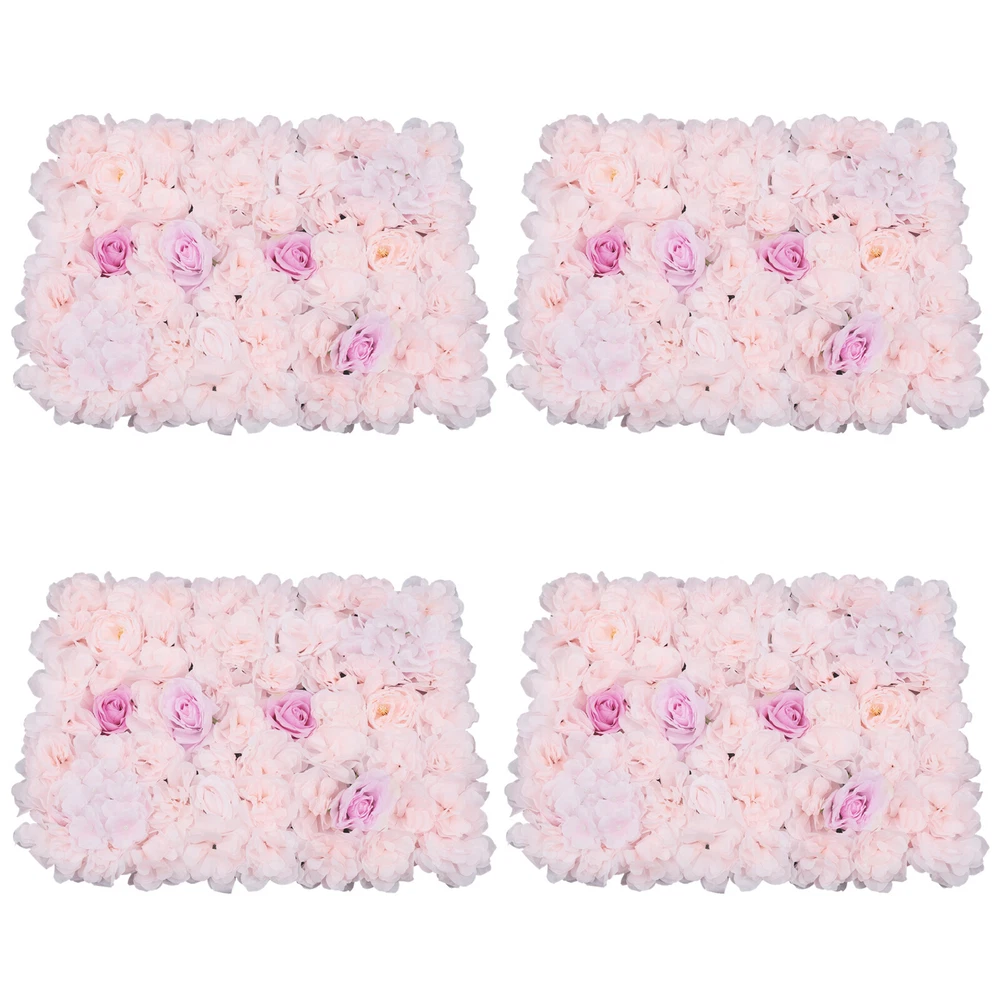 4Pcs Artificial Flower Wall Panel Backdrop Wedding Party Background Venue Decor