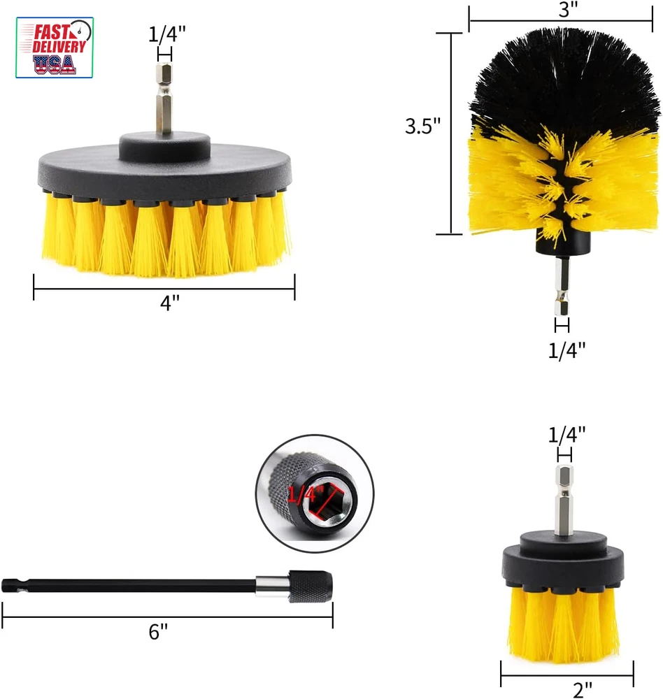 Store New Arrivals Add to Favorite View Feedback Contact 4Pcs Drill Brush Attachment Set, Drill Scrub Brush for Cleaning Shower, Tub, Bathroom (4Pcs) Description Unit Count 4.0 Count Product Dimensions 1"L x 1"W x 0.1"H Number of Items 4 Color Yellow Material Nylon, Polypropylene, Plastic Item Firmness Description Medium Item Weight 10.8 ounces Shape Round Surface Recommendation Floor, Tile, Grout, Carpet Included Components Attachment Special Feature Extendable Specific Uses For Product Bathroom, Tile, Shower, Bathtub, Grout, Sink, Wheel 【Efficient and Labor-Saving】: Our drill brush attachment set includes 3 different brushes and 1pcs extension attachment, enables you to clean your house more efficiently and with less effort compared to manual cleaning methods. Brushes can be used to clean a variety of surfaces both indoors and outdoors. 【Extended Reach Attachment】: To help you get into tight spaces and hard-to-reach areas, our drill brush attachment kit includes a 6" extension. Whether it's stove grates, drip pans, crevices or your car, the extension attachment will help you clean hard-to-reach areas thoroughly and efficiently. 【Quick and Easy Change】: Each scrub brush in our set features a 1/4" molded-in quick-change shaft with corrosion-resistant zinc/nickel plating. This means you can easily attach the brushes to most cordless drills or impact drivers. In addition, the end of the extender slides out for quick and easy brush replacement. 【Durable Materials】: Our power scrubber cleaning brushes are made of high quality nylon and plastic materials. The plates are made of polypropylene plastic. Nylon bristles without wire will not scratch the surface which you want to clean. 【Wide Application】: Different sizes and shapes of our drill brushes make them suitable for a wide range of cleaning applications such as bathroom surfaces, kitchen surfaces, sinks, bathtubs, showers, tiles, grout, toilets, carpets, cars, boats, car rims, wheels, etc. Our drill brush set is versatile and efficient in tackling any cleaning task you may have. Specifications: Item Name: 4pcs drill brush attachment set Extension Rod Connector: 1/4in hex Extension Rod Length: 6in Bristle Hardness: Medium Item Color: Yellow Package Weight: 10oz Package List: 1 × Wire brush 1 × 2.5" Tapered brush 1 × 4" Flat brush 1 × Extension rod ABOUT US We offer the best prices around on high quality products. Our E-store includes media such as books, movies, music and games while offering electronics, toys, sporting apparel, clothing, tools, general home, garden items and more. SHIPPING We are always working hard to ensure your package arrives as soon as possible. Please understand that some factors like weather, high postal traffic, and the performance of shipping companies are outside of our control. We offer free shipping to the lower 48 states and ship within 2 business days of payment, usually sooner. We do not accept P.O. Boxes. Please provide a physical address. For shipping outside of the continental USA, we only use eBay's Global Shipping Program.The item is shipped to KY and then sent to the rest of the world. International customers are responsible for all duties and taxes. Continue to check out in order to calculate costs for shipping the item to your country. Messages regarding eBay's Global Shipping Program MUST be directed at eBay EXCLUSIVELY. RETURNS We offer a 30-Day Return Policy on items which you are not completely satisfied with. You have the option for a full-refund or an exchange of the item. No returns are available on items shipped outside of the USA. PAYMENT We accept PayPal. CONTACT US This page content is yet to come Please ad us to your favorite seller and visit again later Thank You CUSTOMER SATISFACTION We try our very best to make sure every customer is completely satisfied. If there's a problem, message us! We're happy to help. WE ACCEPT Copyright © 2021 AutoDS. | All Rights Reserved