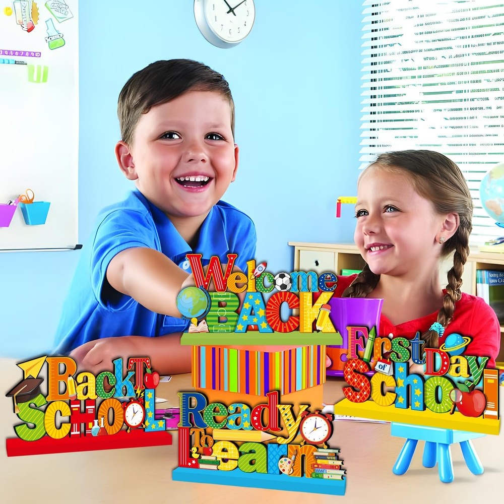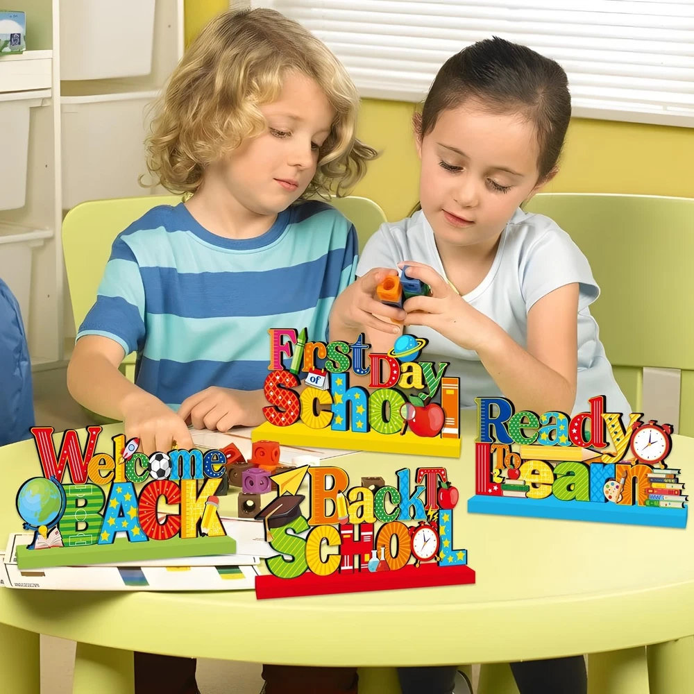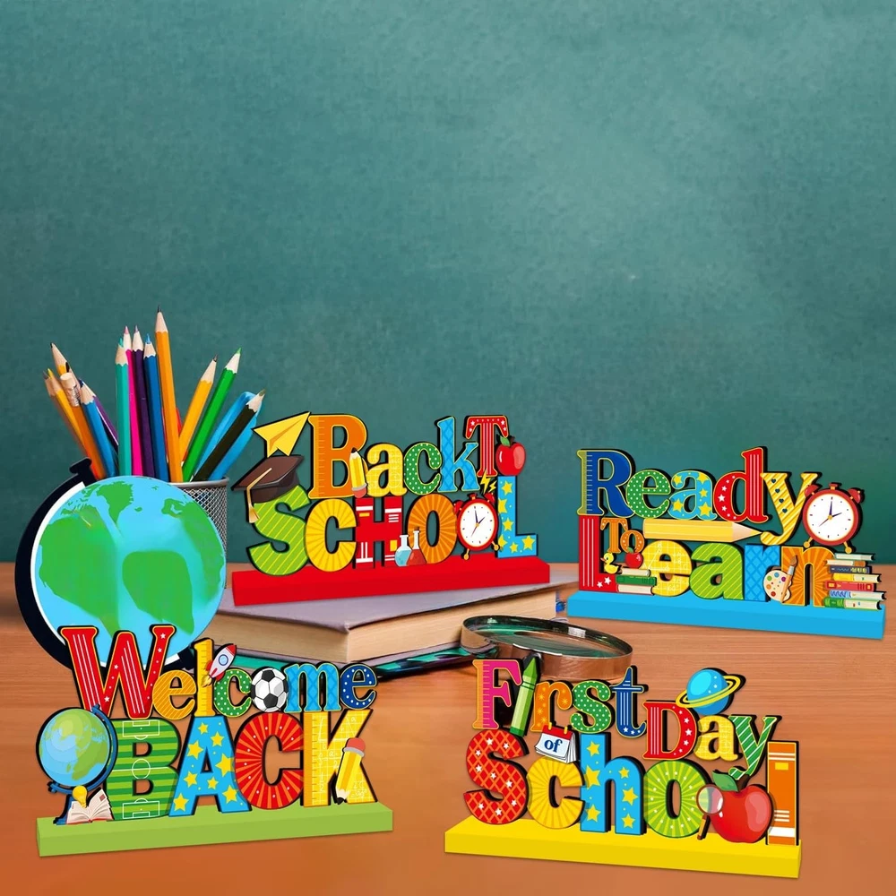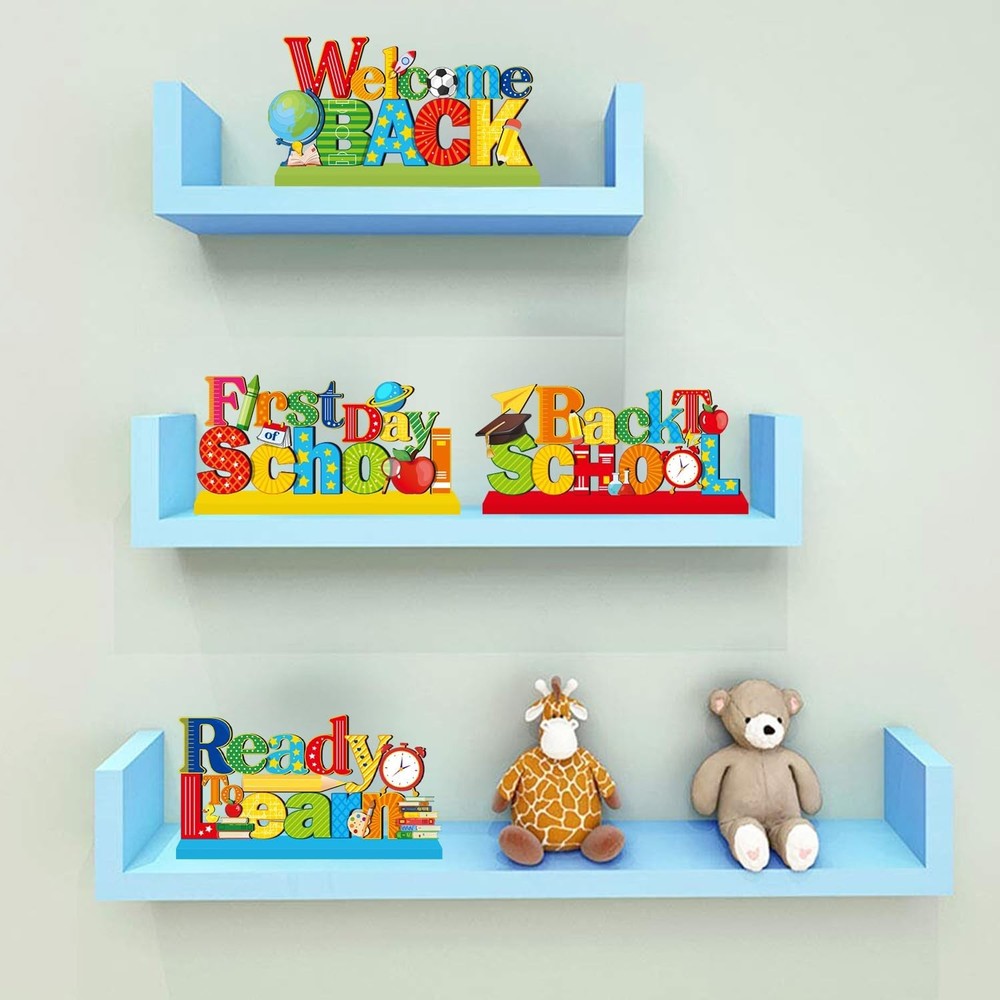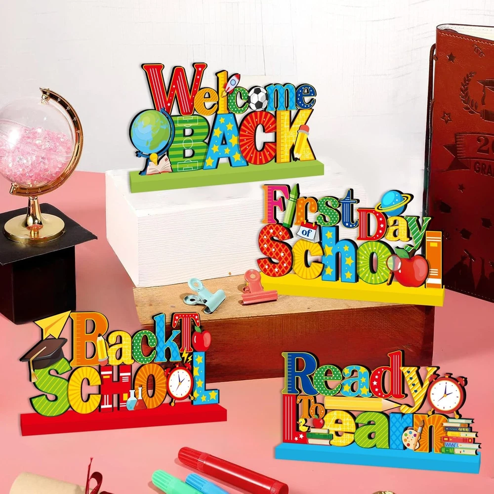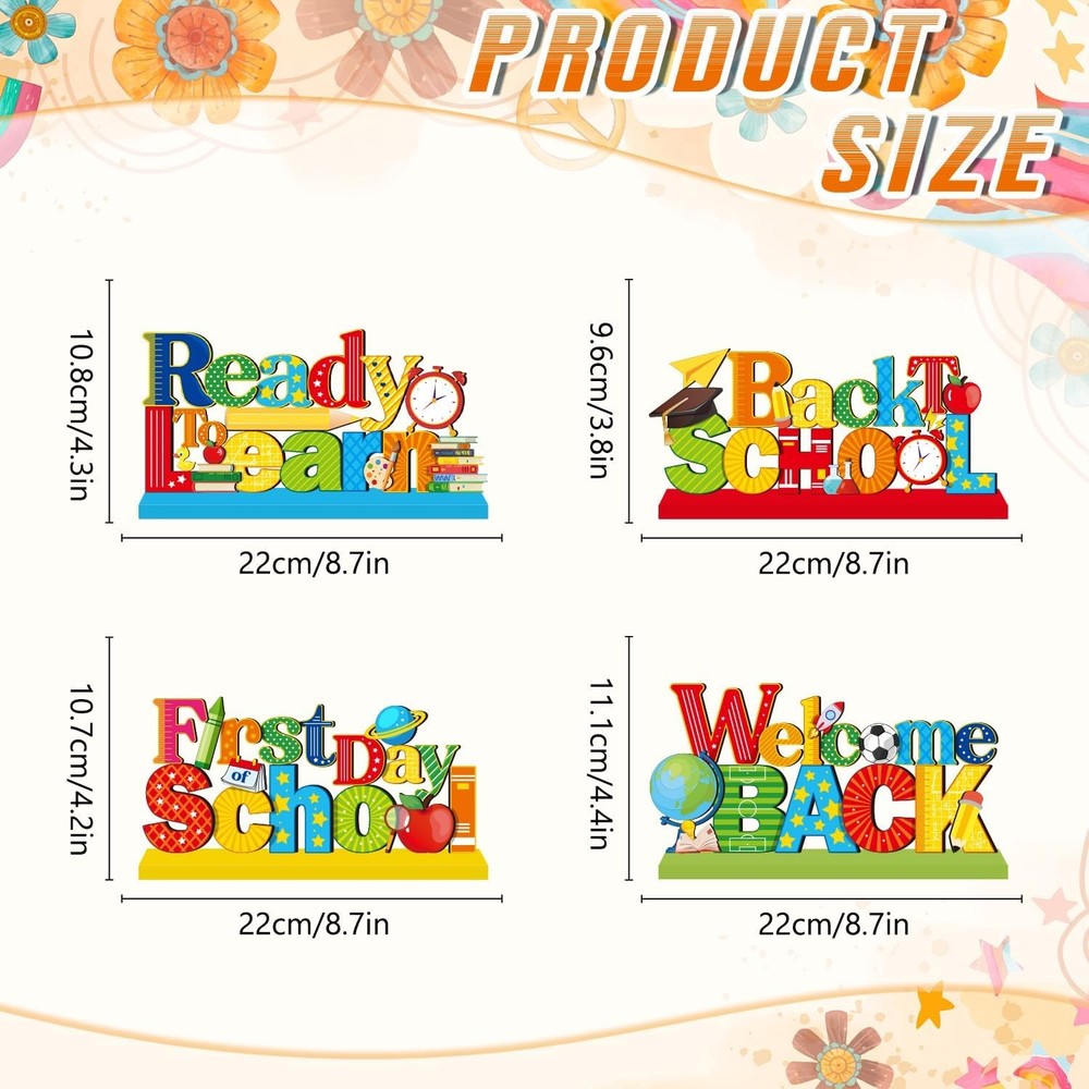 Free eBay listing template designed by dewiso.com 4Pcs Back to School Decorations, First Day of School Wooden Table Centerpiece Welcome Back to School Table Decorations Ready to Learn Table Topper Sign for School Classroom Decor FREE AND FAST SHIPPING! Unique Design: Our welcome back to school decorations designed with fun school elements, A blend of classic color, green,yellow, red, blue which are consistent with the colors of the back to school theme; Shine and cute combination of back to school decorations elements is enough for you to celebrate the back to school party Package content: you will receive 4 pieces of back to school decorations for table, 4 styles printed with iconic phrases with "Ready to learn", "Back to School", "First day of school", "Welcome Back", which is a nice combination to create a warm atmosphere to your back to school decorations, rich styles to well meet your decorations needs on the first day of school Quality Materials: The back to school decorations is made of wood, with fine workmanship and printing is clear, you need to align the bottom of the wooden sign with the groove of the base, and press lightlyThe unique design can well meet your tabletop decorations demands Wide application: Back to school decorations are eye-catching additions to your classroom, living room, bedroom, reading room, office, dormitory, bookstore, and many other places. You can place them on shelves, tiered trays, coffee tables, desks, credenzas, which Bright color will create a cheerful first day of school for you Quality Service: Our customer service team is friendly and enthusiastic, if you have any questions or suggestions about our back to school decorations, please contact us directly. Product We offer a 30-Day Return Policy on items which you are not completely satisfied with. You have the option for a full-refund or an exchange of the item. No returns are available on items shipped outside of the US . Shipping We offer Free Shipping to the US and ship within 2 business days of payment, usually sooner. We use UPS express shipping. That's why your products are usually delivered within 3 days . Contact We try our very best to make sure every customer is completely satisfied. If there's a problem , message us! We're happy to help. 24/7 live chat available.