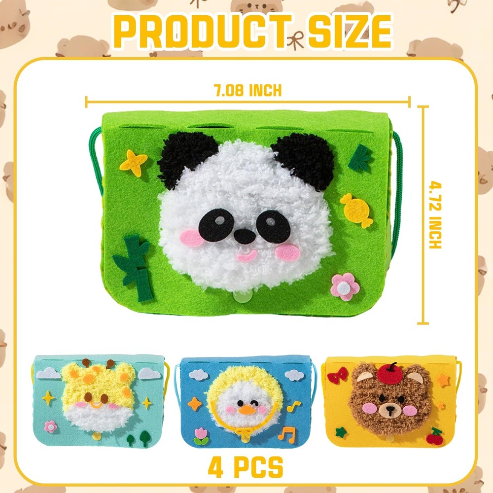 Package Includes: 4-piece sewing set for children (Deer, Bear, Panda, duckling) Age Range (Description): 5-12 Color: multicolor Theme: Animal Item dimensions L x W x H: 4.72 x 7.09 x 1.77 inches Material: felt 【Fun & Educational Sewing Kit】: This 4-piece sewing kit for kids includes adorable animal-themed bags (Deer, Bear, Panda, Duckling) made from high-quality felt. Perfect for beginners ages 5-12, it’s a great way to introduce kids to sewing and crafts! 【Complete Beginner-Friendly Set】: Each kit comes with safe plastic needles, colorful yarn, and easy-to-follow instructions. Designed for kids sewing kits age 5-8 and up, it helps develop fine motor skills, patience, and creativity. 【Encourages Creativity & Confidence】: Kids can design their own unique bags, mixing and matching colors and accessories. This sewing for kids ages 4-8 promotes self-expression and boosts confidence through hands-on crafting. 【Perfect Gift or Party Favor】: Individually wrapped and ready to use, these sewing kits for kids 8-12 are ideal for birthdays, holidays, or as party favors. They’re also a great activity for family bonding or playdates! 【Eco-Friendly & Safe】: Made from durable felt and sustainably packaged, this kids sewing crafts kit is safe for children and environmentally friendly. It’s a thoughtful choice for parents who value sustainable toys.
