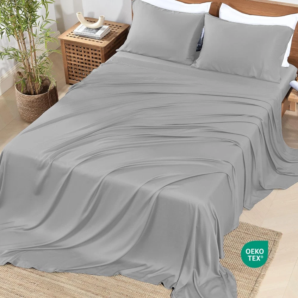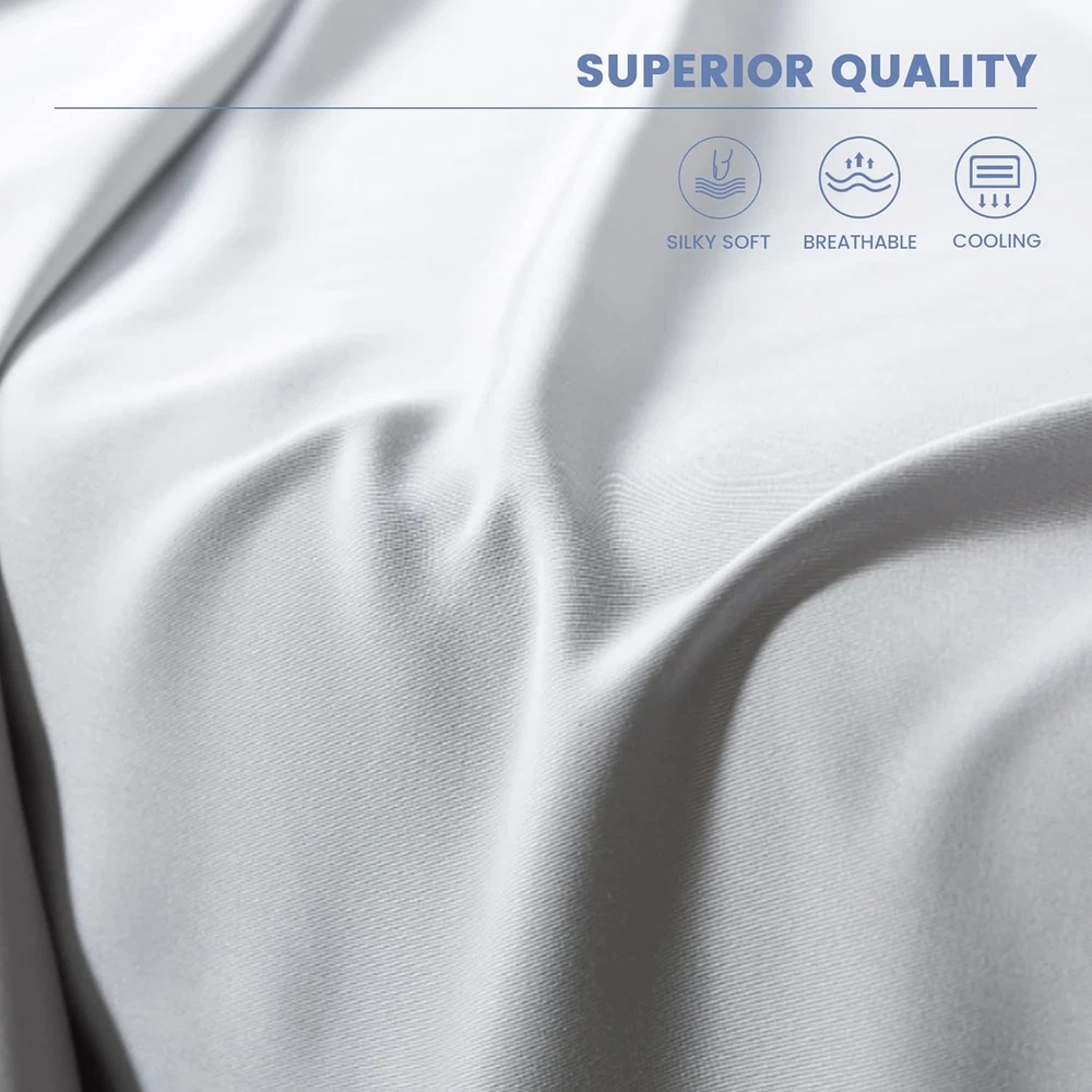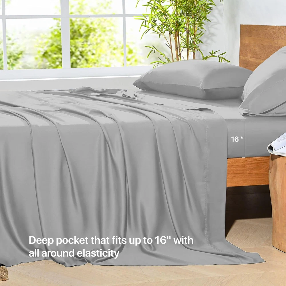 Store New Arrivals Add to Favorite View Feedback Contact Fast deliveries to the customer's home Quality customer service John Make the customers happy! 4Pcs Sheets Set Queen Size Rayon Derived from Bamboo Bed Sheets Soft Breathable 1 Flat Sheet, 1 Fitted Sheet, 2 Pillowcases Gray Lightgray Description 【High-quality Materials】 These high-quality sheets are ideal for people with sensitive skin. This Rayon Derived from Bamboo is certified by OEKO-TEX 100 and ensures the health and safety of your family. 【Comfortable and Smooth】 The silky smooth texture of these cooling sheets add a sense of luxury to your sleeping experience. The breathable fabric also helps keep you cool in the hot summer months. Fabric strength and shrinkage after washing better than common fabric. Washability better and shrinkage better. 【Cooling and Breathable】 Maintaining a cool body temperature is imperative for a good night’s sleep. The heat dissipating, breathable fabric has temperature regulating functionality that keeps you cool and dry throughout the night, providing a comfortable sleep in any season. Its moisture-wicking properties are helpful for hot sleepers, ensuring a deep sleep. 【Package includes】 Included in each set is 1 Fitted Sheet, 1 Flat Sheet and 2 pillowcases. Our 16”deep pocket sheets include high quality tear-resistant sheet straps on each corner to ensure a tight fit; even on thick and deep mattresses. They also help maintain a wrinkle-free bed, alleviating the need to constantly adjust them to maintain a neat and tidy bed. 【After-sales Service & Care】 If you have any questions or are not satisfied with your purchase, for any reason, you can contact us by email. We are committed to providing a satisfactory reply to all inquiries within 12 hours. Our bedding is durable and easy to care for. Machine wash in cold water and tumble dry on low speed – the sheets get softer with each wash. Product Description 100% ORGANIC BAMBOO Made from 100% organic bamboo fabric these high-quality sheets are ideal for people with sensitive skin. COMFORTABLE The silky smooth texture of these bamboo sheets add a sense of luxury to your sleeping experience. EASY CARE Our bedding is durable and easy to care for. Machine wash in cold water and tumble dry on low speed – the sheets get softer with each wash. 240TC BAMBOO 240TC of bamboo fiber, fabric strength and shrinkage after washing better than common bamboo fabric. Washability better and shrinkage better. DEEP POCKET 15” deep pocket sheets help maintain a wrinkle-free bed, alleviating the need to constantly adjust them to maintain a neat and tidy bed. DOUBLE STITCHED SEAM The double stitched seam is a winner in sewing. Double the work, double the strength, double the amount of thread by preventing fraying and keeping your fabrics looking their best. Style Solid Pattern Solid Country of Origin China Theme People Cartoon Character 4 Number of Pieces 4 Unit Count 1.0 Count Pillowcase Quantity 2 Material Rayon Derived from Bamboo Age Range (Description) Adult Seasons All Closure Type Envelope Item dimensions L x W x H 11.02 x 9.05 x 3.58 inches Item Weight 5.49 pounds Fitted Sheet Pocket Depth 16 Inches Special Feature Cooling, Hypoallergenic, Deep Pocket, Breathable Color Gray Thread Count 240 Included Components Pillowcases, Fitted Sheet, Flat Sheet Product Dimensions 11.02 x 9.05 x 3.58 inches Product Care Instructions Machine wash in cold water, Tumble dry on low speed Size Queen ABOUT US We offer the best prices around on high quality products. Our E-store includes media such as books, movies, music and games while offering electronics, toys, sporting apparel, clothing, tools, general home, garden items and more. SHIPPING We are always working hard to ensure your package arrives as soon as possible. Please understand that some factors like weather, high postal traffic, and the performance of shipping companies are outside of our control. We offer free shipping to the lower 48 states and ship within 2 business days of payment, usually sooner. We do not accept P.O. Boxes. Please provide a physical address. For shipping outside of the continental USA, we only use eBay's Global Shipping Program. The item is shipped to KY and then sent to the rest of the world. International customers are responsible for all duties and taxes. Continue to 'check out' to calculate costs for shipping the item to your country. Messages regarding eBay's Global Shipping Program MUST be directed at eBay EXCLUSIVELY. RETURNS We offer a 30-Day Return Policy on items in which you are not completely satisfied with. You have the option of a full-refund or an exchange of the item. No returns are available on items shipped outside of the USA PAYMENT We accept PayPal. CONTACT US This page content is yet to come Please ad us to your favorite seller and visit again later Thank You CUSTOMER SATISFACTION We try our very best to make sure every customer is completely satisfied. If there's a problem, message us! We're happy to help. WE ACCEPT