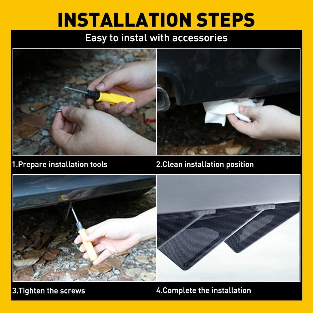 Features: 100% brand new and high quality Universal rear lower body bumper diffuser shark fin Personalize and update your car, stylish design gives a customized look. Ultra-lightweight and stylish in appearance. General; requires professional installation Specifications: Type: Rear bumper lip guard Material: ABS carbon fiber Vehicle location: rear Weight: (1 set/4 pieces) 150g Size: 15 * 3 * 5CM (1 set / 4 pieces) Installation: double-sided adhesive paste or perforated installation, screw fixation Package Contents: 1x 4Pcs Rear Bumper Spoiler 16 x screw 1x Double-sided tape Note: 4Pcs Universal Curved Shape Rear Bumper Diffuser Shark Fin Spoiler Trim Covers Features: 100% brand new and high quality Universal rear lower body bumper diffuser shark fin Personalize and update your car, stylish design gives a customized look. Ultra-lightweight and stylish in appearance. General; requires professional installation Specifications: Type: Rear bumper lip guard Material: ABS carbon fiber Vehicle location: rear Weight: (1 set/4 pieces) 150g Size: 15 * 3 * 5CM (1 set / 4 pieces) Installation: double-sided adhesive paste or perforated installation, screw fixation Package Contents: 1x 4Pcs Rear Bumper Spoiler 16 x screw 1x Double-sided tape Note: 1. The real color of the item may be slightly different from the pictures shown on website caused by many factors such as brightness of your monitor and light brightness. 2. Please allow slight manual measurement deviation for the data. Item Specifics Brand Unbranded Placement on Vehicle Rear Material ABS carbon fiber Color Carbon Fiber Type Fender Flares , Rear bumper lip guard Fitment Type Direct Replacement Warranty 2 Year Interchange Part Number Rear Body Lower Bumper Spoiler Diffuser Shark Fin Number of Pieces 4 Manufacturer Part Number Does Not Apply Surface Finish Polished Attachment Method Screws Attachment Method Screws FAQ ♥ If you have a decoding problem or any other problems, please contact us first, we will help you with it. We will reply you within 24 hours in working days. I'm a new seller, thanks a lot for your trust and convince! I will serve you with all my heart. ♥ Q1: Will this bulb fit my vehicle? A: We can match almost any vehicle to one of our bulb sizes. eBay only lets us include some vehicle fitments per listing, but if your vehicle does not show up on the compatibility table at the top of our listings, welcome you to contact us for free consulation before purchasing a product. Q2: My item has not arrived, what's taking so long? A: Sometimes items take longer than expected, especially if it’s going far or to rural area. Check with your post office to see if your item has been held up. Sometimes Royal Mail will not update a tracking number until it has arrived at its destination. If your item still don't arrive after a few days, let us know so we can double check for you and help solve it asap. Q3: My bulbs won't fit, help! A: Special bulb holder may be required. See if you can take the holder from the stock bulb. If not, let us know. The bulb size may be wrong, double check the item you received with the item you ordered. Do you have an aftermarket lighting housing? These may not be perfectly fitted for aftermarket bulbs and will require some manual modifications. Q4: Neither side lighting up? Both sides flicker, hyper flash, or work inconsistantly. A:Check the light fuses, and then check the ballast plugs to insure correct installation. If this doesn't work, there may be a voltage problem with the vehicle. You probably just need a relay or capacitor. Even though some bulbs are builtin resistors, they may still need a decoder. Pay & Ship (1). We gladly accepts payment via PayPal, We will ship your item(s) within 24 hours. (2). Before payment, please keep the consistency of Paypal address and ebay address. (3). Quantity orders are welcome! Returns (1). We offer 60 days free return policy. Please contact us within 60 days from the date you receive your order if you have any issues with the product or want return. Refund will be send after we got your resend package. (2). All returned items should be in the original packaging , return tracking information should be provided . Contact Us (1).Negative feedback will not help resolve any problems you have, please contact us via eBay messages before leaving negative feedback , our customer service will make best effort to help you with the issues. (2).We maintain high standards of excellenceand strive for 100% customer satisfaction! Feedback is very important to us. We request that you contact us immediately before you give us neutral or negative feedback, so that we can satisfactorily address your concerns. About us We're professional in car and motorcycle accessories, especially in LED bulbs. We have our own factory and R&D team. Our belief is to sell top quality items that fit your car and serve you with our heart. Anything please feel free to contact us! Our customer service is very responsibility. Come and follow us! DESCRIPTION NEW ARRIVED HOT SALE CONTACT US SAVE US Store Category Store Home Other Hot Item FOR INFINITI Q50 2014-23 GLOSSY BLACK HEADLIGHT EYELID COVER EYEBROWS LEFT+RIGHT USD 17.09 4PC OEM Mud Flaps Splash Guards Mudguards Fender For Honda Civic Hatchback 17-21 USD 24.69 Universal Car Bumper Spats Rear Lip Splitter Canard Diffuser Spoiler Gloss Black USD 14.99 For Ford Mustang GT Rear Diffuser 4 Bumper Fins Splitter Chin Spoiler Lower Lip USD 37.99 Rear Lower Bumper Diffuser 4Fin Spoiler Lip Splitter Wing Universal USD 11.39 New List Item For AUDI A3 A4 A5 A6 A7 A8 Rear Bumper Lip Splitter Diffuser Chin Spoiler Canard USD 15.99 Red Adjustable Lip Bumper Front Splitter Strut Tie Rod Support Bar Universal 2pc USD 12.99 Adjustable Red Lip Bumper Front Splitter Strut Tie Rod Support Bars Rear Spoiler USD 12.99 Universal 4x Lower Rear Body Bumper Diffuser Shark Fin ABS Spoiler Protect Black USD 11.99 Carbon Fiber Car Rear Bumper Diffuser Shark Fin Curved Spoiler Lip Wing