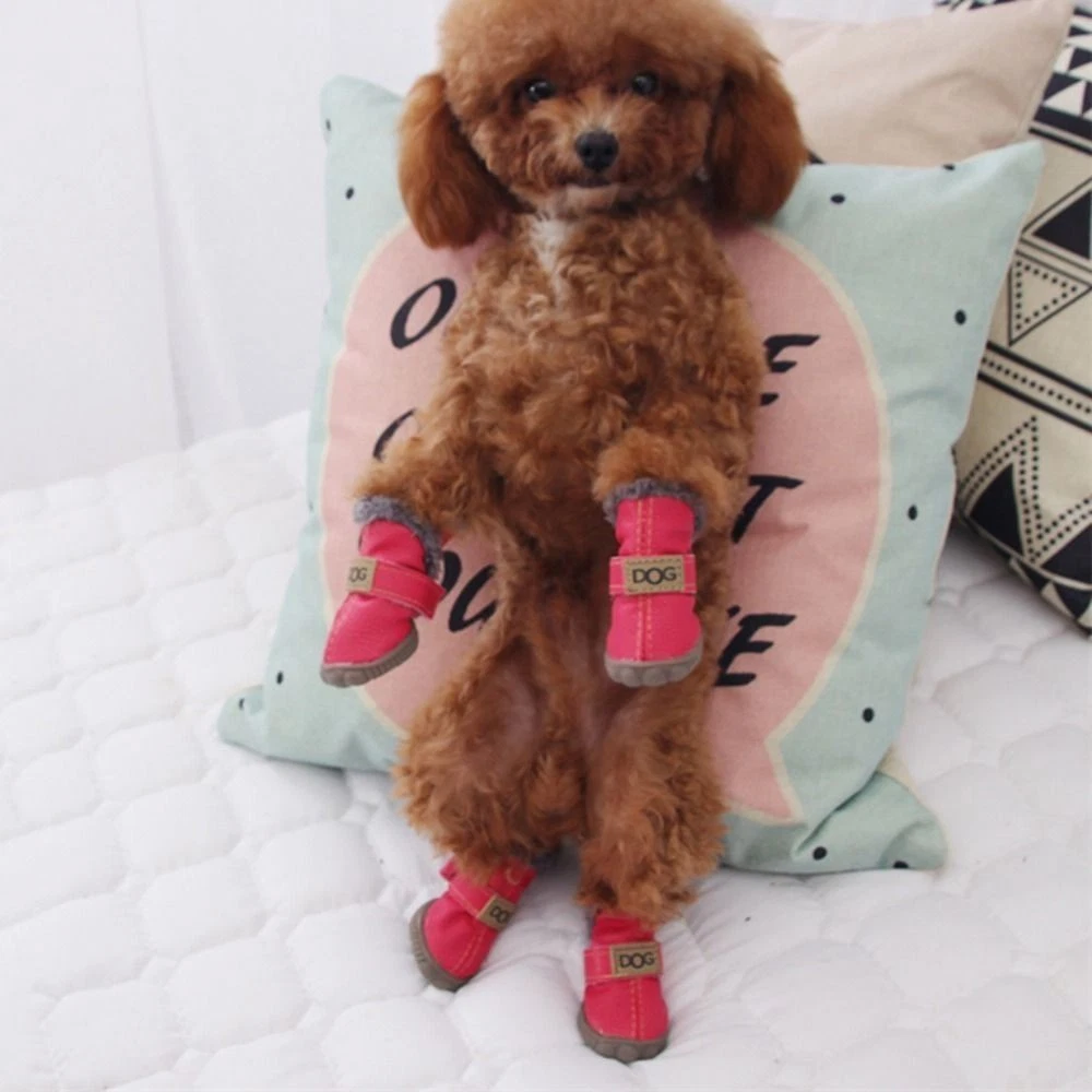 Size: as picture Note:The size chart shows the length/width of the outside of the shoes Because shoes have a certain thickness, the size of a suitable pet's foot is about 1 cm smaller than the size of the size table. Suitable for: small and medium-sized dogs or cats Color: red, rose red, blue, brown, black, silver Type: Pet Snow Boots Feature: soft, lightweight Package: 4pcs/set*Pet Snow Boots Made of premium plush and PU, lightweight and soft. Suitable for pet walking in winter.