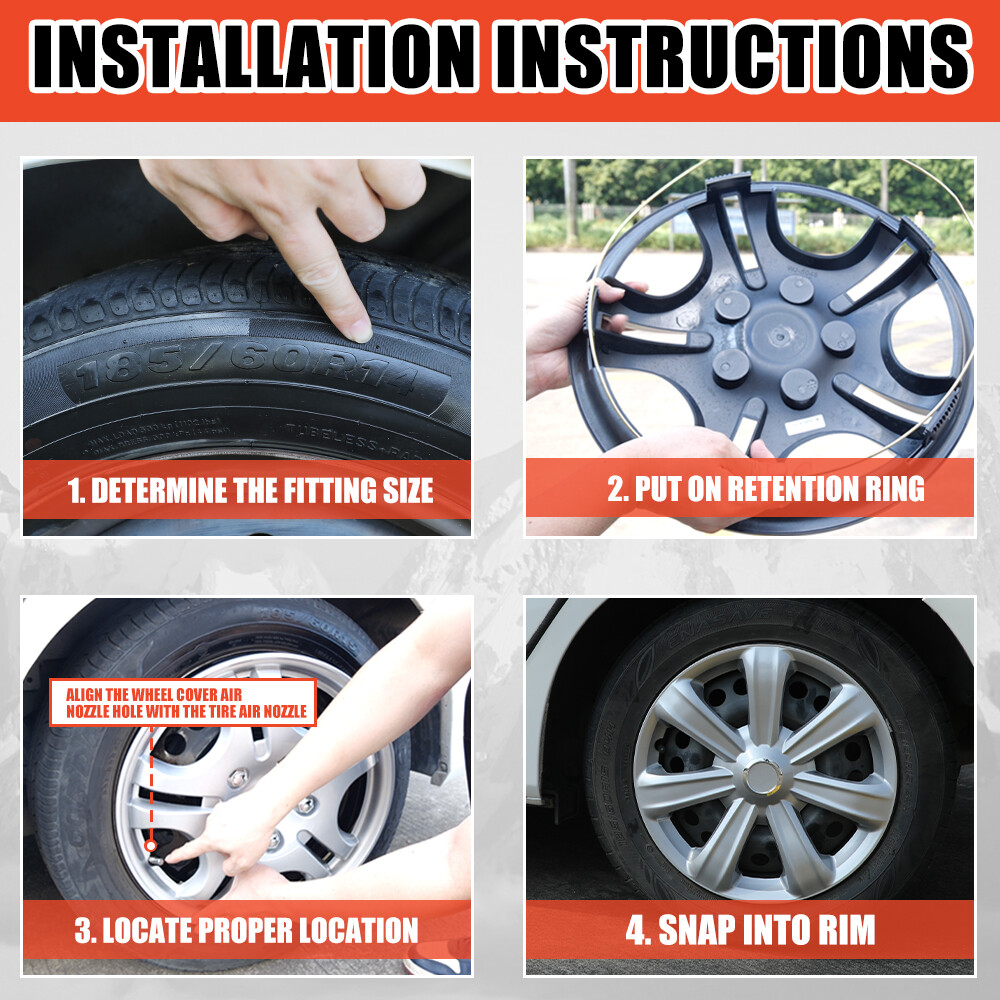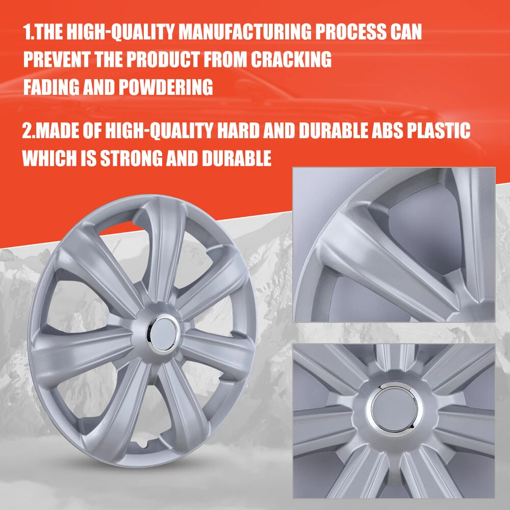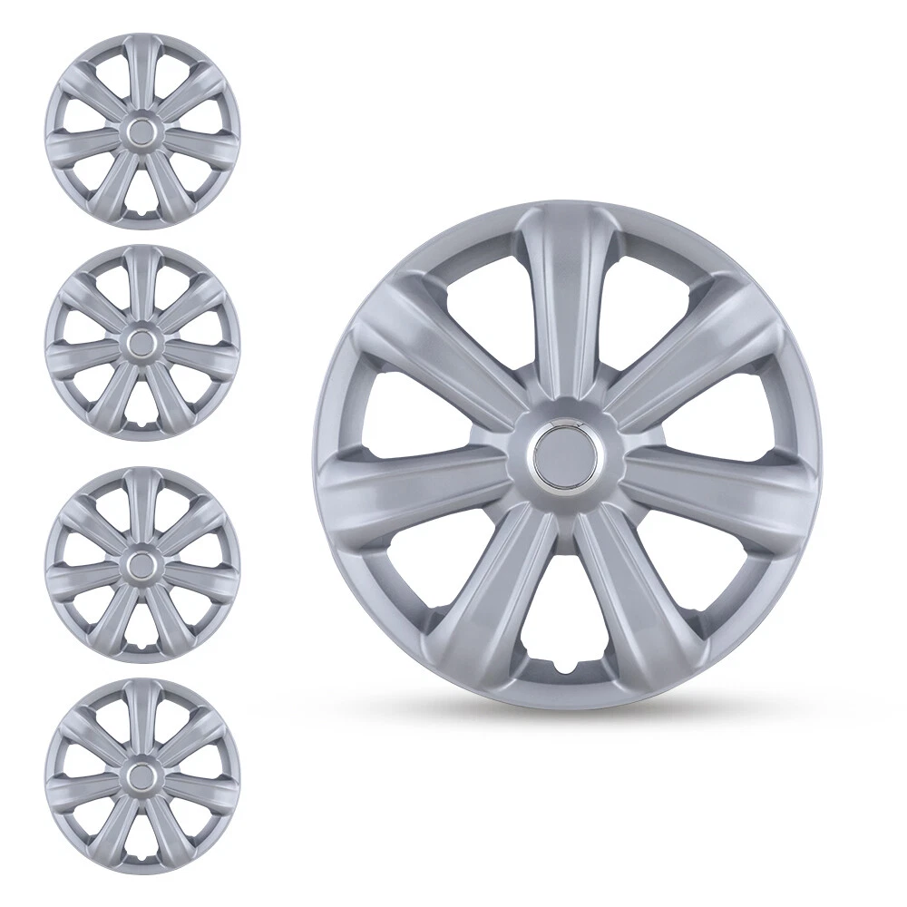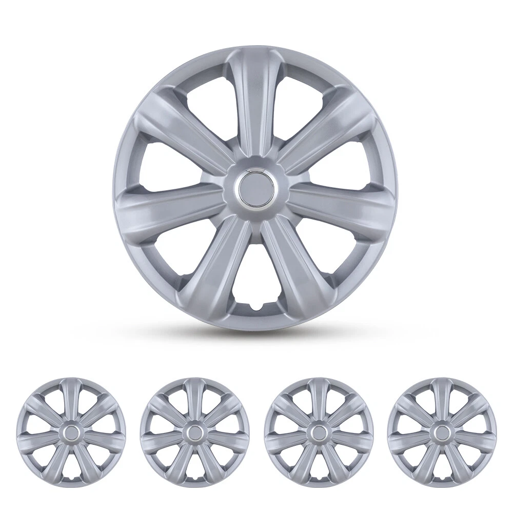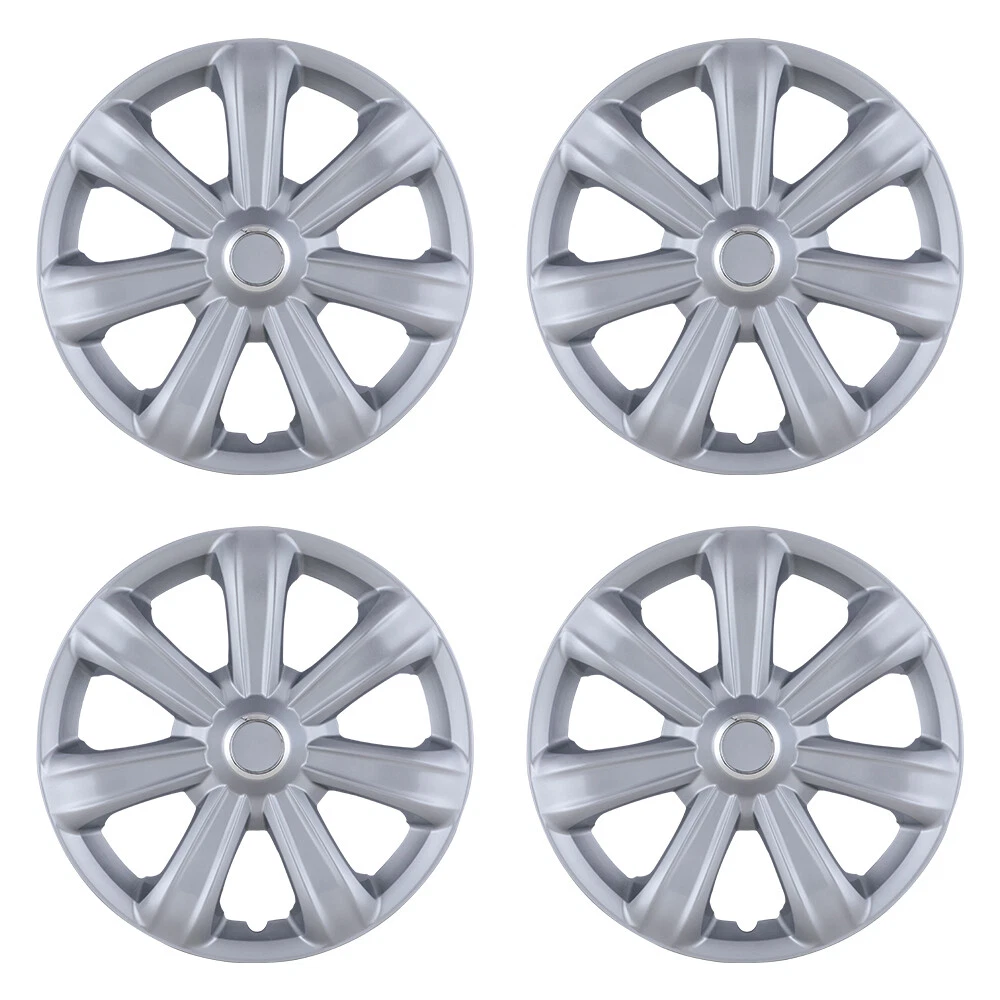4PCS 15-Inch Universal Snap-On Hubcaps for Car & Truck Wheels in Steel Silver
