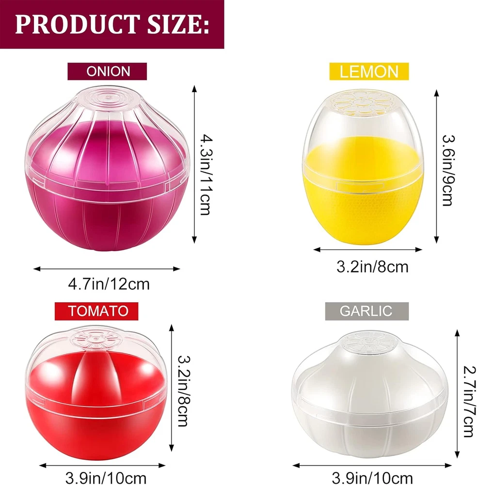 Item Height: Does not apply Is Dishwasher Safe: Yes Item Width: Does not apply Color: Tomato Garlic Onion Lemon Brand: Does not apply Item Weight: 8.4 ounces Material Type Free: BPA Free Number of Sets: 4 Recommended Uses For Product: Fresh Item Length: Does not apply Closure Type: Twist Lock Item Package Quantity: 1 Capacity: 300 Milliliters Special Feature: Dishwasher Safe Is Microwaveable: No UPC: 711181679403 Unit Count: 4 Count Material: Plastic Item Volume: 3E+2 Milliliters gtin13: 711181679403 Material Feature: Disposable, Reusable Item model number: Tomato Garlic Onion Lemon Product Care Instructions: Dishwasher Safe Product Dimensions: 4.7 x 4.7 x 6.3 inches Type: Does not apply