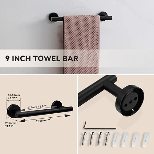 Return Policy Fast Delivery Trusted seller 4-Pieces Black Bathroom Accessories Set, Towel Bar for Bathroom Wall SUS 304 Stainless Steel Bathroom Hardware Set Black Towel Rack Product Description ▶️【High Quality Bathroom Hardware Set】The bathroom accessories set includes 9inch black towel bar x 1, 12inch black towel bar x 1, towel hooks x 2. You can get a abundant towel bar set to renovate your bathroom more beautifully. ▶️【Matte Black Finish】The bathroom towel holder set is treated with advanced matte black and made of premium SUS 304 stainless steel material, designed with clean lines and sturdy construction, preventing scratches and rust. ▶️【Easy Installation】The bathroom hardware set comes with all the mounting accessories and instruction manual. Plus, the screws are concealed that give it a more clean and attractive look. You can mount it to any flat surface you need. ▶️【Multifunctional Use】The black bathroom accessories set with space-saving design fits perfectly into bathroom, bedroom, kitchen cabinet, toilet and gym. Add more contemporary elements to your bathroom to a clean and warm atmosp. ▶️【Excellent After-sales Service】 Products offers an exclusive manufacturer warranty of 3 years. If you have any questions, please feel free to contact us and the team will solve your problem within 24 hours. Shipping Returns Payment Shipping Shipping is FREE to all addresses other than APO/PO boxes in the lower 48 states. All our stock ships from US-based warehouses. Shipped via USPS or UPS (depending on location and package weight) Unless stated otherwise, all orders will ship within 24-72 hours of your payment being processed. Check our feedback to see the great reviews of FAST shipping we offer. Returns Seller does not accept returns Payment We currently accept payment via eBay managed payments only. Once payment is cleared, we will dispatch your shipment within 1-3 business days. Please refer to the "Shipping" tab for more information regarding shipping speed to your destination.