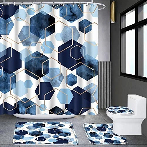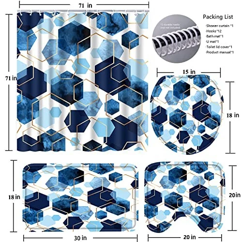Return Policy Fast Delivery Trusted seller Blue Bathroom Sets, 4 Piece Marble Bathroom Shower Curtain Sets with Rugs, Incl 71'' x 71'' Polyester Waterproof Shower Curtain with 12 Hooks, Non Slip Bath Mats and Toilet Lid Oval Rug Product Description 100% Polyester Shower Curtain ? Blue Bathroom Sets: The light blue luxury geometric bathroom sets are the perfect solution for anyone looking for a high-quality and stylish set of bathroom accessories, including a high-quality shower curtain, non slip bath mat, U-shaped floor mat and toilet lid oval rug, and 12 pcs durable plastic hooks. ? High-Quality Material: The 100% polyester shower curtain is waterproof and ensures durability, making it suitable for daily use. And the bathroom rug and toilet lid cover are made of high-quality short plush + memory foam + non-slip plastic bottom, that provide excellent absorbency and prevent slips, and extremely soft and comfortable. ? Perfect Size: The stylish colorful geometric shower curtain size: 71'' L x 71'' W, non-slip bathroom mat size: 30'' W x 18'' H, U-shaped bath rug size: 20'' W x 20'' H, soft toilet cover lid size: 15'' W x 18'' H, 12 anti-rust plastic hooks, the complete bathroom sets for you to create a creative bathroom! Our the 4 piece bathroom sets offer a complete bathroom makeover in just one purchase. ? Easy to Install and Clean: The shower curtain sets with rugs come with 12 durable plastic hooks, 1 minute to complete the installation, making it easy to install and remove for cleaning. ? Stylish and Modern Design: The exquisite 3D printing technology used in the shower curtain adds a touch of elegance and modernity to your bathroom decor. ? ? KINDLY TIPS: the whole set comes vacuum sealed, so you need to wait, 8-10 hrs for the rugs to expand. If you have any questions, please feel free to contact us, we will provide you with a satisfactory answer within 24 hours. Shipping Returns Payment Shipping Shipping is FREE to all addresses other than APO/PO boxes in the lower 48 states. All our stock ships from US-based warehouses. Shipped via USPS or UPS (depending on location and package weight) Unless stated otherwise, all orders will ship within 24-72 hours of your payment being processed. Check our feedback to see the great reviews of FAST shipping we offer. Returns Seller does not accept returns Payment We currently accept payment via eBay managed payments only. Once payment is cleared, we will dispatch your shipment within 1-3 business days. Please refer to the "Shipping" tab for more information regarding shipping speed to your destination.