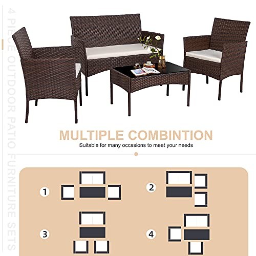 Return Policy Fast Delivery Trusted seller 4 Piece Outdoor Patio Furniture Set, Wicker Rattan Patio Conversation Set, Outdoor Chairs and Loveseat with Coffee Table for Porch, Yard & Poolside (Brown) Product Description Rattan Simple and Elegant: Each wicker patio Chairs and love seat features a handsome checkered pattern for a beautiful, classic style. Great for various outdoor living spaces such as patios, decks, backyards, and poolside areas Sturdy and Durable:This patio furniture set is made of a powder-coated steel frame ensuring overall stability. all-weather PE Rattan wicker is waterproof and UV-resistant, which can prevent damping and fading. Updated Comfort: This modern outdoor patio furniture set comes with thick spongy cushions, Deep patio chairs will offer you extraordinary comfort experience. Roomy seating space allowing your back to naturally lean and stretch to relieve your fatigue and fully enjoy leisure time. Easy cleaning: Removable zippered cushion covers facilitate daily cleaning. The PE rattan requires low maintenance; Removable tempered glass for easy clean; you can easily wipe the glass tabletop with just a damp cloth when t are stains and water. What We Offers: This sectional wicker sofa set comes with 2 single sofas, 1 loveseat and 1 coffee table. It can be easily combined into different configurations; free exchange or replacement for installation problems, damage parts and missing parts Shipping Returns Payment Shipping Shipping is FREE to all addresses other than APO/PO boxes in the lower 48 states. All our stock ships from US-based warehouses. Shipped via USPS or UPS (depending on location and package weight) Unless stated otherwise, all orders will ship within 24-72 hours of your payment being processed. Check our feedback to see the great reviews of FAST shipping we offer. Returns Seller does not accept returns Payment We currently accept payment via eBay managed payments only. Once payment is cleared, we will dispatch your shipment within 1-3 business days. Please refer to the "Shipping" tab for more information regarding shipping speed to your destination.