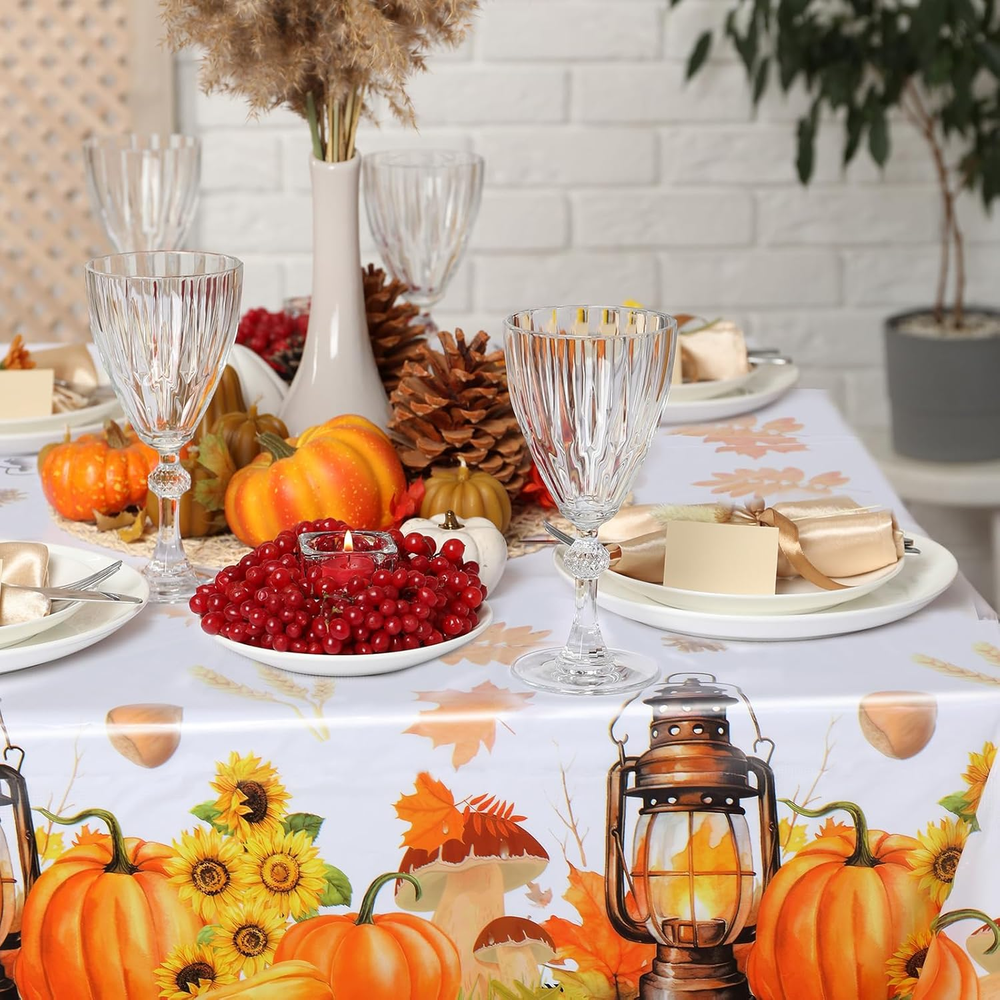 Autumns Thanksgiving Tablecloth,Fall Fabric Table Cloth, Bountiful Pumpkin Maple