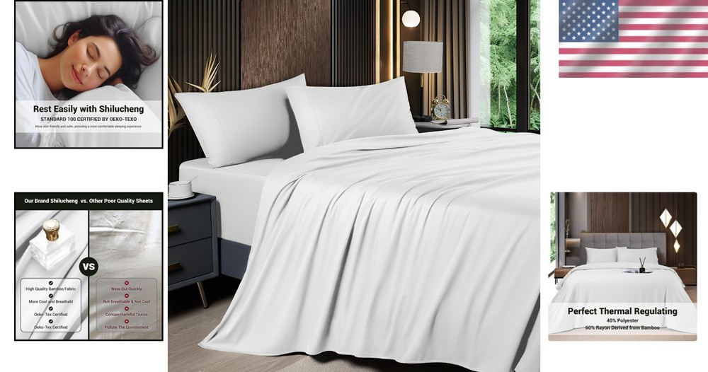4-Piece Full Bed Sheet Set - High Thread Count Bamboo Blend - Hotel Quality ‹ › ‹ › ‹ › ‹ › ‹ › ‹ › ‹ › ‹ › ‹ › ‹ › ‹ › 4-Piece Full Bed Sheet Set - High Thread Count Bamboo Blend Indulge in the ultimate luxury of a restful night's sleep with our exquisite 4-Piece Full Bed Sheet Set, a harmonious blend of 60% Rayon Derived from Bamboo and 40% Microfiber. Experience hotel-quality comfort without the extravagant price tag. Features: Shockingly Soft: Crafted with a unique twill weave, our sheets are stronger than cotton and feel as smooth as silk against your skin, providing unparalleled comfort ideal for hot sleepers. Temperature Regulation: The innovative material adjusts to your body temperature, absorbing heat in summer while ensuring a cool and dry sleeping environment—perfect for those who suffer from night sweats. Full Size Set Includes: 1 Flat Sheet (81" x 96"), 1 Fitted Sheet (54" x 75" x 16"), and 2 Pillow Cases (20" x 30"), designed with deep pockets to fit mattresses up to 16" deep securely. Durable and Easy to Care For: Unlike traditional silk sheets, these allow for machine washing. Simply wash in cold water on a gentle cycle and dry at low temperature to maintain their pristine quality. Certified Quality: Our sheets are Standard 100 by OEKO-TEX certified, ensuring excellence in safety and sustainability without compromising on luxury. Benefits: Experience exceptional softness and comfort like never before. Stay cool and dry throughout the night, eliminating discomfort from heat and moisture. Deep pockets ensure a snug fit that won't shift, providing you peace of mind during sleep. Enjoy the feel of hotel-quality sheets every night in your own home. Why Choose Our Bamboo Blend Bed Sheet Set? Transform your sleeping experience into a luxurious retreat with our Bamboo Blend Bed Sheet Set. Embrace the sensation of sleeping on a cloud while benefiting from cutting-edge temperature regulation and moisture-wicking properties—perfect for a refreshing night's sleep. Durable yet supremely soft, these sheets are an investment in quality sleep at an accessible price. Don't settle for ordinary. Elevate your bedroom décor and comfort with our 4-Piece Full Bed Sheet Set today, and relish in the refined luxury you deserve. Shipping Free & Fast Shipping - We offer free shipping to most of the USA with a normal delivery time of 3-7 days. However, due to the current situation, additional delivery time (up to 3 weeks) may be required for some items. Alternative Carriers - We may use alternative carriers (e.g. USPS, FedEx, UPS, etc.) to ensure your package arrives safely and on time. Due to the use of multiple carriers, we are unable to provide a tracking number automatically. Handling Time - Orders are processed and shipped within 1-2 business days of receiving cleared payment. Shipping Restrictions - Shipping to Alaska, Hawaii, Puerto Rico, Guam, and other US territories may incur shipping charges or delivery restrictions. Please contact us before ordering, or your order can be refunded/cancelled. State Restrictions - There may be restrictions based on your state of purchase. For example, certain items may not be shipped to California due to state regulations. Contact for Tracking Updates - If you require tracking updates or have any concerns about the delivery of your order, please feel free to contact us, and we will be happy to assist you. Return 30-Day Hassle-Free Returns - We want you to be completely satisfied with your purchase. If you are not, you can return the item within 30 days of receiving it for a full refund or exchange. Easy Return Process - To start a return, simply contact us and we will provide you with a prepaid return shipping label and detailed instructions. Restocking Fee - There are no restocking fees for returns. However, the buyer is responsible for return shipping costs if the return is not due to a seller's error. Refund Processing Time - Refunds will be processed within 5 business days of receiving the returned item in its condition. Payment We accept all major credit cards, PayPal, and Apple Pay for your convenience. Your payment information is secure and encrypted to ensure a safe and seamless transaction. Please complete your payment within 3 days of purchase to avoid any delays in shipping. Feedback Your feedback is extremely important to us. We strive to provide the best products and customer service possible. If you are satisfied with your purchase, please take a moment to leave us a positive review. If you have any concerns or issues with your order, please contact us before leaving negative feedback. We are committed to resolving any problems and ensuring your satisfaction. Contact Us If you have any questions or concerns, please feel free to out to our customer support team. You can contact us through the eBay messaging system. We are available Monday to Friday, 9:00 am to 5:00 pm EST, and we will do our best to respond to your inquiry within 24 hours. Buy it now and enjoy a pleasant shopping experience! Item Length: Bamboo Cooling Bed Sheets Item Width: Bamboo Cooling Bed Sheets Unit Quantity: 4.0 count Material: Blended Rayon,60% Rayon Derived from Bamboo,40% Microfiber Features: Breathable,Cooling Theme: Modern Care Instructions: Machine Wash Department: Adults Room: Bedroom Size: Full Type: Sheet Set Color: White Pattern: Solid Thread Count: 1800 Style: Modern Shape: Rectangular GSM (Grams per Square Meter): Over 800 Unit Type: Unit
