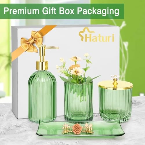 Return Policy Fast Delivery Trusted seller Bathroom Accessories Set, 4 Pcs Green Glass Bathroom Accessory Set Complete w/Lotion Soap Dispenser, Toothbrush Holder, Qtip Holder, Vanity Tray, Gold Bathroom Decor, Gift for Home Apartment Product Description Glass MULTIFUNCTION GREEN GLASS BATHROOM ACCESSORIES SET -- 4 pieces bathroom set includes a Lotion Soap Dispenser, a Vanity Tray, a Qtip Holder, and a Toothbrush Holder, Perfect for storing your toiletries or your cosmetics, the green tray can also hold your jewelry and keeping your bathroom counter fully organized and neatly DECORATIONS FOR HOME APARTMENT / BATHROOM -- The green glass bathroom set is ideal decoration fits various styles: bathroom decor, industrial style, western decor, modern style, contemporary decor, and country decor. Ideal bathroom accessories set for home decor, bathroom decor, and farmhouse decor. Great for the kitchen and bath, for countertop organize, vanity top, makeup table, and craft PREMIUM STURDY MATERIAL-- All pieces of bathroom accessory set are made of high-quality pressed heavy glass, with a nice weight, non-cheap plastic, and Easy to clean. Green cups are as clear as green crystals. High-quality stainless steel lid, gold plating process, beautiful and not rusty GREAT GIFTS IDEA -- A perfect gift for family, friends, and coworkers; perfect as a housewarming present, wedding gift, and perfect for remodelers looking to upgrade the bathroom in their home or apartment; bathroom essentials for a new home; guest bathroom decor 100% CUSTOMER SERVICE-- We are committed to presenting the best quality materials and satisfaction services to our customers. If you have any issue with the contemporary bathroom accessories set, please contact us, we will be happy to help you Shipping Returns Payment Shipping Shipping is FREE to all addresses other than APO/PO boxes in the lower 48 states. All our stock ships from US-based warehouses. Shipped via USPS or UPS (depending on location and package weight) Unless stated otherwise, all orders will ship within 24-72 hours of your payment being processed. Check our feedback to see the great reviews of FAST shipping we offer. Returns Seller does not accept returns Payment We currently accept payment via eBay managed payments only. Once payment is cleared, we will dispatch your shipment within 1-3 business days. Please refer to the "Shipping" tab for more information regarding shipping speed to your destination.