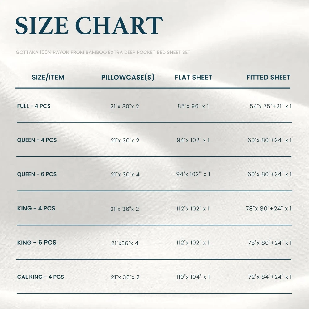 100% rayon derived from bamboo, Pillow Cases * 2; 18-24" Extra Deep Pocket Fitted Sheet * 1, Flat Sheet * 1; Super Soft, cooling, breathable Cooling sheets, Fitted Sheet with Elastic Corner Straps. Cool in summer,warm in winter. Imported Luxurious Sleep Experience-bed sheets made of 100% rayon derived from bamboo, offering unmatched softness, thickness, and cooling properties. These meticulously crafted sheets feature excellent moisture-wicking and sweat-absorbing capabilities, preventing uncomfortable night sweats in the summer while retaining warmth in the winter. Suitable for all seasons,and ensure you experience exceptional comfort every night. Stay in Place with 24" Extra Deep Pocket-The fitted sheet features an all-around elastic and 4 elastic corner straps, uniquely designed to stay in place all night. The extra deep pockets accommodate mattresses 21-24 inches thick, ensuring uninterrupted and restful sleep with sheets that won’t bunch up or shift. Superior Softness, Softer than Cotton-Indulge in the perfect blend of luxury and comfort with bed sheets, crafted with a premium 300 thread count. The sheets are significantly softer than traditional cotton, boasting a thick, silky-smooth fabric that offers an unparalleled premium feel. Expertly crafted for durability, sheets retain their like-new quality even after multiple washes, providing long-lasting luxury with excellent breathability and unmatched softnes. OEKO-TEX Standard 100 Certified - Gökotta’s fabric suppliers are certified to OEKO-TEX 100 standards, ensuring that the fabric and thread used in our products are rigorously tested for harmful substances and meet strict safety and environmental requirements.