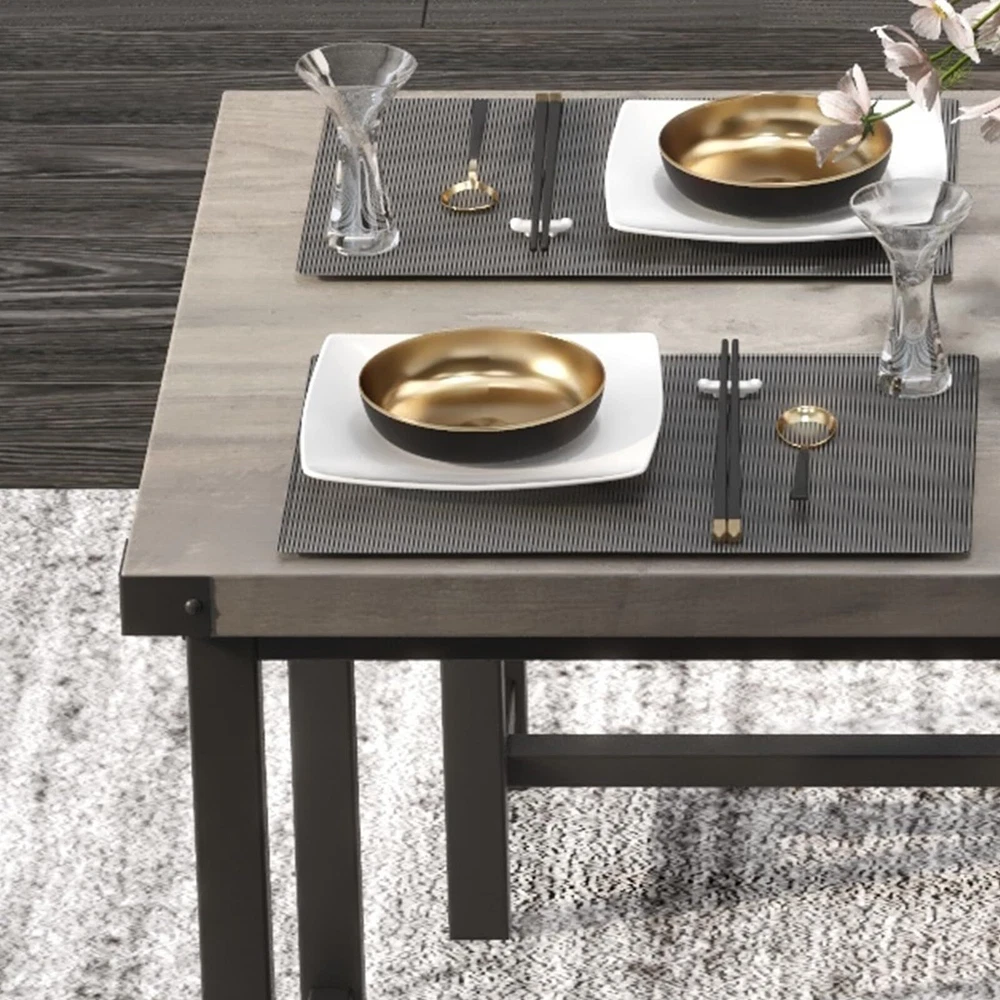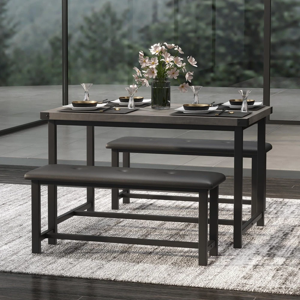 1. This dining set is a fantastic upgrade for any kitchen! The sturdy MDF and solid steel frame ensures durability, while the thick, cushioned benches provide amazing comfort—way better than hard wooden seats. The retro gray design adds a stylish touch, and the wider metal pipes keep everything stable. Perfect for cozy meals, game nights, or just hanging out. Highly recommend for anyone wanting both style and comfort!