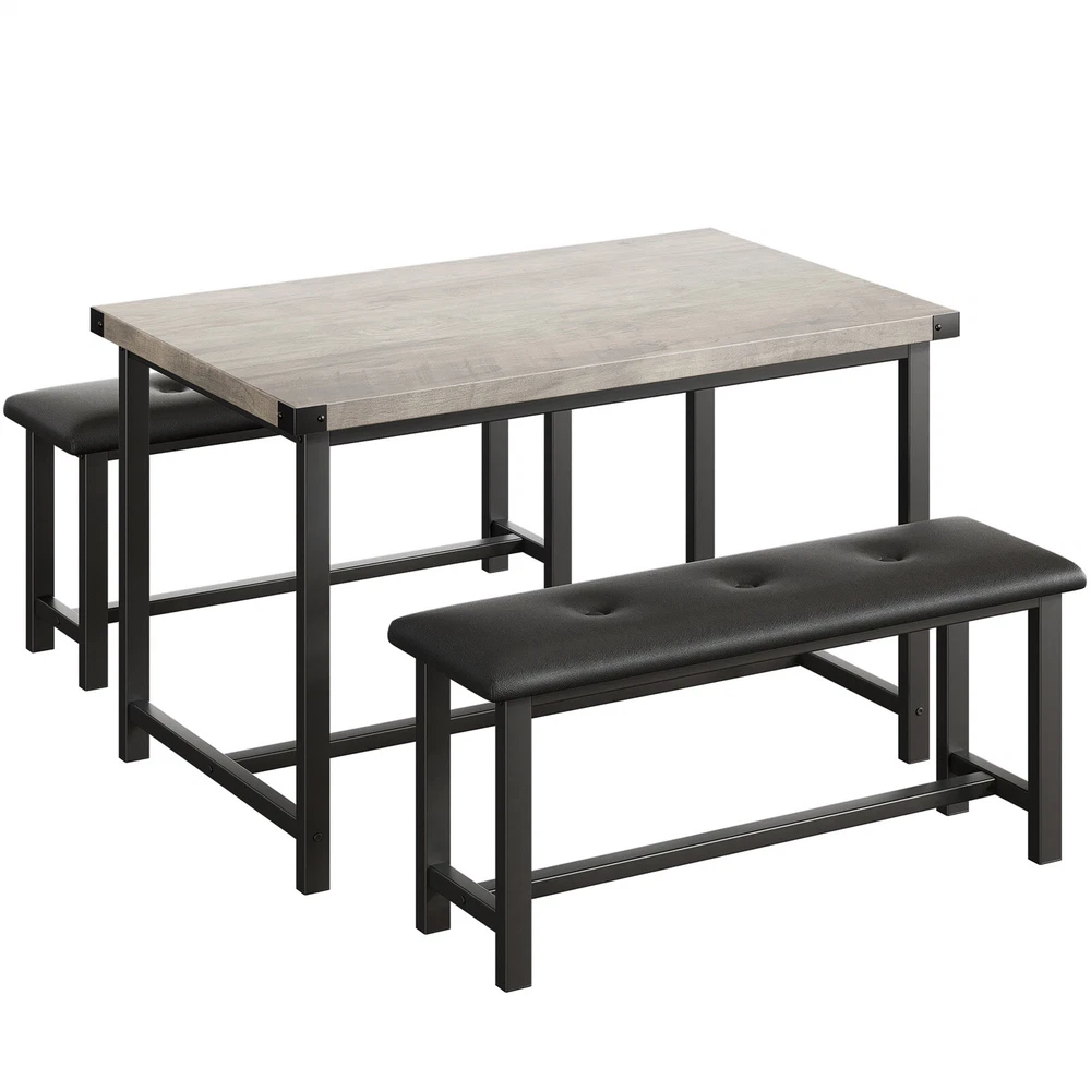 4-Piece Kitchen Dining Set with Table & 2 Upholstered Benches