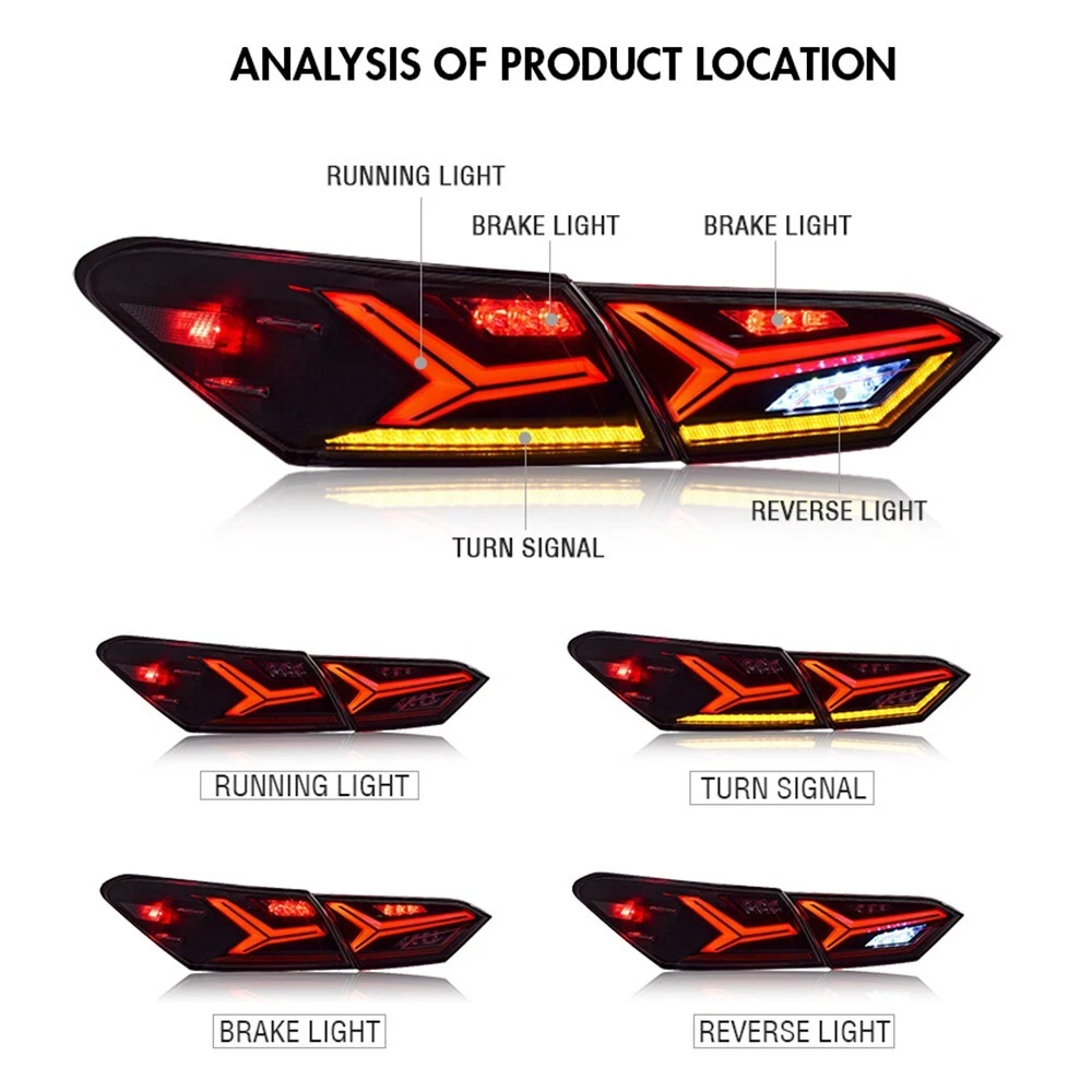 Wattage: 35 W Mounting Style: Screws, Plug and Play Superseded Part Number: 8th Gen Toyota Camry LE SE XLE XSE 2018-2024 Package included: 1 Pair left and right tail light Performance Part: Yes Item Length: 63.5 cm / 24.2 inch Vintage Part: No Voltage: 12 V Finish: Polished, Smooth, Textured UPC: Does not apply Housing Color: Smoke Installation method: plug and play Placement on Vehicle: Left, Rear, Right Manufacturer Warranty: 2 Years Item Width: 52.5 cm / 20.2 inch Light Color: Red Type: Tail Light Assembly Turn Signal: LED Sequential Turn Signal Interchange Part Number: For Toyota Camry 2018 2019 2020 2021 2022 2023 2024 Country/Region of Manufacture: China OE/OEM Part Number: Toyota Camry LE SE XLE XSE L 2018-2024 gtin13: Does not apply Manufacturer Part Number: 2018-2024 Toyota Camry XSE XLE SE LE TRD Items Included: Ballast, Bulbs, Plug and Play Start up animation: With start up Animation Item Height: 20 cm / 8.2 inch Fitment Type: Direct Replacement Fitment: For Toyota Camry 8TH Gen 2018-2024 Number of Bulbs: LED Features: DOT-Certified, ISO-Certified, SAE-Certified, Sealed Assembly Color Temperature: 6000K Lens Color: Smoke/Tinted Bulb Type: Full LED, No need to purchase additional Bulb Shape Code: LED Function: Running light +Brake light +Turn Signal+Reverse light+Animation Universal Fitment: No Lighting Technology: LED Model: For Toyota Camry 8TH Gen 2018-2024 Brand: TT-ABC Item Weight: 5kg Material: PC,ABS,PMMA