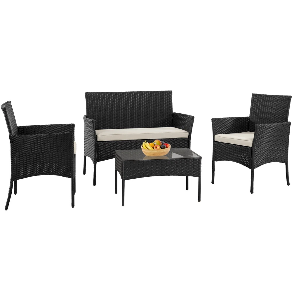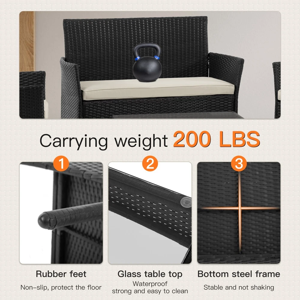 EASY ASSEMBLY: This Outdoor Furniture Set Comes with All Hardware & Necessary Tools. Follow The Instruction, You Can Easily and Quickly Assemble the Patio Sofa Set. NOTE: When you try to install the Patio Furniture Set, try to line the hole together in all side, do not over tight one hole, then try to tight it slowly in each side. SIMPLE AND ELEGANT: The cushions of the patio furniture set use a high-density rebound sponge to give you a comfortable sitting feel. Patio Wicker Sofa Set Built as High-Quality Metal Frame with Resilient PE Rattan, Black Synthetic Resin Wicker Outdoor Garden Conversation Set Designed for the Outdoors, Weather Resistant Design and UV Resistant. HUMANIZED DESIGN: Thickly Cushioned Wicker Patio Sofa Set Chairs for Maximum Comfort, Patio Outdoor Sofa Gives You an Excellent Seating Experience. Our Garden Outdoor Conversation Set have strong feet to protect your floor and increase the stability of your furniture. STRONG AND STURDY: This patio furniture set is made with a powder-coated steel frame and all-weather PE rattan wicker for a comfortable experience. The wicker of the Outdoor furniture set is sturdy but also very light. The seat cushion of this patio Conversation Set can be removed for easy cleaning. CONVENIENT CLEANING: The table in the patio furniture set is made of high-quality transparent tempered glass for drinks, food and any beautiful decorations. Our Outdoor Patio Wicker Sofa Sets all kinds of outdoors. Specifications: Material: PE Rattan & Steel Frame Rattan Color: Black Cushion: Blue polyester fabric and sponge padded Sofa Size:41.5"(W) X 23" (D) X 32.9"(H) Chair Size:23.2"(W)X 23"(D) X 32.9"(H) Table Size:28 "(L)X 16.5" (W) X 15.5 " (H) The comfortable double sofa is enough for two people to sit down. It's perfect for your patio Heavy-duty Foot Table and chairs are come with sturdy feet to protect your floor and add stability to the furniture. Our seat cushion is made of high-quality sponge material, which is breathable and not stuffy, comfortable to sit, and brings you a special enjoyment. The bottom of the seat is reinforced with a cross-shaped design, which makes the furniture more stable and can provide greater load-bearing. If you accidently spill on your cushions or if dirt accumulates over time, you can simply zip off the cushion covers and give them a quick wash to have them looking brand new. Top quality, all-weather resistant synthetic resin is built to last while having a sleek. Our wicker is strong and durable but also lightweight at the same time. High density thickened sponge cushion provides comfortable seating experience. Product Description PRODUCT DETAILS: This Is Our New 4-Piece Patio Furniture Sets with Thick Cushions, Contemporary Looks, Elegant Design for Comfortable And Durability. Please Note: Our digital images are as accurate as possible, however, photo taking condition and different monitors may cause image color to vary slightly, and it is normal. Don't hesitate to buy it !!! FEATURES: - Modern and stylish outdoor sofa set, perfect for any indoor or outdoor decoration. - Composed of lightweight rattan wicker and a sturdy metal frame, This Patio sofa set is weatherproof, UV-resistant and stable. - Our High-Quality Patio Furniture Sofa Set Metal Frame with Removable Covers Cushions (Beige), You Will Feel Very Comfortable & Relaxed When Leaning On. Package Include: 1 x Tempered Glass Top Coffee Table; 2 x Single Chair; 3 x Thick Cushion; 1 double sofa. Listed by Frooition Frooition | No-js Template | eBay design, eBay store design, eBay shop design, eBay template design, eBay listing design, eBay Listing Tool (ver:froo_no_js)