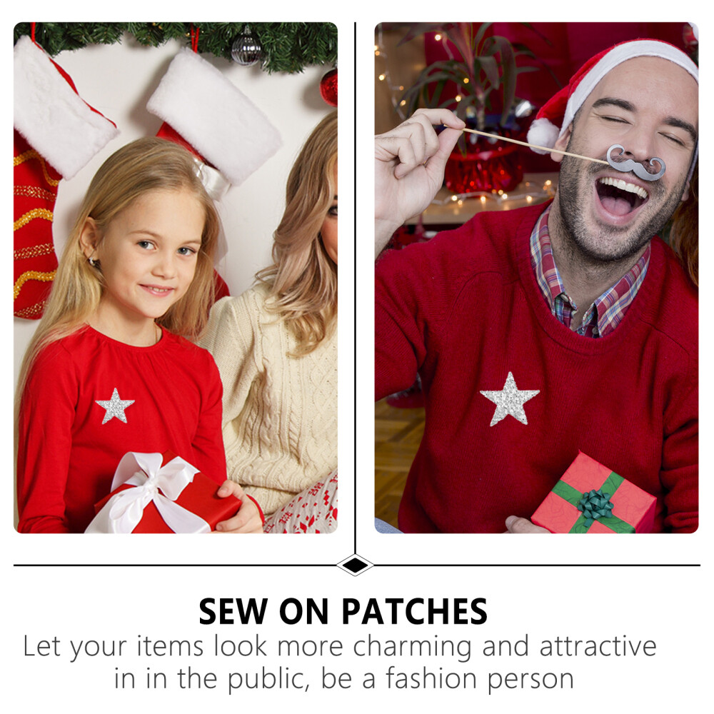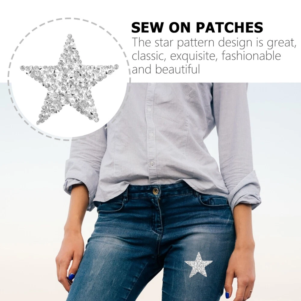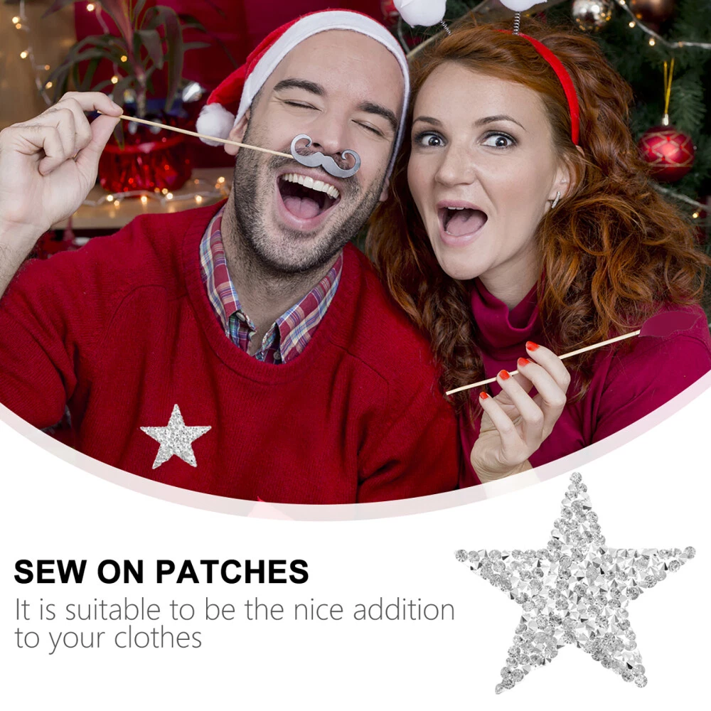 4-Piece Rhinestone & Sequin Pentagram Star Patch Set