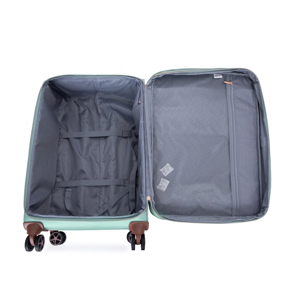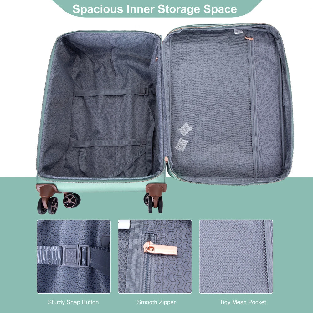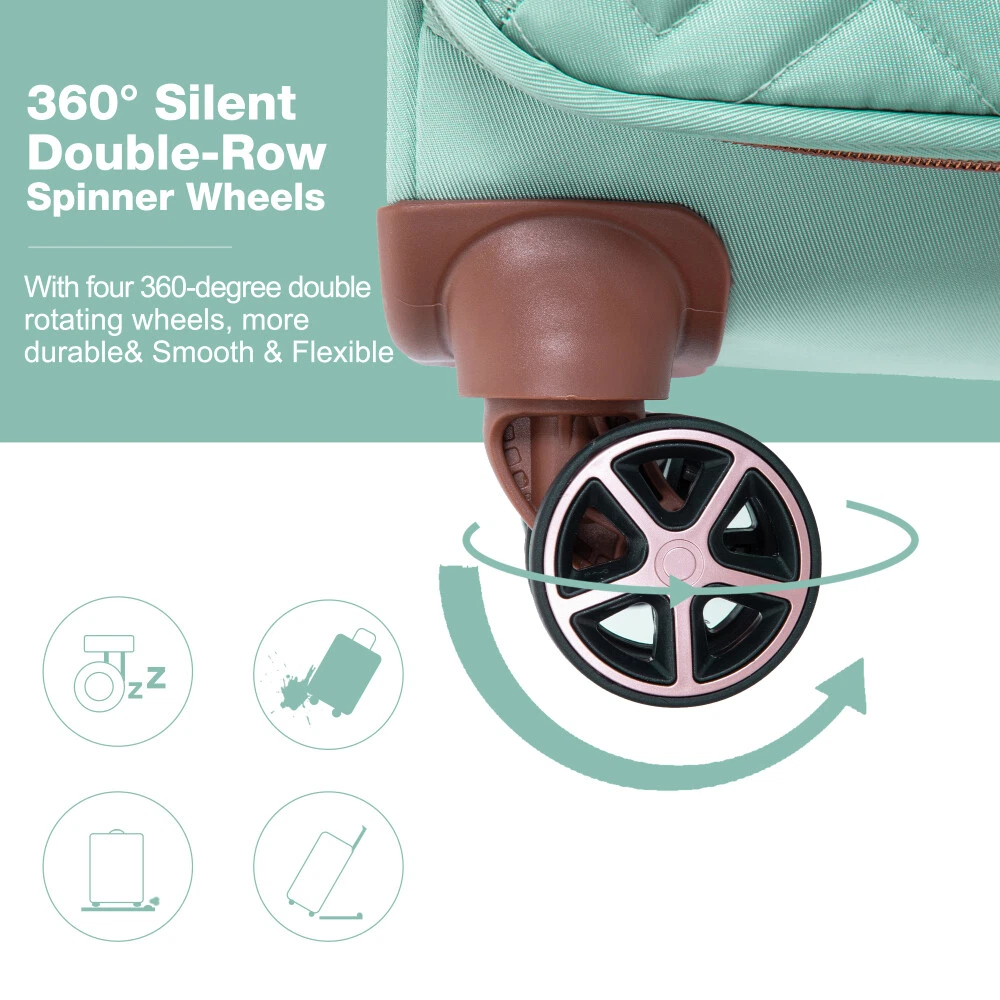 4-Piece Set (16/20/24/28) ,Softshell Suitcase Spinner Wheels Terylene Luggage Sets Carry On Suitcase Luggage Lightweight Durable Suitcase Product Features Material: 100% Terylene Extremely lightweight and durable.Four luggage bags, 16 inches and 20 inches, can be carried with you, and 24 inches and 28 inches can be checked in. They can be placed inside each other, providing more convenience and saving storage space. Each size can accommodate your needs perfectly. Spacious and Tidy Inner Storage Space: Sturdy snap button to fix the clothes. Mesh pockets can hold anything you want. Adjustable Pull Rod: Push-button locking handle adjusts to different stages. 360 ° aircraft wheels take you wherever you want to go. Terylene is not easily damaged。 Much better and durable than polyester material. Multiple front zippered pockets for travel meets your different storage requirements. Description Easy to carry, reasonable size 16 inches can be conveniently placed on top of 20 inches of luggage, and can be freely combined Extended storage space 1. Adding more packing capacity Expandable zipper Strong and durable zipper protects your clothing 2. Two quick-access pockets Easy and fast access to your belongings Inner storage space. Spacious and organized inner storage space. Pull Rod Adjustable pull rode meets different height requirements. 360° Double Spinner Wheels Universal rotation wear-resistant and silent aircraft wheel, suitable for a variety of ground.