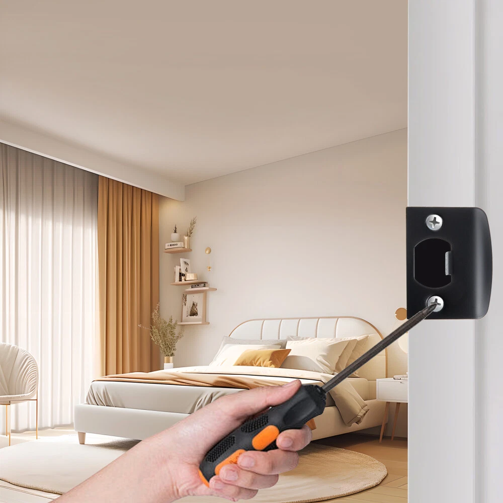 This door lock guide set is a total game-changer! Super sturdy stainless steel, easy to install, and keeps doors perfectly aligned. No more annoying rattling or misalignment—just smooth, quiet operation. Love the sleek black finish—blends right in. At this price for four pieces, it’s an absolute steal. Highly recommend for travel or home use!