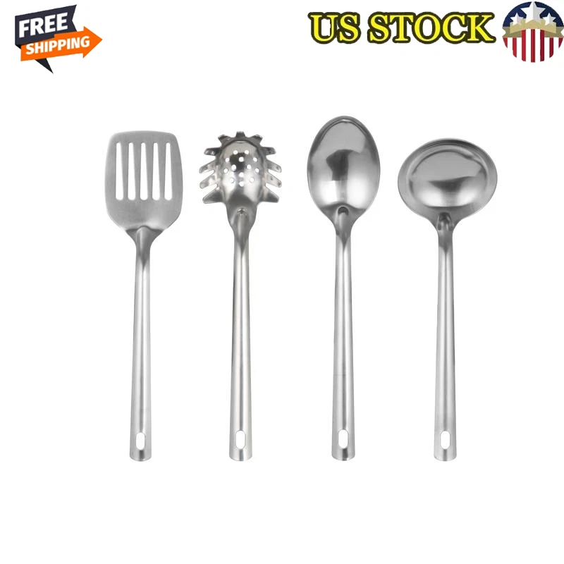 4-Piece Stainless Steel Kitchen Utensil Set Spatula Spoon Ladle Pasta Tool New