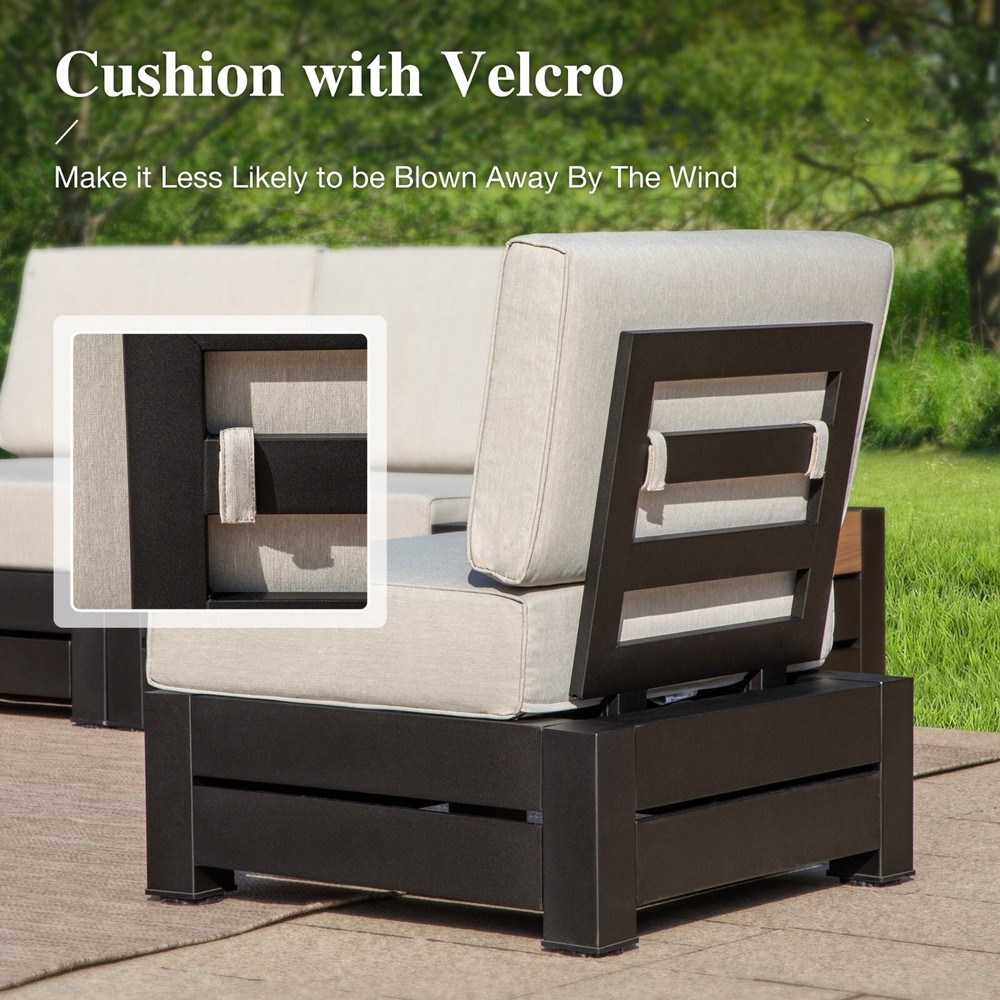Description: Transform your outdoor space with our sleek Patio Furniture Set! Designed with a modern modular design, this set lets you arrange your furniture in any way you like, making it perfect for gatherings or quiet evenings. The high-quality electrophoretic coating ensures durability and protection against the elements, so you can enjoy your patio all year round. Sit comfortably with family and friends while enjoying the fresh air. Elevate your patio experience and create your personal oasis today! : Feature Transform your living space with our stylish Conversation Sofa Set! Crafted with a high-quality steel frame, this sofa set is built to last while adding a touch of elegance to your home. The beautiful wood grain finish provides a warm, inviting atmosphere, perfect for hosting friends and family. Whether you’re enjoying a cozy night in or entertaining guests, this sofa set is designed for comfort and durability. Upgrade your seating experience today with our Conversation Sofa Set and create lasting memories in style! Our products come with 1-year-warranty, ensuring that there will be no defects in materials and workmanship under normal use. We do our best to hear from customers and update our products. If you have more problems, please be free to contact us.