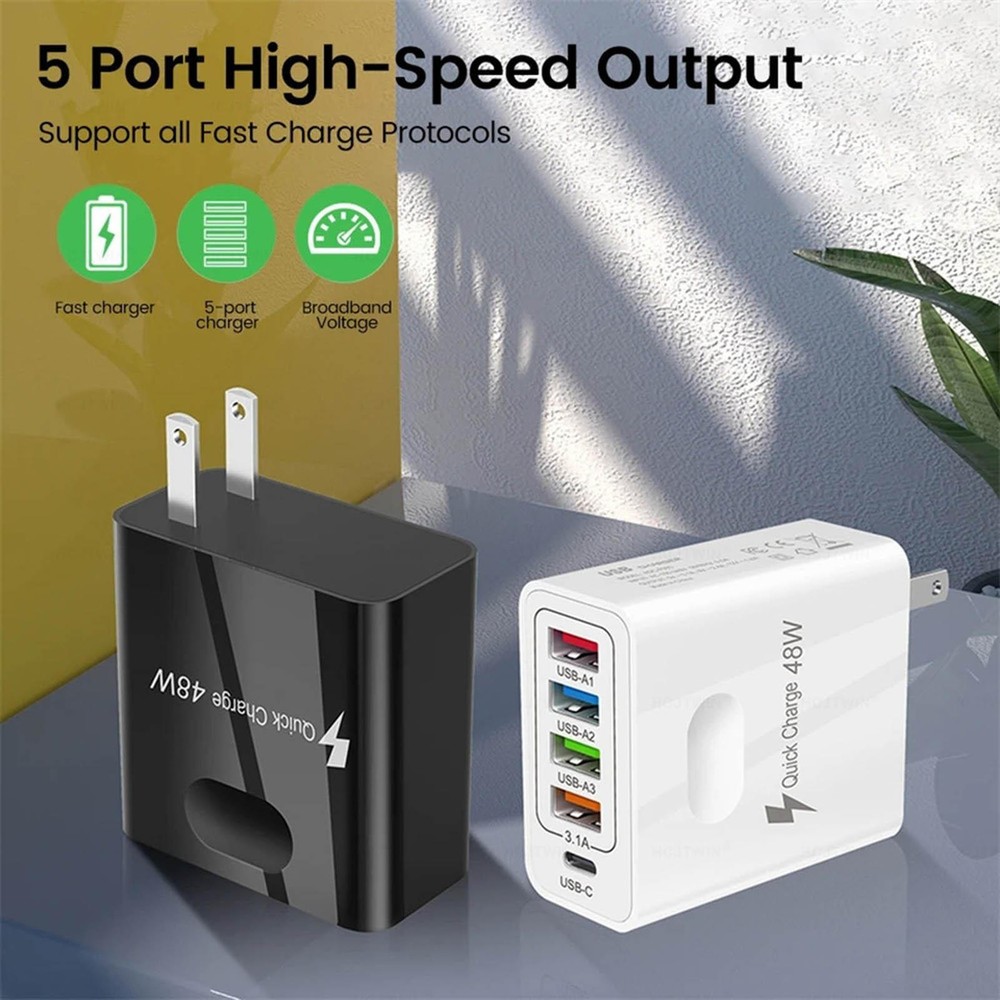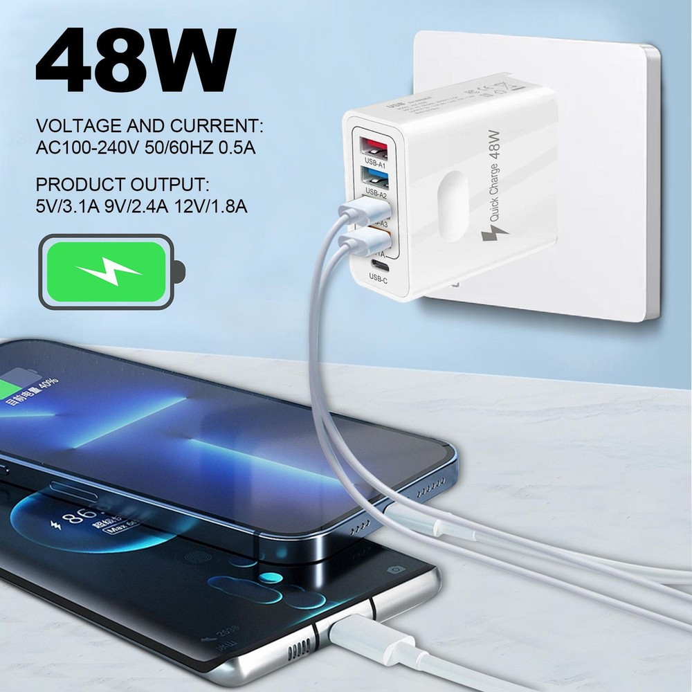 Multi Port 4 USB + 1 PD Hub Charger Station Tower Wall Charger Power Adapter Bullet Points: Multi-Port Phone Charger: With a 1 QC3.0 port and 4 USB A ports(maximum 3.1 output), this 48W car adapter makes charging faster and more efficient. Plus, the 5 ports design allows you to charge multiple devices simultaneously so you can stay connected outdoors without any hassle. No more messy cables. Device Protection: Our multi-port phone charger provides unbeatable safety measures, including security intelligent protection against overload, overcharge, overcurrent, and short-circuit. Don't worry, your devices are kept safe and sound. Enhanced Charging Convenience: Keep your devices charged on-the-go with this multi port phone charger! Designed for universal compatibility with portable game devices, smart watches, headsets, USB fast charge tablets, and all modern phones, this portable charger is a must-have for frequent travelers. Ensured Protection: Guaranteeing safety for extended use, this multi-port phone charger is crafted with fire-resistant ABS material for exceptional durability and anti-drop assurance. Thoughtful Design: Enjoy a multi port phone charger that is both lightweight and small in size, making it easy to take it with you wherever you go. Don't let its small size fool you - it's convenient to store and carry, ensuring you have power on-the-go. Power up multiple devices simultaneously with our 48W Multiport USB Wall Charger. This adapter ensures safety and stability with universal compatibility. Keep your devices safe and organized without taking up much space. Perfect for home or travel use. Product name: 4 USB+PD mobile phone charger Product material: ABS Voltage and current: AC100-240V 50/60Hz 0.5A Product output: 5V/3.1A 9V/2.4A 12V/1.8A (multi-port use average split current 3.1A/4) synchronous rectification scheme Product Size: EU regulation: 55*28*100mm/2.16" x 1.10" x 3.94" US regulation: 55*28*80mm/2.16" x 1.10" x 3.15" UKregulation: 55*50*85mm/2.16" x 1.97" x 3.35" Package List: Multiport USB Wall Charger *1 Notes: Due to the lighting effects and camera angles, the color of the item and that shown in the picture might have a nuance. Due to manual measurement, there might be a tolerance in the product size. Payment should be completed within 2 days after auction closed, or unpaid dispute will be filed for an closing auction. An unpaid case will be filled after 4 days ● We strive for 100% customer satisfaction ! ● Positive Feedback is very important to us. ● We hope that you contact us immediately BEFORE you give us neutral or negative feedback, so that we can satisfactorily address your concerns. ● We promise to offer the lowest price and high quality produce. Our working time: Monday to Friday (9:00 am to 18:00pm)(Beijing Time) Saturday (9:00 am to 12:00am),except International Holiday. Dear buyers : ● Welcome to my store ! ● Your satisfaction is our top goal,we appreciate your patronizing. ● If you have any questions, please contact us before leave negative or neutral feedback, we will try our best to solve the issue to your satisfaction, thanks ! ● If you are satisfied with our service, please rate the details of the transaction (Detailed Seller Ratings) on eBay. ● Please always talk to us via ebay Message . ● We appreciate your business and look forward to growing our e-Bay sales with satisfied customers.