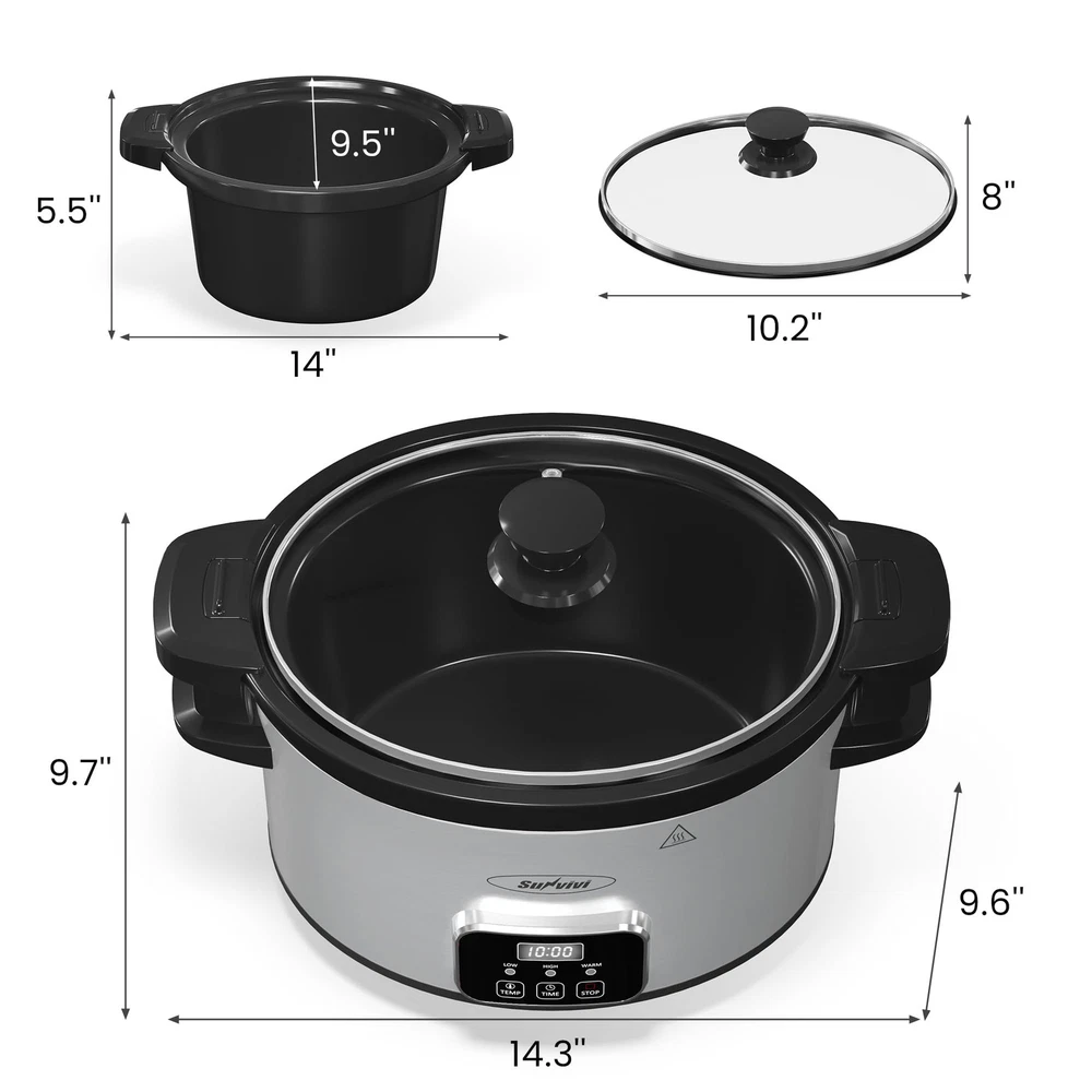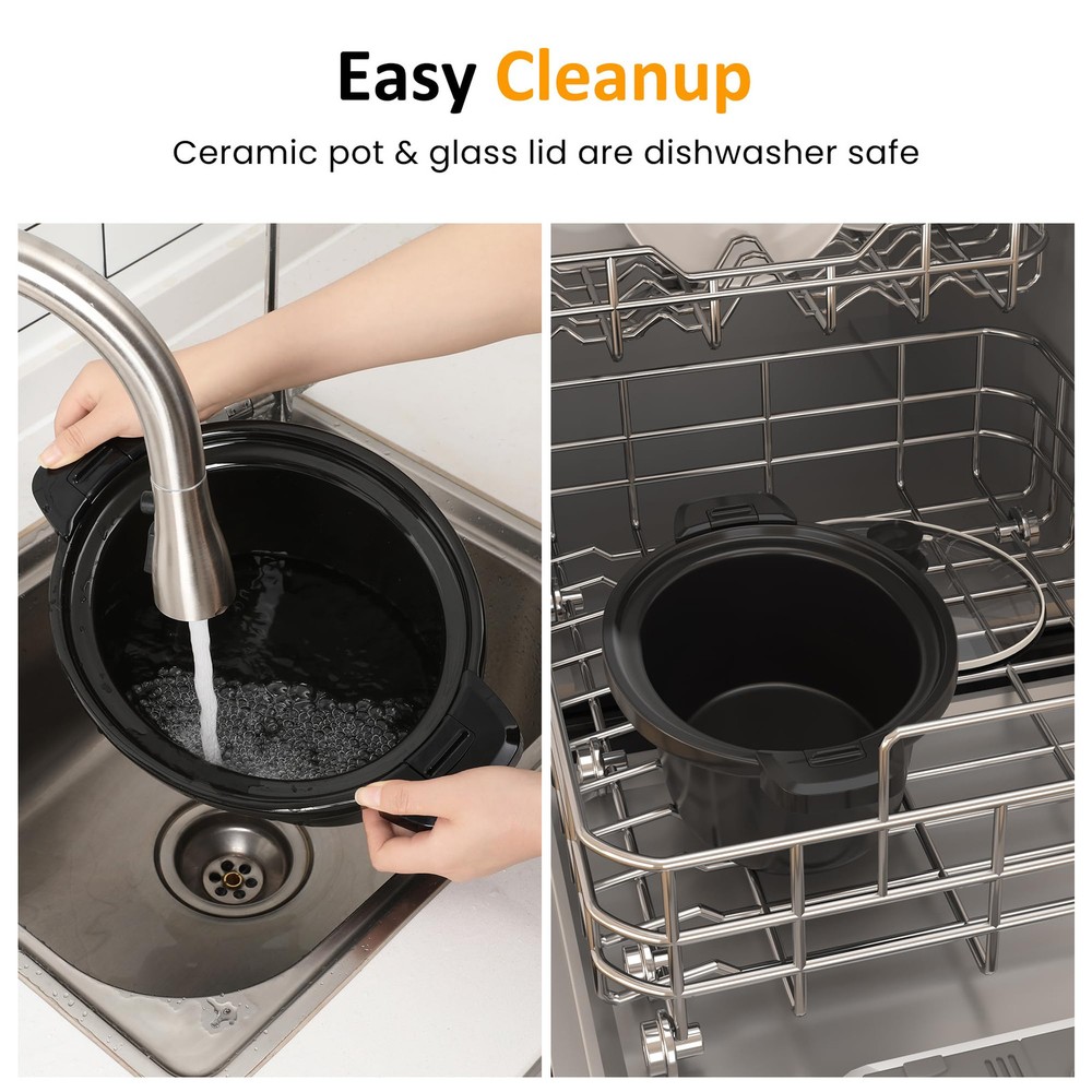 One Pot, Limitless Options: Unlock endless culinary possibilities with this digital slow cooker. Whether you're whipping up flavorful dip sauces, gently heating dishes to perfection, keeping food warm for gatherings, or satisfying your daily cooking needs, this appliance is your ultimate kitchen companion. Tailored Cooking: The time settings range from 30 mins to 12 hrs for low settings, and from 30 mins to 10 hrs for warm and high settings. Customize each dish with specific cooking temperatures and durations for optimal results. Plus, the digital display offers clear countdowns, ensuring precision in your cooking process. Locked Flavor: Embark on a culinary journey of perfection with the innovative locking lid, skillfully trapping heat and steam to achieve uniform cooking while maintaining the moisture and flavor of your dishes. Delight in every bite as you elevate your dining experience to new heights. Versatile in Use, Perfect in Gifting: This mini crock pot effortlessly serves 2-4 people, ideal for small families and individuals. Portable and lightweight, it's perfect for trips, picnics, or gatherings, and makes a wonderful gift for housewarmings or festivals, spreading warmth and joy to loved ones. Effortless Cleanup: Featuring a dishwasher-safe detachable ceramic pot and glass lid, cleaning up is a breeze, leaving you with more time to enjoy your culinary creations. Moreover, the stainless steel casing can be wiped clean with a damp cloth, ensuring it stays pristine and ready for your next delicious meal.