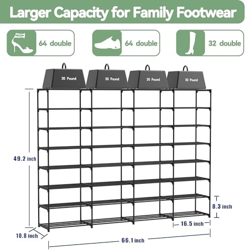 Menu 1. We require immediate payment. 2. We currently accept payment via eBay managed payments only. 3. Once payment is cleared, we will dispatch your shipment within 1-3 business days. Please refer to the "Shipping" tab for more information regarding shipping speed to your destination. Large Shoe Rack Organizer, 4-Row 8-Tier Tall Shoe Storage Shelf for Closet, Entryway, Garage, Metal Free Standing Shoe Holder for 56-64 Pairs Shoes, Sturdy Stackable Shoe Stand for Bedroom Product description Metal and Plastic [Durable & Sturdy Structure] Crafted from powder-coated metal tubes and high-quality plastic parts, this shoe rack is rust-resistant and designed to handle heavy loads. This shoe rack promises exceptional durability and stability, ensuring your investment stands the test of time and daily use. [Large Capacity] Effortlessly accommodate 56-64 pairs of various footwear, from casual shoes to boots, with our 4 rows and 8-tier structure, designed for the shoe enthusiast with an extensive collection. [Versatile DIY Configuration] Customize your storage with the ability to assemble the rack into 8, 7, or 2 layers. Holes on the middle tube allow for flexible assembly to fit various shoe types like sneakers, boots, and high heels. [Expandable & Multifunctional] Easily split the rack into multiple units to suit different spaces such as entryways, closets, dormitories, or garages. It can also serve as an organizer for toys, storage baskets, books, plants, and more, making it a versatile solution for renters. [Simplified Assembly & Maintenance] Measuring 66.1 x 10.8 x 49.2 inches, this shoe rack fits in hallways, living rooms, bedrooms, or garages. With clear instructions and no tools required, set up is a breeze. Plus, the metal construction means quick, wipe-clean maintenance, making the organization as easy as a walk in the park. Contact us anytime for assembly assistance. PLEASE MESSAGE US IF YOU HAVE ANY OTHER QUESTIONS, AND MANY THANKS FOR READING ALL OF THIS. Copyright ©#. All Rights Reserved.