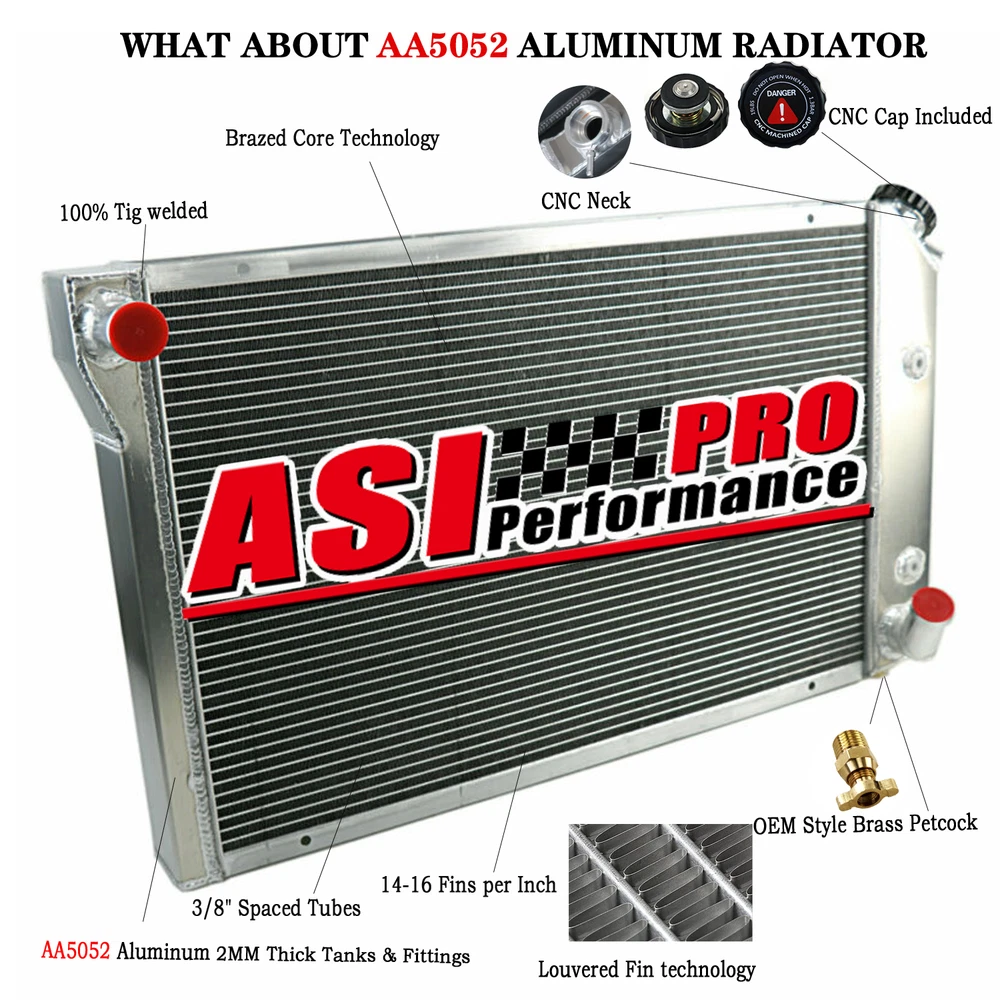 Document STORE HOME HOT ITEMS ADD TO FAVS CONTACT US FEEDBACK ABOUT US 4Row Aluminum Radiator fit 1977-1982 1979 Chevrolet Corvette C3 5.7L 5.0L V8 Package Include: 1 X 4-Row AA5052 Aluminum Radiator 1 X CNC Machined Radiator Cap Radiator Size: Brand: ASI Performance Condition:New High Performance Racing Spec. 4 -Row of tubes Core Racing Design Petcock Drain:OEM style brass petcock drain Core Dimensions: 16-1/2" High 26-1/2" Wide Overall Dimensions: 18-3/4" High x 32-1/4" Wide Upper Inlet: 1-3/8" located on the Driver side. Lower Outlet: 1-1/2" located on the Passenger side. Transmission Cooler: Included Vehicle Fitment: For Chevy Corvette 350ci 5.0L/5.7L V8 Engine 1977-1982 Our Radiator is made of AA5052 aircraft aluminum. Its different from other sellers T-3303 Series. In fact, AA5052 series Aluminum is much better than T-3303 series. More than 90% of aftermarket manufacturers use the T-3303 series Aluminum, because it is cheaper and easier to get the material. However, T-3303 aluminum has many disadvantages, such as poor polishing effect, softness, easiness to scratch and corrode, poor heat dissipation effect. If the T-3303 aluminum radiator is operated in high pressure and high temperature for a long time, the leaking problem would occur very soon. AA5052 Aluminum is an Al-Mg alloy with good corrosion resistance, excellent reliability and cold workability and strength. The main alloying element of AA5052 is magnesium, which has good forming and processing properties. It is widely used in the manufacture of aircraft fuel tanks, oil pipes, and sheet metal parts of transportation vehicles and ships, hardware products, and electrical-appliance casings. This AA5052 Aluminum Radiator is designed to provide maximum cooling efficiency to prevent premature engine failure. Its light-weight, and high-heat transferring aluminum features a tube and fin design that, dramatically increases surface area that enables the heat to dissipate more efficiently. This AA5052 Aluminum Radiator is at least 30%-45% more efficient than stock ones. Most importantly, it has a much higher capacity for coolant than stock ones, which means that your cooling system will be more efficient and will be more resistant to temperature surges in racing applications. 1. Made from Aircraft AA5052 grade aluminum for prolonged lifespanand with raw aluminum finish 2. Brazed core technology to guarantee optimum performance and dependability 3. All AA5052 Aluminum 2mm thick tanks and fittings,Ensure it's hard and durable 4. Billet Aluminum CNC machined fill neck rugged and durable 5. CNC machined cap with Engraved craftsmanship, anodized treatment. 6. OEM style brass petcock drain much better than other plastic one on eBay 7. Carefully crafted to exceptional OE standards for precise fit. PAYMENT SHIPPING RETURNS FEEDBACK ABOUT US PAYMENT We accept only PayPal payment All major credit cards are accepted through secure payment processor PayPal.(* If you use e-check on PayPal, delivery may take longer, as we will hold your order until your e-check clear) Payment must be received within 7 business days of auction closing. Please make sure your PayPal and eBay address is correct. If not, please correct it before payment. Thank you. Custom duties, taxes, or charges are not included in the cost you pay to us. Please check with your country's customs office to determine what these additional costs will be prior to bidding/ buying. SHIPPING We Ship to Worldwide, except China (Hong Kong), and we do not ship to APO/FPO. Orders processed within 12-24 hours of payment verification.( On Sundayis our rest day). Before buying, Please make sure your PayPal and eBay address is correct. If not, please correct it before payment.if you want me send the item to another address,please send me a message. If you have not received your shipment within 40 days from payment, please contact us. We will track the shipment and get back to you as soon as possible with a reply. Our goal is customer satisfaction! Due to stock status and time differences, we will choose to ship your item from our first available warehouse for fast delivery. Many of our products have overseas warehouses, including Australian warehouses, American warehouses and British warehouses. RETURNS If you are not satisfied when you receive your item, please return it within 60 days for a replacement or money back. Please contact me before you return it. Defective items Must Be reported and returned to us within the warranty period (and in the original packaging, if possible). You must tell us what the defect is and give us your eBay ID. We act as a responsible seller; we are willing to actively undertake the following responsibilities: a. The item is lost during transit; b. The item is damaged during transport; c. Due to our work errors, transporting the wrong items to the buyer; d. The item in the actual use of the process of quality problems. FEEDBACK Very appreciated for your support. We hope you are happy with your purchase. We will leave POSITIVE FEEDBACK after receiving the payment. Please contact us if you are not satisfied with the item after receiving it. If you have any problem, please feel free to contact us via ebay message, we will reply your email within 24 hours (except weekends and holidays). We will do our best to solve your problem as soon as possible. We maintain high standards of excellence and strive for 100% customer satisfaction! Feedback is very important to us. We request that you contact us immediately. Before you give us neutral or negative Feedback, so that we can satisfactorily address your concerns. Good communication can fix all problems, we always believe that as long as you are willing to communicate with us, we will give you a satisfactory answer.Thank you for choosing us and have a great day! ABOUT US Welcome to my shop,We offer an extensive range of products selected by our professionals.superiority in details and quality is a high priority. We also have a h