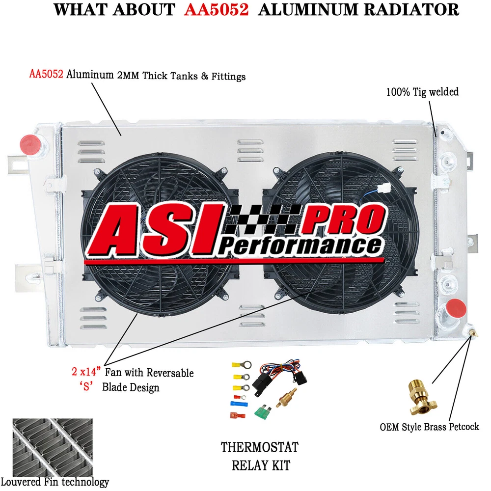 Document STORE HOME HOT ITEMS ADD TO FAVS CONTACT US FEEDBACK ABOUT US 4Row Radiator+Shroud Fan Fit 01-05 Chevy Silverado&GMC Sierra 2500,3500 HD 6.6L Package Include: 1 X 4-Row AA5052 Aluminum Radiator 1 X CNC Machined Radiator Cap 1 X AA5052 Aluminum Shroud 2 X 14" Fans (Includes mounting kits) 1 X Thermostat Relay Kit Radiator Size: Condition:New High Performance Racing Spec. 4 -Row of tubes Core Racing Design Core Size: 34" W x 19 3/5" H x 2 1/2" T Overall Size: 45 3/7" W x 20 7/9" H Inlet size : 1 7/9'' Outlet size : 1 7/9'' Transmission Oil Cooler:YES Engine Oil Cooler:NO OEM Style Brass Petcock Drain. Vehicle Fitment 2001-2005 Chevrolet Silverado 2500 HD w/ 6.6L Duramax LB7/LLY 2001-2005 Chevrolet Silverado 3500 HD w/ 6.6L Duramax LB7/LLY 2001-2005 GMC Sierra 2500 HD w/ 6.6L Duramax LB7/LLY 2001-2005 GMC Sierra 3500 HD w/ 6.6L Duramax LB7/LLY FAN Specification: Maximum Fan CFM: 1730 cfm Fan Diameter (in): 14.050" Thickness (in): 2.500" Number of Blades: 8 S-Type blades Blade Material: Plastic Amp Draw: 12.70 amps Includes the Mounti Number of Blades: ng Tabs for an Easy Zip Tie Installation Thermostat Kit Installation: Universal fit for any automotive vehicle and electric fan. Activates by grounding electric fans at preset temperature. 185'F turn-on temperature, 165'F turn-off temperature. RED + connect directly to battery. WHITE wire to ignition switch power source. BLACK goes to thermos switch. BLUE wire goes to the Fans. This set up will run Fans & pull air in through radiator. The advantages of our radiator : Made from Aircraft AA5052 grade aluminum for prolonged lifespanand with raw aluminum finish Brazed core technology to guarantee optimum performance and dependability All AA5052 Aluminum 2mm thick tanks and fittings,Ensure it's hard and durable OEM style brass petcock drain much better than other plastic one on eBay Carefully crafted to exceptional OE standards for precise fit. All New Radiators - 100% leak tested. The tanks are 100% welded by TIG. PAYMENT SHIPPING RETURNS FEEDBACK ABOUT US PAYMENT We accept only PayPal payment All major credit cards are accepted through secure payment processor PayPal.(* If you use e-check on PayPal, delivery may take longer, as we will hold your order until your e-check clear) Payment must be received within 7 business days of auction closing. Please make sure your PayPal and eBay address is correct. If not, please correct it before payment. Thank you. Custom duties, taxes, or charges are not included in the cost you pay to us. Please check with your country's customs office to determine what these additional costs will be prior to bidding/ buying. SHIPPING We Ship to Worldwide, except China (Hong Kong), and we do not ship to APO/FPO. Orders processed within 12-24 hours of payment verification.( On Sundayis our rest day). Before buying, Please make sure your PayPal and eBay address is correct. If not, please correct it before payment.if you want me send the item to another address,please send me a message. If you have not received your shipment within 40 days from payment, please contact us. We will track the shipment and get back to you as soon as possible with a reply. Our goal is customer satisfaction! Due to stock status and time differences, we will choose to ship your item from our first available warehouse for fast delivery. Many of our products have overseas warehouses, including Australian warehouses, American warehouses and British warehouses. RETURNS If you are not satisfied when you receive your item, please return it within 60 days for a replacement or money back. Please contact me before you return it. Defective items Must Be reported and returned to us within the warranty period (and in the original packaging, if possible). You must tell us what the defect is and give us your eBay ID. We act as a responsible seller; we are willing to actively undertake the following responsibilities: a. The item is lost during transit; b. The item is damaged during transport; c. Due to our work errors, transporting the wrong items to the buyer; d. The item in the actual use of the process of quality problems. FEEDBACK Very appreciated for your support. We hope you are happy with your purchase. We will leave POSITIVE FEEDBACK after receiving the payment. Please contact us if you are not satisfied with the item after receiving it. If you have any problem, please feel free to contact us via ebay message, we will reply your email within 24 hours (except weekends and holidays). We will do our best to solve your problem as soon as possible. We maintain high standards of excellence and strive for 100% customer satisfaction! Feedback is very important to us. We request that you contact us immediately. Before you give us neutral or negative Feedback, so that we can satisfactorily address your concerns. Good communication can fix all problems, we always believe that as long as you are willing to communicate with us, we will give you a satisfactory answer.Thank you for choosing us and have a great day! ABOUT US Welcome to my shop,We offer an extensive range of products selected by our professionals.superiority in details and quality is a high priority. We also have a high-standard team, qualified by authorized organizations to ensure products are of the highest quality. As an internet seller, we collaborate with excellent international transport companies, and in Australia and the United States we have our own warehouses, offering the most convenient delivery service possible. On-time shipping and reliable quality control are key areas of importance in our shop. We are increasingly expanding international markets based on high quality products, excellent service, reasonable prices and timely delivery. Please contact us at any time for more information.We work hard to make sure EVERY CUSTOMER 100% approvingly. Copyright ? racing_autopart. All Rights Reserved. Package Include: 1 X 4-Row AA5052 Aluminum Radiator 1 X CNC Machined Radiator Cap 1 X AA5052 