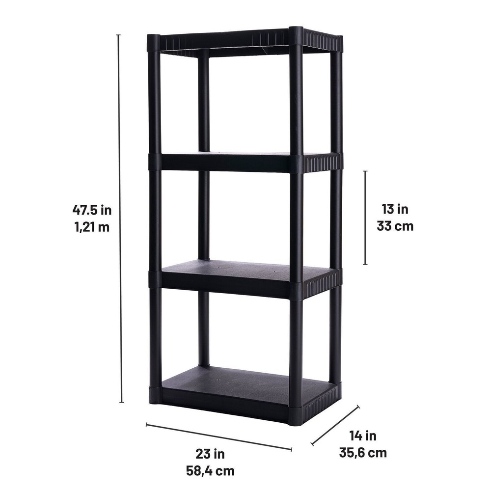 You may also like Freestanding 5 Tier Boltless Storage Shelf Unit Adjustable Balcony Kitchen New 57.58 USD Free shipping 5 Tier Shelf Heavy Duty Steel Storage Unit Rack Kitchen Office Garage Adjustable 89.58 USD Free shipping 5-Shelf Plastic Garage Storage Unit Easy Assembly 350lbs Capacity Durable Design 63.49 USD Free shipping Durable 5-Tier Plastic Storage Shelf Unit Organizer Rack Home Garage US 87.95 USD Free shipping Overhead Garage Ceiling Storage Racks Wire Steel Workshop Basements 250 Lbs New 158.4 USD Free shipping Adjustable Shelving Utility Cart Steel Storage Organizer 3-Tier home All Purpose 65.58 USD Free shipping 3-Tier Metal Wire Rack Free Standing Shelving Unit Adjustable Heavy Duty Storage 86.4 USD Free shipping 5 Shelf Storage Shelves Shelving Organize Heavy Duty Closet Garage Plastic Black 130.99 USD Free shipping Rail Shelving Kit Wire Shelves Storage Heavy Duty Basements Garage Laundry Room 128.0 USD Free shipping Heavy Duty Adjustable 5 Tier Steel Shelving Unit Storage Rack 2000lbs Capacity 75.18 USD Free shipping Heavy Duty Adjustable Metal Shelving Unit 5 Tier Storage Rack 2000 lbs Capacity 75.18 USD Free shipping 4-Shelf Heavy Duty Steel Shelving Unit Adjustable Storage Rack Home Office New 64.0 USD Free shipping Organize your home goods, pack away your hunting gear during the offseason, or store all your hobby supplies in one place with Standard Duty Storage Shelves. Each of the 4 heavy-duty plastic shelves can hold up to 50 lbs for a total storage capacity of 200 lbs. Life can box you in Work, Household chores, Every after-school activity ever. Ironically, the best way to break free is with a box. From tackle boxes to storage trunks to coolers all as smartly designed as they are rugged. So you can keep all your gear neatly stowed and ready to throw in the truck whenever adventure calls. Hit the road while the bite is hot. And be ready to make your getaway every chance you get. Product is made for adult use. PLASTIC STORAGE SHELVES: Organize your home, closet, garage, laundry room or office with Standard Duty Shelving Units. 200LB STORAGE CAPACITY: Each of the 4 plastic shelves has a maximum weight capacity of 50lbs. The full shelving unit can easily accommodate up to 200lbs of total weight. DURABLE CONSTRUCTION: Made from heavy-duty, impact resistant plastic, this storage shelf is extremely durable and built to last. PRODUCT SPECIFICATIONS: Total Unit Dimensions: 48 inches tall x 21 inches long x 14 inches wide. Each shelf can hold items up to 13 inches tall. The unit is easy to assemble with no tools required. VERSATILE USE: The deep storage shelves are perfect for organizing home goods, tools, shoes, camping gear, fishing equipment, hunting supplies and more. Great for all ages - adults, teens, seniors, etc. You may also like 15in Floral Arrangement in Green Glass Vase Artificial Fall Tabletop Decor New 15.27 USD Free shipping 12V Handheld Car Vacuum Cleaner Easy Emptying LED Light Wet Dry Accessories New 42.66 USD Free shipping Heavy Duty 12 Outlet Power Strip 6FT Mountable Surge Protector ETL Certified New 45.59 USD 47.99 USD Free shipping 5% off D-Shape Memory Foam Half Roll Pillow Removable Cover Antimicrobial Support New 33.54 USD Free shipping New Ironing Board W/ Adjustable Steel Frame Cotton Cover Efficient Steam Release 43.55 USD Free shipping Wall Mounted Coat Rack Durable W/ Hooks Organized Home Storage Solution New 44.85 USD Free shipping Adjustable Youth Golf Set Kids W/ Driver Iron Putter Travel Bag Balls Tees New 47.98 USD Free shipping Rustic Cottage Accent Cabinet Storage Unit W/ Drawer & Adjustable Shelf New 299.63 USD Free shipping Ground Coffee Filter Packs Medium Roast Taste 1.4 Oz Packets 42 Per Case Office 62.17 USD 65.44 USD Free shipping 5% off Cordless Electric Spin Scrubber W/ LED Light & Replaceable Brushes Cleaning New 47.4 USD 49.89 USD Free shipping 5% off 100% Cotton Flannel King Size 4 Piece Deep Pocket Sheet Set Soft Durable New 100.78 USD Free shipping Soft Satin Bed Sheet Set 4-Piece Hypoallergenic Deep Pocket Easy Care Silky New 44.78 USD Free shipping