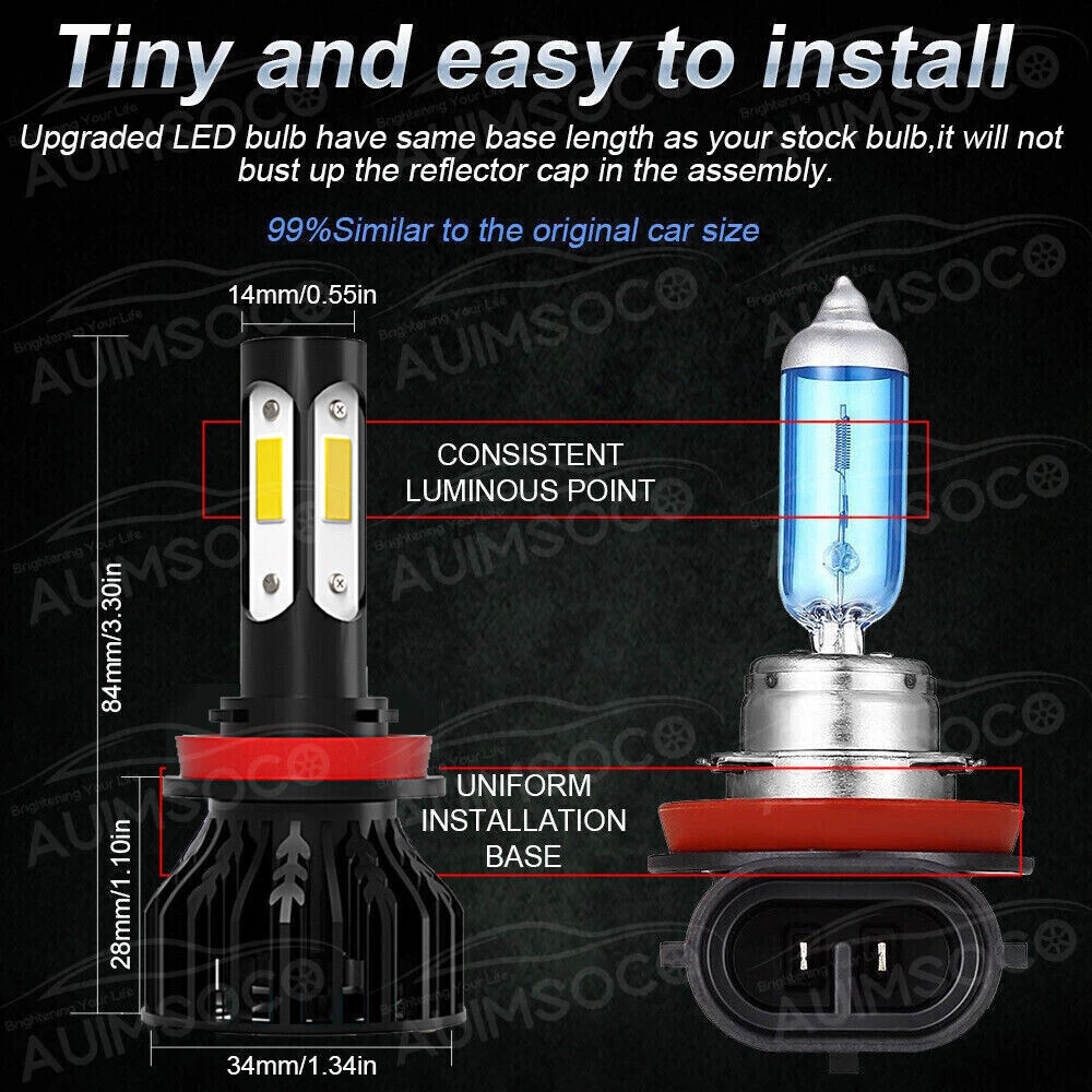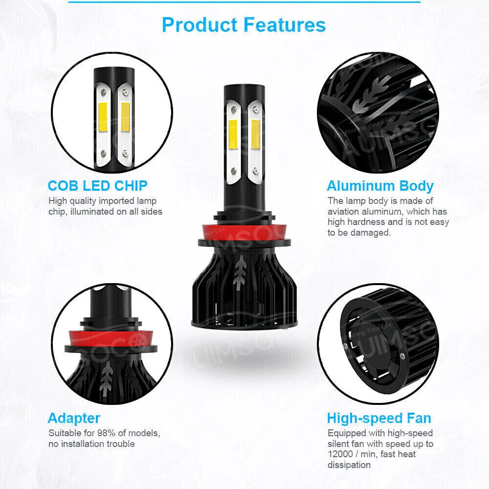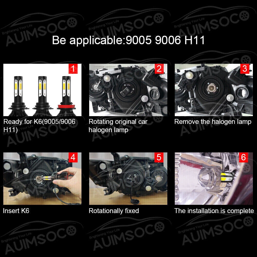 Store Categories Store Categories Other For Toyota Highlander 2014-2019 6x LED Headlight+Fog Light Bulbs Combo Kit 6000K Product Overview Details For Toyota Camry 2007-2014 6000K LED Headlight + Fog Light 6x Bulbs Combo Kit This package includes 9005 High Beam Headlight + H11 Low Beam Headlight + H11 Fog Light Bulbs. If you are unsure your bulb type, please do remember send message to tell us your car make, model, year and other information which is helpful to check bulb type. for example: 2004 Ford F-150, high/low beam 2015 RAM 1500 with projector-type, high beam LED Headlights Bulbs: 9005/H11 LED replacement bulbs are engineered for superior performance, exceptional looks, and increased safety. Especially designed for upgrading the Headlight bulb Bulb Size: 9005(=HB3), H11(=H9=H8) Beam Type: High Beam / Low Beam Color Temperature: 6000K - White Wattage: 60W Lumens: 6000LM Working Voltage: DC 9V to 36V Waterproof Level: IP68 Material: Aluminum alloy Lifespan: > 30,000 Hours Product Advantages : High brightness: The latest cob with 6000K cool white LED chip; 200% brighter than the existing halogen headlights. Advanced technology ensures perfect beam patterns without any black spots. Glow on all sides: 360 degree no dead angle lighting, use more clear and bright at night Strong heat dissipation: equipped with highly silent heat dissipation fan, speed up to 12000/min, heat dissipation efficiency, can avoid temperature accumulation on the beads, prolong the service life of the beads. IP68 waterproof: using integrated radiator and aluminium body self-cooling, waterproof and heat-proof. Even in extreme cases, the enclosure of the rainproof driver can work properly. Automatic short circuit protection. Simple Installation: Installation only takes 10 minutes. No relay. There is no capacitor. No additional wiring. Plug and play. LED Fog Lights Bulbs : Bulb Size: H11(=H8=H9) Voltage: DC 9V to 36V Color Temperature: 6000K Wattage: 16W Lumens: 1600LM Color: White Lifespan: >30, 000 hrs This new product has high luminous efficiency, low power consumption and long service life. Easy installation, Direct plug in and play. Best used for Fog/ Driving lights/ Daytime Running Light DRL Faster on/ off response time Energy saving, environmental protection, Stable performance, through strict test, Use safer driving Why Use LED Headlight Bulb? If you find this listing, you are must looking for brighter white headlight bulbs with an excellent beam pattern for upgrade. Congratulations, you find what you want now! LED headlight bulbs is a successful replacement for Halogen bulbs, it is brighter and more reliable, perfect for high-beam (and also low beam, fog, & driving lights) use. With it, you will get much better night driving, and also, much better seen during the day. Package Included: 2 x LED High Beam Bulbs 2 x LED Low Beam Bulbs 2 x LED Fog Light Bulbs Install Caution 1. As a safety precaution, make sure that the car has had time to cool down properly before starting the installation process. 2. Put the vehicle into park or make sure it is securely in gear. 3. Make sure to have the ignition turned off and the keys removed. 4. Be careful to avoid burns, especially when turning on or off the vehicles lighting. 5. Be careful to avoid crushing or cutting the bulbs. Also make sure to not touch the bulbs with your fingers, as this will cause blotting. 6. Fully examine the connection of the contact points, ports and the wires as faulty connections can cause lighting problems. 7. Make certain that the end of the bulb does not come in contact with the interior light shield of the headlight when adjusting the bulb. 8.Please install car headlight dust cover to ensure the normal operation of the lamp (to prevent dust and small ribbons to reduce the chances of bulb cooling fan broken to ensure the normal operation of the cooling system) Selling Point: 1.Good light type, Low power consumption and super bright lighting,the position of the light-emitting point is close to the original car halogen lamp 2.No delay to light up, Faster on/off response time, low power consumption and high lighting,Good Quality And Durable,Easy to Install,Good Feel 3.Lifespan: Up to 50,000 hours working hours ,Adopt imported chips emit 360 degree light can light up every corner, stable quality, long service life 4.The model is as the same as factory light, no need to change car wire rute,just Plug and Play, NO modification required A direct replacement part that easy to install 5.With High-purity brightness, strong penetrability and superior stability,Energy saving, environmental protection, through strict test, Use safer driving in the car,highly recommended. Shipping Policy Payment Method Returns Policy Shipping Policy We will deliver the goods to you through USPS, which will take about 3-6 working days. You can track it online. Payment Method 1. PayPal payment accepted only. 2. Items will be shipped to your eBay address. Please make sure it is correct. 3. Payment must be received 4 days after auction ended. Returns Policy If product is defective or damage upon arrival, or wrong product shipped, please contact us immediately. Returns accepted within 30 days of delivery date and item must be in original new condition, not worn or altered in any way with attached tags & wrap. Otherwise deal is final. Return shipping must be paid by buyer. Home Payment Return Policy About us Contact us For Toyota Highlander 2014-2019 6x LED Headlight+Fog Light Bulbs Combo Kit 6000K Product Overview Details For Toyota Camry 2007-2014 6000K LED Headlight + Fog Light 6x Bulbs Combo Kit This package includes 9005 High Beam Headlight + H11 Low Beam Headlight + H11 Fog Light Bulbs. If you are unsure your bulb type, please do remember send message to tell us your car make, model, year and other information which is helpful to check bulb type. for example: 2004 Ford F-150, high/low beam 2015 RAM 1500 with projector-type, high beam LED Headlights Bulbs: 9005/H11 LED repl