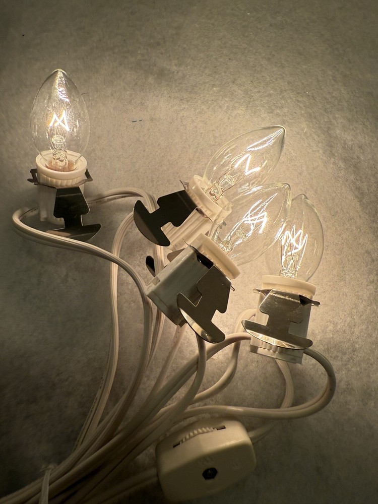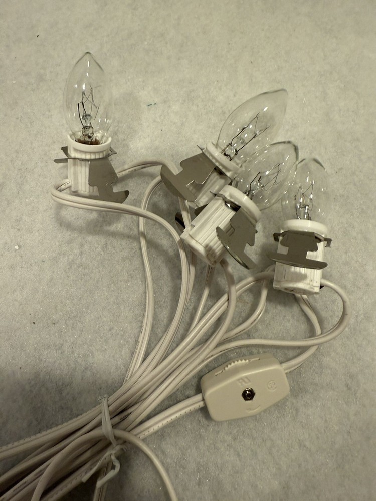 Will not guarantee life of bulbs due to used condition. Bulbs are working and tested at time of sale. C7 4 Socket Light Cord Set Dept 56 Lemax Christmas Village Sets On/Off Switch A16