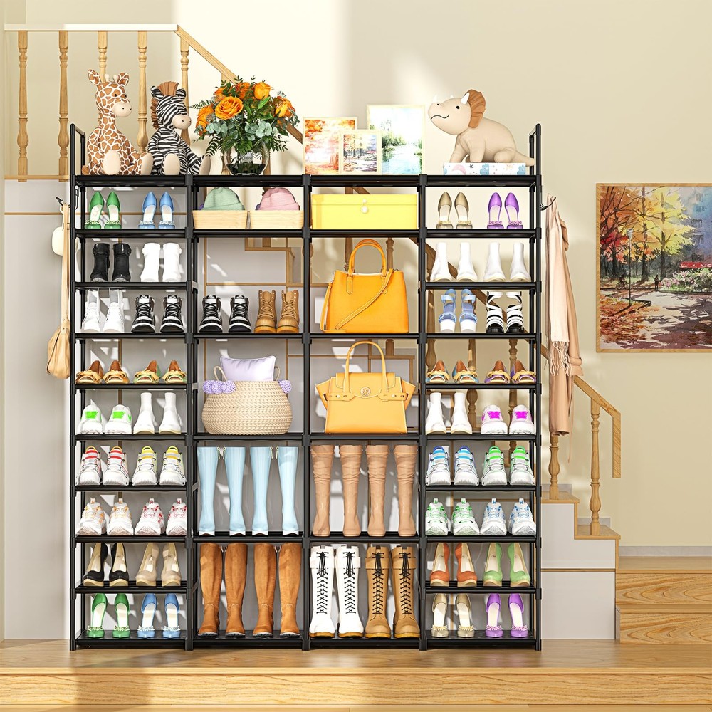 This shoe rack is a game-changer for keeping my closet organized! It holds so many pairs without wobbling, and I love that I can adjust the height for boots and sneakers. Super sturdy, easy to assemble, and looks sleek in black—perfect for any entryway or closet. No more messy piles of shoes!