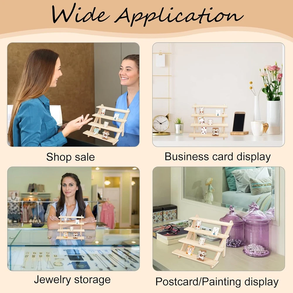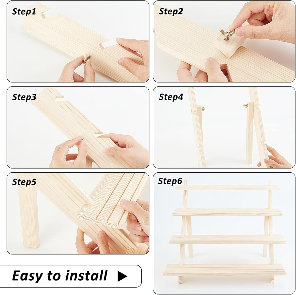 4-Tier Log Jewelry Display Stand -- You will receive 1 set of accessories for the wood display stand, each step panel has 3 slots(about 0.1" wide each of slot) for displaying rings, earrings, or jewelry cards. The size of finished product is 15x15.7x12.6". High Quality Material -- Made of quality wood, durable and wearable, and wooden products are not easy to scratch the desktop or display items, pure wood products are more friendly to the environment. Easy to Assemble -- This product is very easy to assemble, just use a screwdriver to screw the screws into the pre-drilled holes. Saves you tedious installation steps and saves you time. DIY Graffiti -- Our log display stand is not colored, you can doodle and color the display stand or stick your favorite stickers according to your hobby or interior decoration style to make the displayed items more eye-catching. Versatile Display - 4-Tier display stand makes efficient use of your desk space. This decorative display riser is great idea for displaying jewelry and crafts at the market, celebrating party desserts, and displaying potted plants or flowers. Product Description