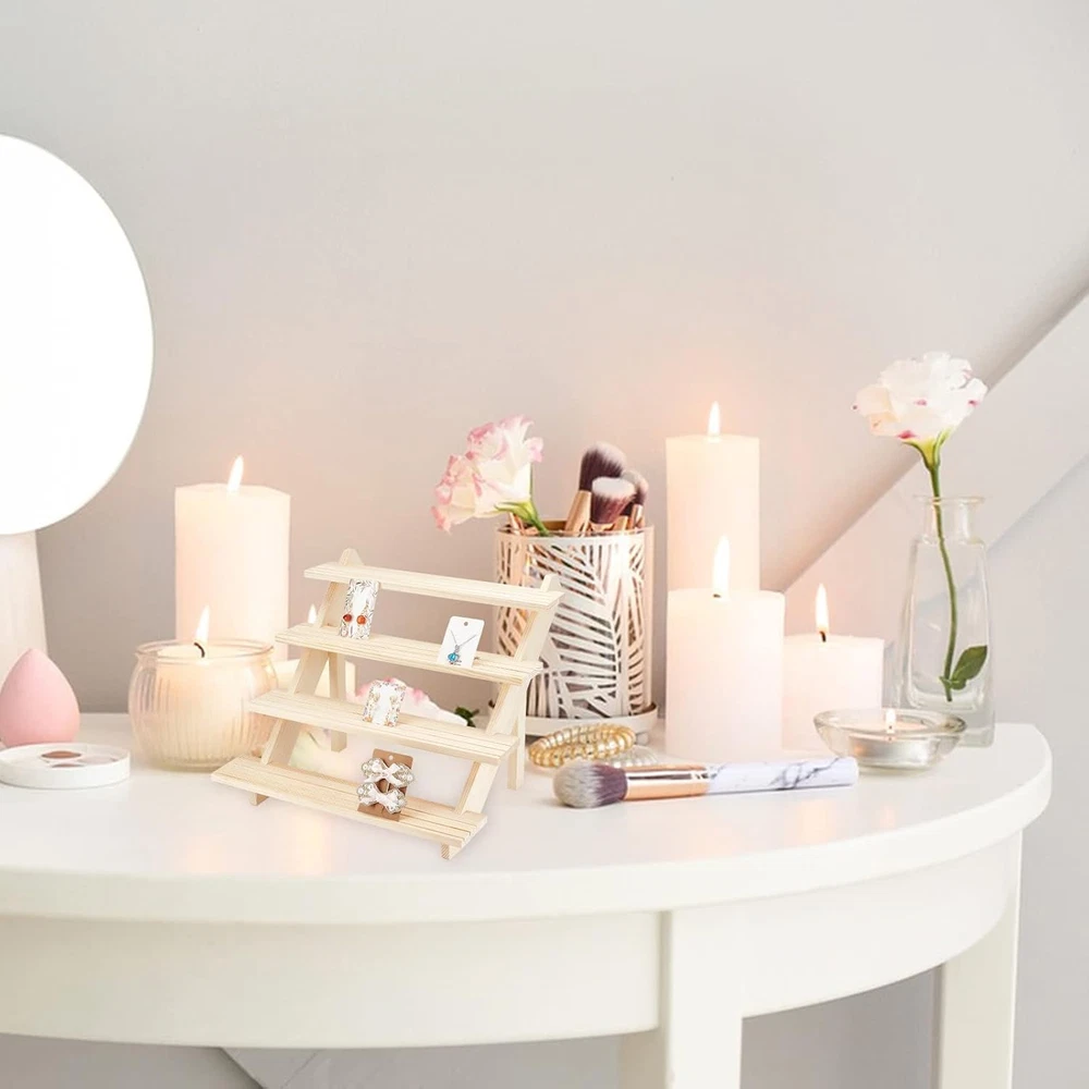 4-Tier Detachable Wooden Riser Stand for Jewelry with 12 Slots