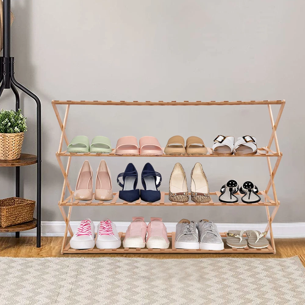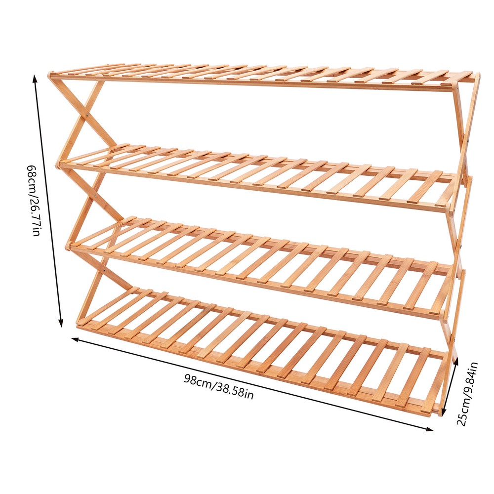 Description Are you beset by the vexing dilemma of wayward shoes scattered haphazardly throughout your abode? Allow us to illuminate an exquisite fusion of utility and elegance: the 4-tiered foldable shoe rack. This innovative foldable shoe rack elegantly transforms disorganization into a calm and orderly atmosphere for a tidy home. Key Features Stable and Durable: It is made of high-quality bamboo(fragrant and odorless), which is carefully polished, anti-corrosion and moth-proof, tough and durable to ensure a long time of use. 4-tiers Large Capacity: Designed with four layers of spacious storage space (38.58*9.84*26.77in), it can easily store all kinds of shoes, whether it's high-heeled shoes, sneakers or boots, can be placed in an orderly manner to maximize the use of space. Living Room Shoe Rack 4-Tier Foldable Shoe Shelf Entryway Hallway Closet Bamboo Description Are you beset by the vexing dilemma of wayward shoes scattered haphazardly throughout your abode? Allow us to illuminate an exquisite fusion of utility and elegance: the 4-tiered foldable shoe rack. This innovative foldable shoe rack elegantly transforms disorganization into a calm and orderly atmosphere for a tidy home. Key Features Stable and Durable: It is made of high-quality bamboo(fragrant and odorless) , which is carefully polished, anti-corrosion and moth-proof , tough and durable to ensure a long time of use. 4-tiers Large Capacity: Designed with four layers of spacious storage space (38.58*9.84*26.77in), it can easily store all kinds of shoes, whether it's high-heeled shoes, sneakers or boots, can be placed in an orderly manner to maximize the use of space. Flexible Folding: Innovative folding design allows you to easily fold and put away when not in use, saving space and easy to carry and store. Stable Support: Thickened board (15mm) and X-shaped cross-bracing structure enhance overall stability, allowing for a stable weight capacity of 88.18 lbs. per layer. Simple and Generous: It retains the natural color of bamboo on the surface, while the original wood style blends ideally with various home decorating styles, adding a touch of natural flavor to your living environment. Installation-Free: The one-piece foldable design allows you to start using the product directly after receiving it without the need for complicated installation. Effortless Cleaning: Thanks to its smooth surface and simple construction, you can just wipe it gently to remove stains. Customer Service: We aim to provide quality products and services. If you have any problems, please feel free to contact us. We will reply and solve the problem for you as soon as possible. Details Even Gap: The strip gap (1.38in) is even and organized, preventing items from falling out and giving you peace of mind when using it. Delicate Touch: Each piece of bamboo is finely polished and delicate to the touch, presenting the beauty of natural texture. Carabiner Design: It holds the shoe rack firmly and provides more stable support. Smooth Edges: The smooth and burr-free edges enhance the beauty of the product and better care for your skin when installing and cleaning it. Application It is suitable for entrance,study room, living room, kids room, bedroom, hallway, balcony, patio gate, garage, outdoor, and many other places. It can be used as a shoe rack, display rack, flower rack, and bookshelf, used to organize all kinds of shoes as well as books, potted plants, cutlery, tablets, cell phones, and other daily sundries. Specification Material: Bamboo Color: Wood Process: Polished Feature: Foldable Mount Type: Freestanding Assembly Required: No Number of Tiers: 4 Board Thickness: 1.5cm/0.59in Individual Strip Widths: 2cm/0.79in Single Tier Load-capacity: 40kg/ 88.18 lbs Product Size: 98*25*68cm/38.58*9.84*26.77in Package Size: 95*30*9cm/37.4*11.8*3.5in Net Weight: 4kg/8.82 lbs Gross Weight: 4.05kg/8.93 lbs Package Included 1* 4 -tiered Foldable Shoe Rack 1* English Diagram Notes Please check the color and size before purchasing. Please follow the diagram for usage. Please do not fully open when unfolding, so as to avoid pulling too wide, which may cause the panel is not good to take on the crossbar; wait for all panels to take on the crossbar and then fully unfolded. Be careful not to clip your hand as you unfold shoe racks. When it needs to be taken away or moved, the bamboo shoe rack can be easily stored by operating it in the reverse direction according to the unfolding method. For friends who have pets at home, especially your cats are more curious, you can fix the shoe rack with tape or related things according to your own situation, so as not to be knocked down. If you put a relatively heavy item for a long time on the shoe rack and bend it, you can take it off for a few days, because the shoe rack is made of bamboo with good toughness, and it will naturally recover after that. Please allow the slight color difference caused by the shooting light and 1-3cm error due to manual measurement and make sure you do not mind before ordering. Payment Delivery details Terms of sales About us Contact us Payment We accept ebay payment 。 Fees such as import duties, taxes are not included in the item price or shipping costs. These charges are the buyer's responsibility. Delivery details Shipping: 2-9 working days to: USA Terms of sales We maintain high standards of excellence and strive for hundred percent customer satisfaction. Feedback is very important to us. We hope that you contact us immediately before you give neutral or negative feedback, so that we can address your concerns. It is impossible to address issues if we do not know about them! About us Your satis faction is our ultimate goal. We work hard to earn your trust and future business. Our certified technicians have tested each item before shipping. The unit comes with 1 year limited warranty on all manufacturing defects. a) If you receive a defective item, you may return it or ask for a discount. Please contact 