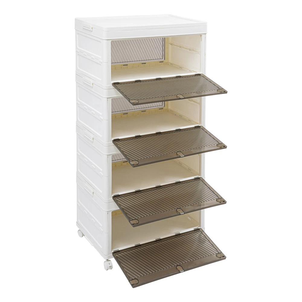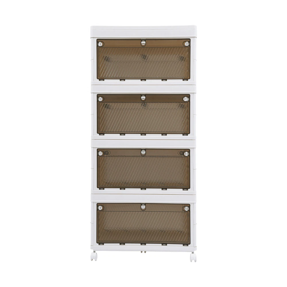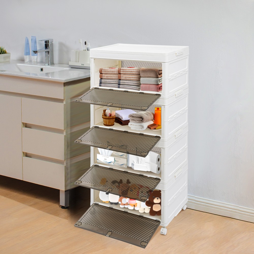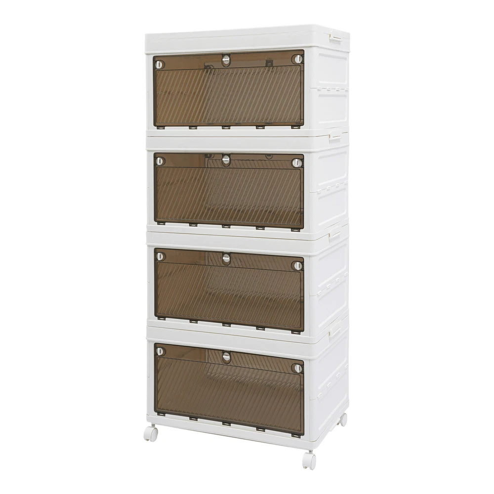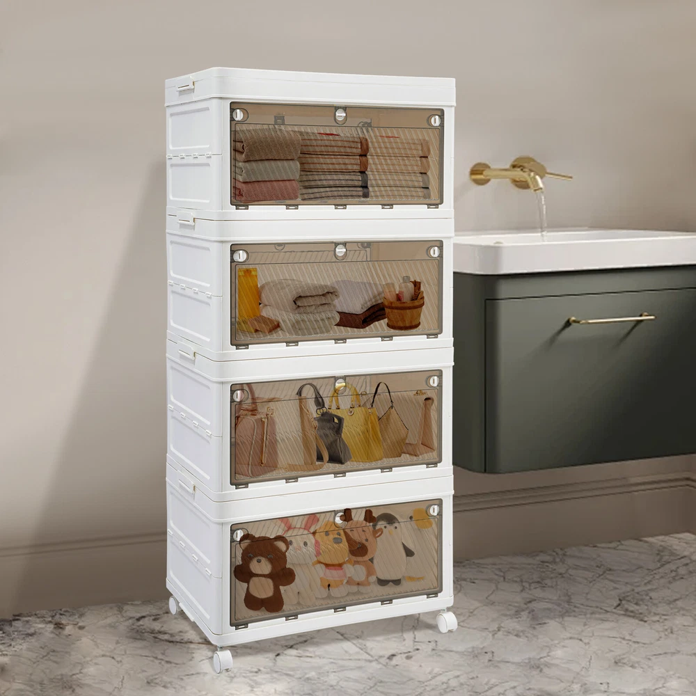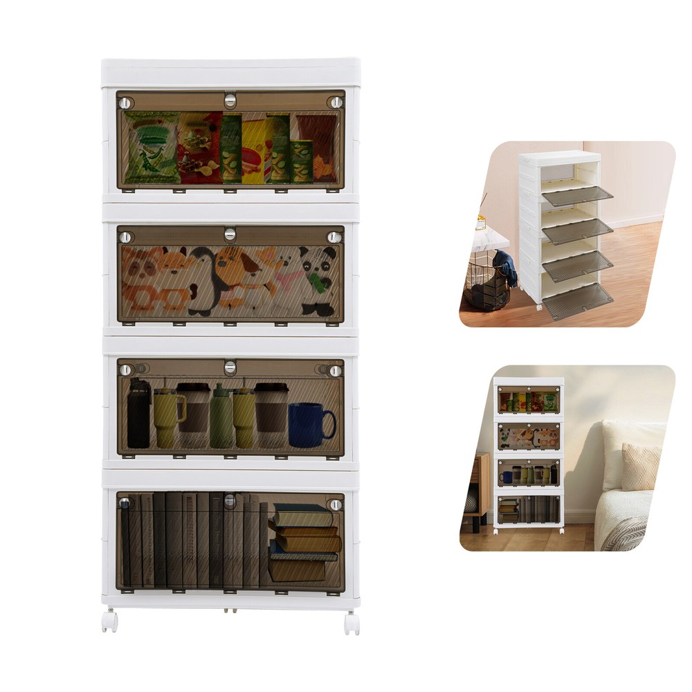 welcome to my store! Description Description Are you troubled by home storage? Are you looking for a storage cabinet that is both practical and easy to move? Our 4-tier foldable storage organizer will be your ideal choice, making your home environment instantly tidy and orderly. The spacious design makes it superior in storage capacity, meeting your diverse storage needs. It is a home storage artifact that combines space optimization, convenient mobility, durability, and thoughtful design. Choosing our product means choosing a more organized and convenient way of life. Key Features Made to Last: This product is made of premium PP, treated with an injection molding process, which is sturdy, impact-resistant , scratch-resistant , and rust-resistant , ensuring long-term aesthetics and practicality. Modern Appearance: The pleasing white and tan color scheme, simple appearance , and smooth lines add beauty elements to your room. It plays a unique decorative role while using, bringing an exquisite charm into your home. Spacious Space: It has a 4-tier design, which is enough to easily store clothes, snacks , cosmetics, and other items(not included), making your room cleaner. Foldable Design: It can be quickly folded flat when not in use to be placed in the corner of the room or car boot to save storage space. User-friendly: Unlike magnetic buckles, the door panel of this product adopts mechanical buckles, which have better locking mechanisms and will not easily pop out. In addition, it can be opened from the front door and rear door, both of which can conveniently retrieve items from different directions, providing you with convenience. Easy to Move & Fix: Four universal wheels (two with brakes) make the whole product easily moved from one place to another and can be fixed at will, greatly enhancing efficiency and convenience. Visible Design: The translucent doors allow you to quickly search for items while ensuring that internal items are not completely exposed, providing a certain level of privacy protection. Free Assembly: The modular design allows you to freely choose the number of tiers to assemble, fully adapting to different storage needs and space layouts. Effortless Cleaning: It has a smooth surface and a simple structure, so you only need to wipe the dust or residue with a towel. Ideal Gift: With good performance and a modern appearance, it can be used as an ideal housewarming gift for parents, friends, and lovers so that they can also enjoy a more exquisite and convenient life. Good Customer Service: We aim to provide quality products and services. If you have problems, please feel free to contact us. We will reply and solve the problem for you as soon as possible. Details Raised Bottom: It is conducive to moisture resistance and facilitates cleaning. Side Buckles: They make each tier of the organizer firmly fixed, and improve the stability of the product. Smooth Edges: They no t only increase the beauty of the product but also improve the safety of use. Application It is used to store clothes, books, cosmetics, toys, snacks, perfume, and other items(not included). It is suitable for a bedroom, children's room, kitchen, laundry, dormitory, and other places. Specification Color: White Material: PP Process: Injection Molding Style: Modern Number of Tiers: 4 Assembly Required: Yes Mount Type: Freestanding Type of Wheels: 4 * Universal Wheels (2 with Brakes) Total L oad-bearing Capacity: About 10-15kg/22.05-33.07 lbs (For Reference Only) Product Size: 62*38*132cm/24.41*14.96*51.97 in Package Size: 62.5*32*40cm/ 24.61 * 12.6 * 15.75 in Gross Weight: 10kg/ 22.05 lbs Net Weight: 9.5kg/ 20.94 lbs Package Included 1* 4-tier Foldable Storage Organizer 4* U niversal Wheels Notes Please note that this product does not include other storage items shown in the picture. Please use within the load-bearing range of the product. Please allow the slight color difference caused by the shooting light and 1-3cm error due to manual measurement, and make sure you do not mind before ordering. Payment Delivery details Terms of sales About us Contact us Payment We accept ebay payment 。 Fees such as import duties, taxes are not included in the item price or shipping costs. These charges are the buyer's responsibility. Delivery details Shipping: 2-9 working days to: USA Terms of sales We maintain high standards of excellence and strive for hundred percent customer satisfaction. Feedback is very important to us. We hope that you contact us immediately before you give neutral or negative feedback, so that we can address your concerns. It is impossible to address issues if we do not know about them! About us Your satis faction is our ultimate goal. We work hard to earn your trust and future business. Our certified technicians have tested each item before shipping. The unit comes with 1 year limited warranty on all manufacturing defects. a) If you receive a defective item, you may return it or ask for a discount. Please contact us within 14 days after you receive the package. b) What you returned must be intact and in its original packaging as re? u. Customer is responsible for shipping costs of the returned item. c) We will cover the cost of shipping back t with the shipping rate indicated in the registration page. We will send you a new unit or refund the full payment you paid. Thank you. Contact us Business Hour Business Hour: Monday To Friday: 8:30 AM to 5:00 PM (Beijing China time) Due to time zones, our reply to your questions may not be immediately. But within above working time, we will reply your email within 24 hours. If it's non-workdays, please kindly be patient and wait till Monday. Please contact us with ebay message. Please feel free to contact us if you have any questions. Monday To Friday: 8:30 AM to 5:00 PM (Beijing China time) Due to time zones, our reply to your questions may not be immediately. But within above working time, we will reply your email within 24 hours. If it's non-workdays, pleas