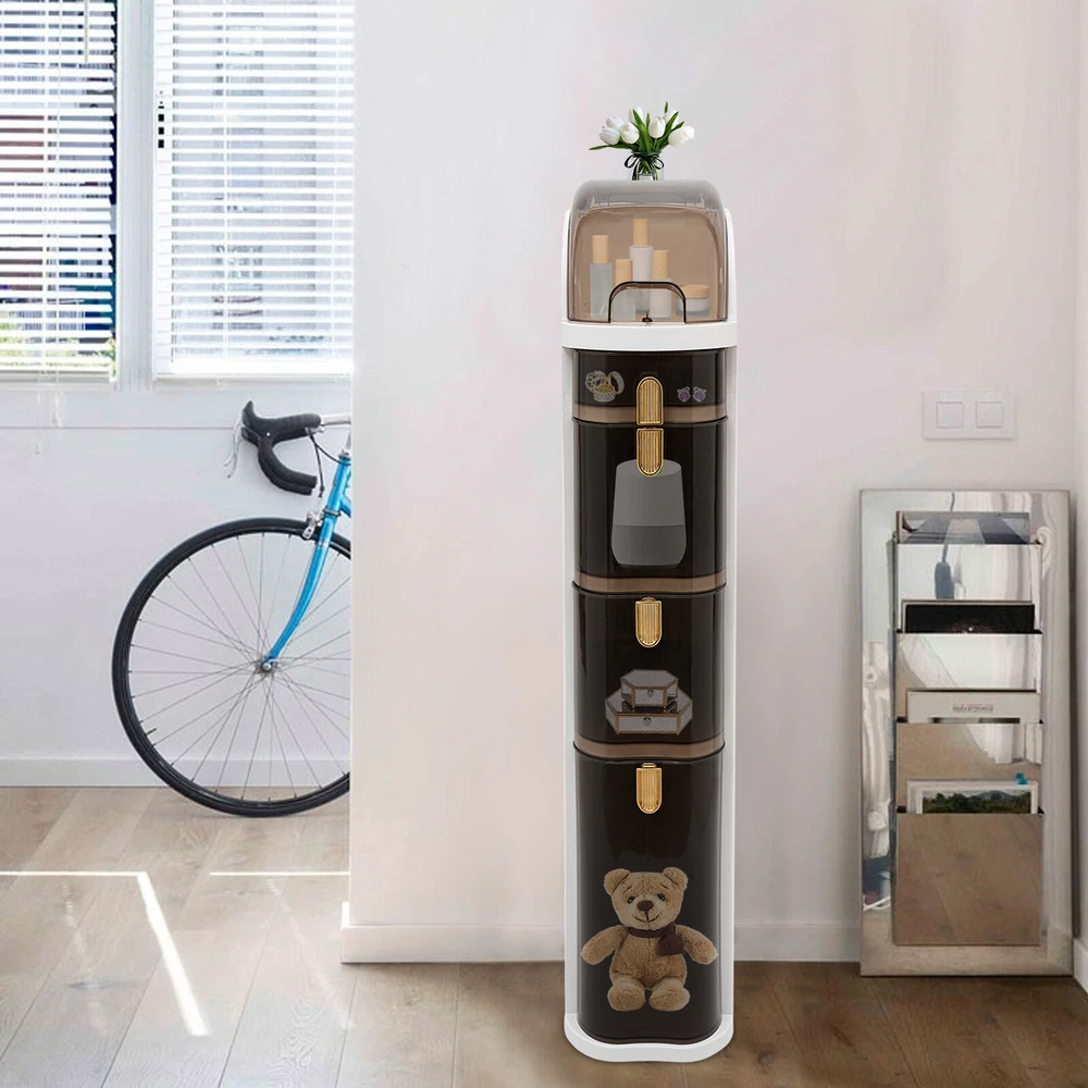 4-Tier Free Standing Cabinet Organizer Toilet Paper Holder and Storage w/ Drawer