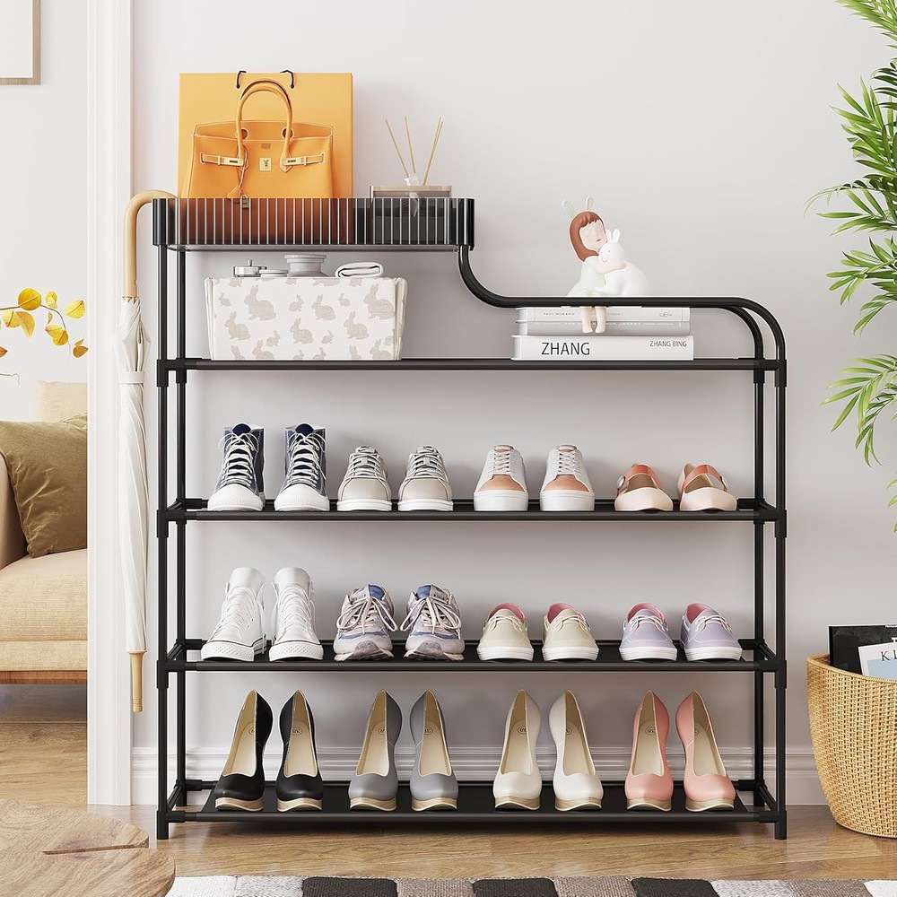 This shoe rack is a total game-changer for my cluttered hallway! It holds all our family's shoes neatly, from boots to sneakers, and the extra storage box on top is perfect for umbrellas and small bags. The sturdy metal and canvas construction feels really durable, and it was surprisingly easy to put together. Finally have an organized entryway!