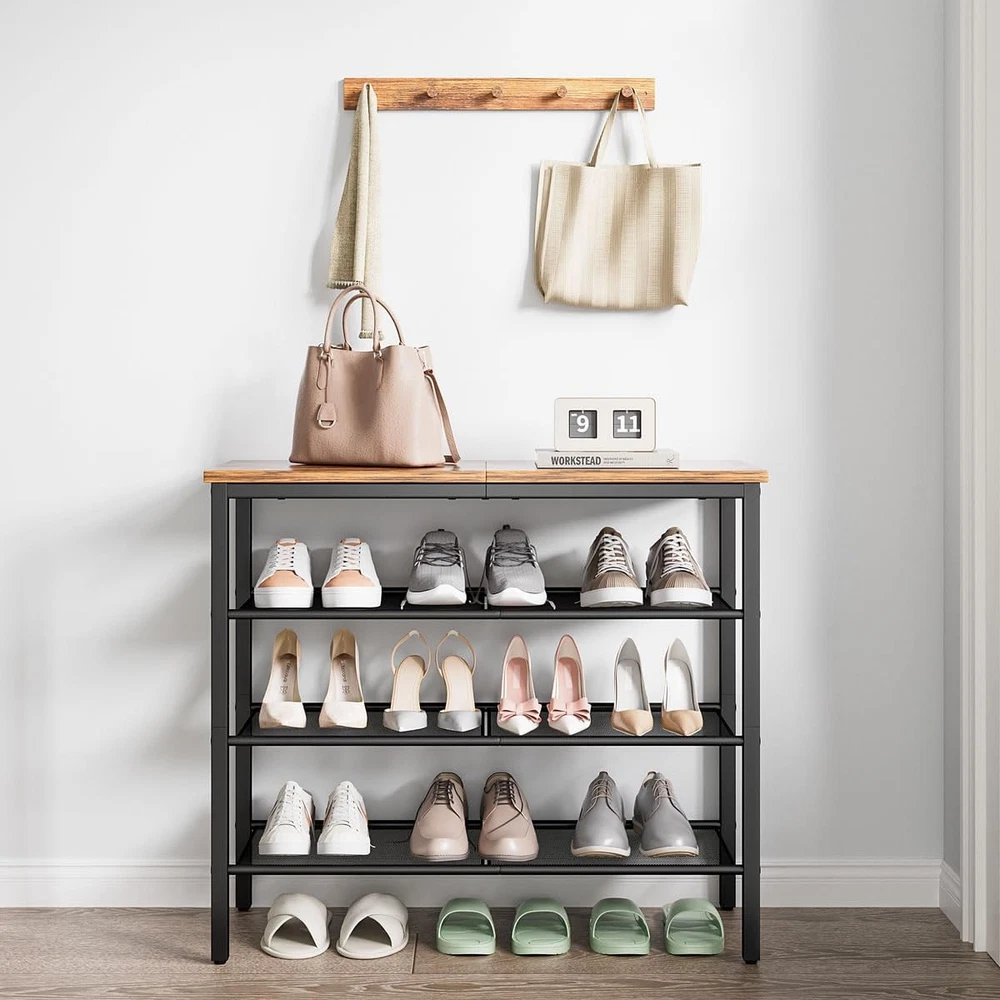 This shoe rack is a game-changer—sturdy, stylish, and super functional! The mix of rustic wood and black metal gives it a chic industrial vibe, and the four tiers hold all my shoes neatly. Super easy to assemble, and the quality feels solid. Perfect for keeping my entryway organized without sacrificing looks. Highly recommend!