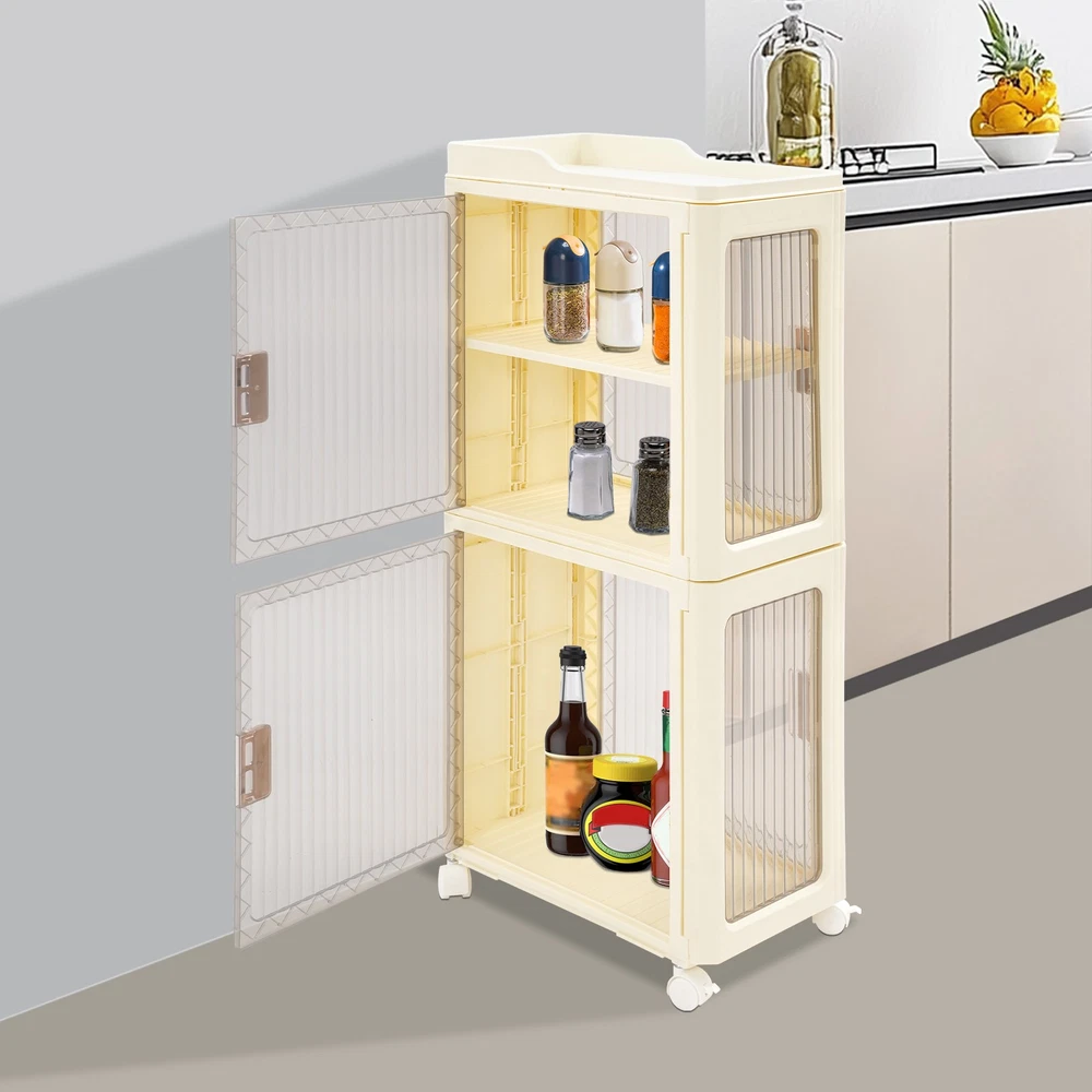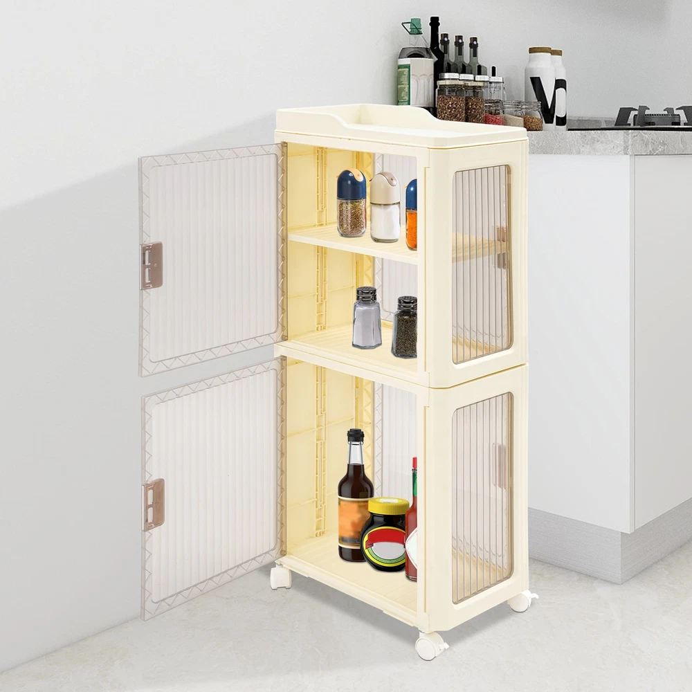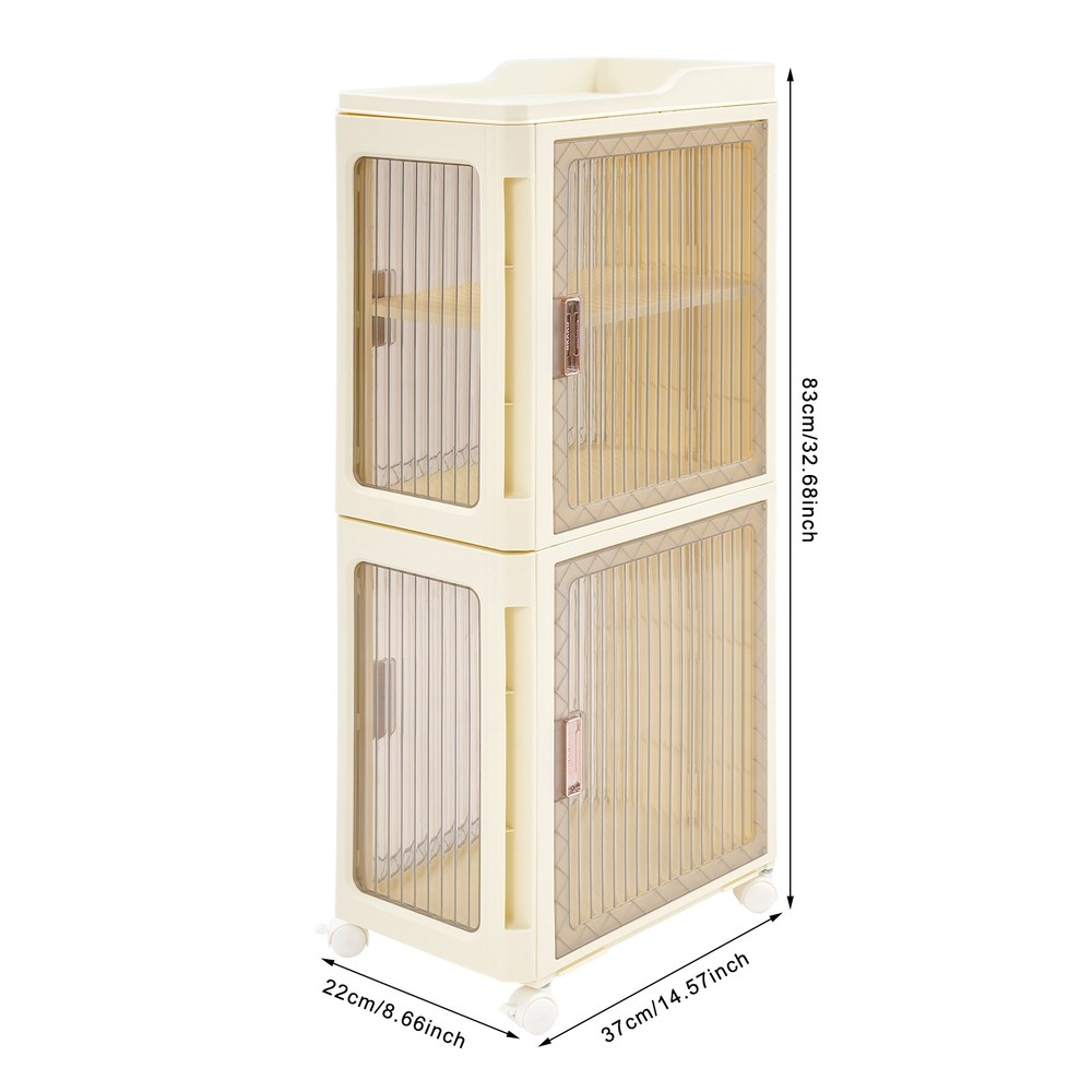 4tier Slim Storage Cabinet Narrow Storage Sabinet W/ Lockable Wheels For Bedroom Description Description Designed for reliability and efficiency, this narrow storage cabinet boasts a four-tier layout with adjustable shelving to suit your storage needs. Thanks to its tall, slender form, it fits seamlessly into confined spaces without sacrificing storage capacity. This piece helps transform your space into a neat and cozy retreat, enhancing your daily well-being. Key Features Build to Last : Premium PP makes this product environmentally friendly , safe, water-resistant , corrosion-resistant , and not easy to fade, so it can maintain aesthetics and practicality for a long time. Optimized Storage Space: With its three-tier internal structure, this cabinet offers flexible compartments for categorizing and storing a wide range of items — from skincare products to household cleaners. The dedicated open-top platform serves as a handy spot for daily-use bottles, ensuring they're visible and easily accessible without taking up valuable interior space. Streamlined for Tight Corners: Designed with compact in mind, this unit features a slim footprint of just 14.57*8.66 inches and a tall, vertical structure that maximizes unused space. Great for tight corners or narrow bathrooms, it offers generous storage without taking up valuable floor space — ideal for keeping your home organized and clutter-free . User-Oriented Engineering: The cabinet doors snap shut like a magnet to a fridge — quiet and secure. With an adjustable tier board inside, you can easily tweak the space to fit things from tall bottles to tiny trinkets. With doors that open from both front and sides, it’s like having multiple storage options in one smart unit — ideal for many corners, and many needs. Transportable with Braking Capability : To facilitate movement, the base is equipped with four casters, and stability is supported by brake features installed on two of them for controlled positioning. Visible Design : The clear cabinet doors allow you to see the contents inside, enabling faster and more accurate retrieval. Fashionable Appearance : The classic milky white and clear colors and smooth lines make the whole product lovely and modern. Wherever it is placed, it will be beautiful scenery. Easy to Clean: With its simple construction and smooth surface, you can simply wipe off surface dust with a damp rag(not included). Ideal Gift : Beautiful appearance and practical function make it a housewarming or holiday gift for family and friends so that they will enjoy a convenient and organized life. Details Easy-Grip Door Handles: Designed for everyday convenience, the handles facilitate easy cabinet operation, helping you reach your essentials without hassle. Top Safety Edges: Designed with safety in mind, the heightened edges on the top help retain items and ensure they stay within bounds. Rounded Corners : They can protect your hands from being scratched during use and also enhance the aesthetics of the product. Application It is ideal for organizing tissues, shampoos, cosmetics, towels books, remotes, glasses, toys, pet supplies, spices, cutlery, and documents. It’s a versatile storage solution for the bathroom, living room, bedroom, kitchen, laundry room, study, office, and more. Specifications Color: Milky White+Clear Style: Modern Assembly Required: Yes Material: PP Mount Type: Floor Standing Number of Tiers: 4 (Top Tier Included) Number of Wheels: 4 (Two with Brakes) Total Product Size: 37*22*83cm/14.57*8.66*32.68in Package Size: 39*36.5*23cm/15.35*14.37*9.06in Gross Weight: 3.35kg/7.39lbs Net Weight: 3.18kg/7.01lbs Package Included 1*Narrow Slim Storage Cabinet 4*Universal Wheels Other Accessories for Assembly Notes Please check the size carefully before ordering. Please note that this product does not include other items shown in the picture. Please allow the slight color difference caused by the shooting light and the 1-3 cm error due to manual measurement, and make sure you do not mind before ordering. Payment Delivery details Terms of sales About us Contact us Payment We accept ebay payment 。 Fees such as import duties, taxes are not included in the item price or shipping costs. These charges are the buyer's responsibility. Delivery details Shipping: 2-9 working days to: USA Terms of sales We maintain high standards of excellence and strive for hundred percent customer satisfaction. Feedback is very important to us. We hope that you contact us immediately before you give neutral or negative feedback, so that we can address your concerns. It is impossible to address issues if we do not know about them! About us Your satis faction is our ultimate goal. We work hard to earn your trust and future business. Our certified technicians have tested each item before shipping. The unit comes with 1 year limited warranty on all manufacturing defects. a) If you receive a defective item, you may return it or ask for a discount. Please contact us within 14 days after you receive the package. b) What you returned must be intact and in its original packaging as re? u. Customer is responsible for shipping costs of the returned item. c) We will cover the cost of shipping back t with the shipping rate indicated in the registration page. We will send you a new unit or refund the full payment you paid. Thank you. Contact us Business Hour Business Hour: Monday To Friday: 8:30 AM to 5:00 PM (Beijing China time) Due to time zones, our reply to your questions may not be immediately. But within above working time, we will reply your email within 24 hours. If it's non-workdays, please kindly be patient and wait till Monday. Please contact us with ebay message. Please feel free to contact us if you have any questions. Monday To Friday: 8:30 AM to 5:00 PM (Beijing China time) Due to time zones, our reply to your questions may not be immediately. But within above working time, we will reply your email within 24 hours. If it's non-workdays, ple