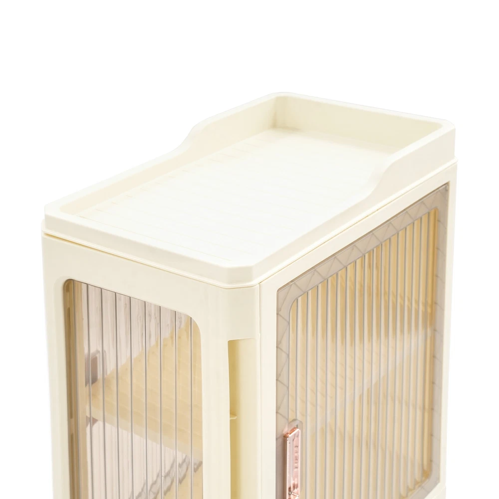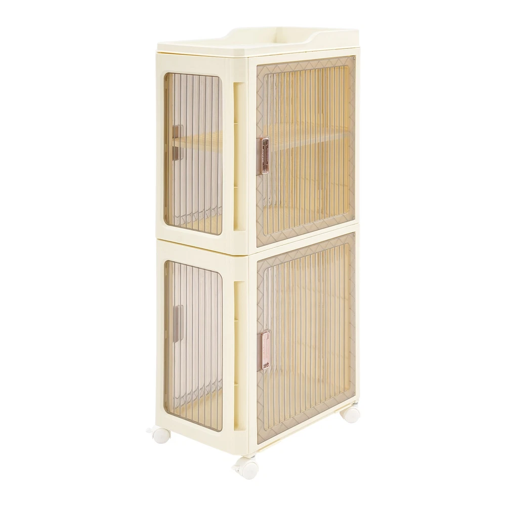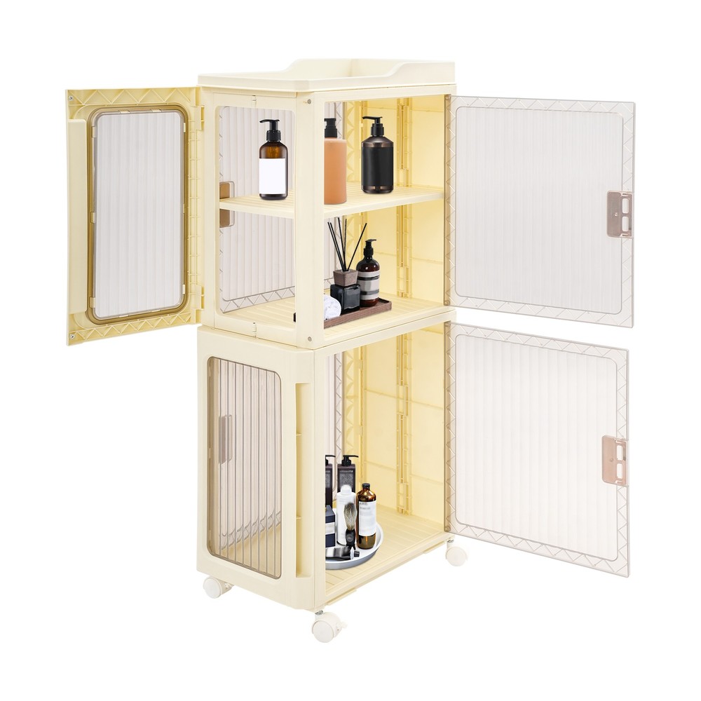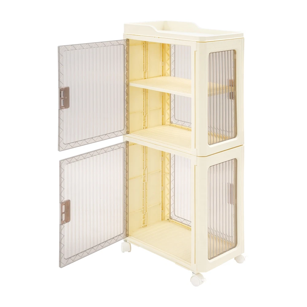 4tier Slim Storage Cabinet Narrow Storage Sabinet W/ Lockable Wheels For Bedroom Description Description Designed for reliability and efficiency, this narrow storage cabinet boasts a four-tier layout with adjustable shelving to suit your storage needs. Thanks to its tall, slender form, it fits seamlessly into confined spaces without sacrificing storage capacity. This piece helps transform your space into a neat and cozy retreat, enhancing your daily well-being. Key Features Build to Last : Premium PP makes this product environmentally friendly , safe, water-resistant , corrosion-resistant , and not easy to fade, so it can maintain aesthetics and practicality for a long time. Optimized Storage Space: With its three-tier internal structure, this cabinet offers flexible compartments for categorizing and storing a wide range of items — from skincare products to household cleaners. The dedicated open-top platform serves as a handy spot for daily-use bottles, ensuring they're visible and easily accessible without taking up valuable interior space. Streamlined for Tight Corners: Designed with compact in mind, this unit features a slim footprint of just 14.57*8.66 inches and a tall, vertical structure that maximizes unused space. Great for tight corners or narrow bathrooms, it offers generous storage without taking up valuable floor space — ideal for keeping your home organized and clutter-free . User-Oriented Engineering: The cabinet doors snap shut like a magnet to a fridge — quiet and secure. With an adjustable tier board inside, you can easily tweak the space to fit things from tall bottles to tiny trinkets. With doors that open from both front and sides, it’s like having multiple storage options in one smart unit — ideal for many corners, and many needs. Transportable with Braking Capability : To facilitate movement, the base is equipped with four casters, and stability is supported by brake features installed on two of them for controlled positioning. Visible Design : The clear cabinet doors allow you to see the contents inside, enabling faster and more accurate retrieval. Fashionable Appearance : The classic milky white and clear colors and smooth lines make the whole product lovely and modern. Wherever it is placed, it will be beautiful scenery. Easy to Clean: With its simple construction and smooth surface, you can simply wipe off surface dust with a damp rag(not included). Ideal Gift : Beautiful appearance and practical function make it a housewarming or holiday gift for family and friends so that they will enjoy a convenient and organized life. Details Easy-Grip Door Handles: Designed for everyday convenience, the handles facilitate easy cabinet operation, helping you reach your essentials without hassle. Top Safety Edges: Designed with safety in mind, the heightened edges on the top help retain items and ensure they stay within bounds. Rounded Corners : They can protect your hands from being scratched during use and also enhance the aesthetics of the product. Application It is ideal for organizing tissues, shampoos, cosmetics, towels books, remotes, glasses, toys, pet supplies, spices, cutlery, and documents. It’s a versatile storage solution for the bathroom, living room, bedroom, kitchen, laundry room, study, office, and more. Specifications Color: Milky White+Clear Style: Modern Assembly Required: Yes Material: PP Mount Type: Floor Standing Number of Tiers: 4 (Top Tier Included) Number of Wheels: 4 (Two with Brakes) Total Product Size: 37*22*83cm/14.57*8.66*32.68in Package Size: 39*36.5*23cm/15.35*14.37*9.06in Gross Weight: 3.35kg/7.39lbs Net Weight: 3.18kg/7.01lbs Package Included 1*Narrow Slim Storage Cabinet 4*Universal Wheels Other Accessories for Assembly Notes Please check the size carefully before ordering. Please note that this product does not include other items shown in the picture. Please allow the slight color difference caused by the shooting light and the 1-3 cm error due to manual measurement, and make sure you do not mind before ordering. Payment Delivery details Terms of sales About us Contact us Payment We accept ebay payment 。 Fees such as import duties, taxes are not included in the item price or shipping costs. These charges are the buyer's responsibility. Delivery details Shipping: 2-9 working days to: USA Terms of sales We maintain high standards of excellence and strive for hundred percent customer satisfaction. Feedback is very important to us. We hope that you contact us immediately before you give neutral or negative feedback, so that we can address your concerns. It is impossible to address issues if we do not know about them! About us Your satis faction is our ultimate goal. We work hard to earn your trust and future business. Our certified technicians have tested each item before shipping. The unit comes with 1 year limited warranty on all manufacturing defects. a) If you receive a defective item, you may return it or ask for a discount. Please contact us within 14 days after you receive the package. b) What you returned must be intact and in its original packaging as re? u. Customer is responsible for shipping costs of the returned item. c) We will cover the cost of shipping back t with the shipping rate indicated in the registration page. We will send you a new unit or refund the full payment you paid. Thank you. Contact us Business Hour Business Hour: Monday To Friday: 8:30 AM to 5:00 PM (Beijing China time) Due to time zones, our reply to your questions may not be immediately. But within above working time, we will reply your email within 24 hours. If it's non-workdays, please kindly be patient and wait till Monday. Please contact us with ebay message. Please feel free to contact us if you have any questions. Monday To Friday: 8:30 AM to 5:00 PM (Beijing China time) Due to time zones, our reply to your questions may not be immediately. But within above working time, we will reply your email within 24 hours. If it's non-workdays, ple
