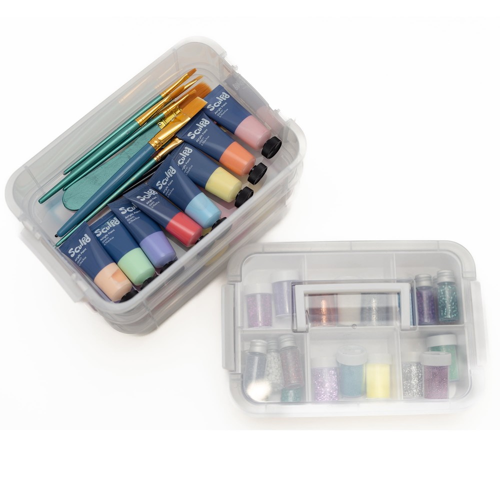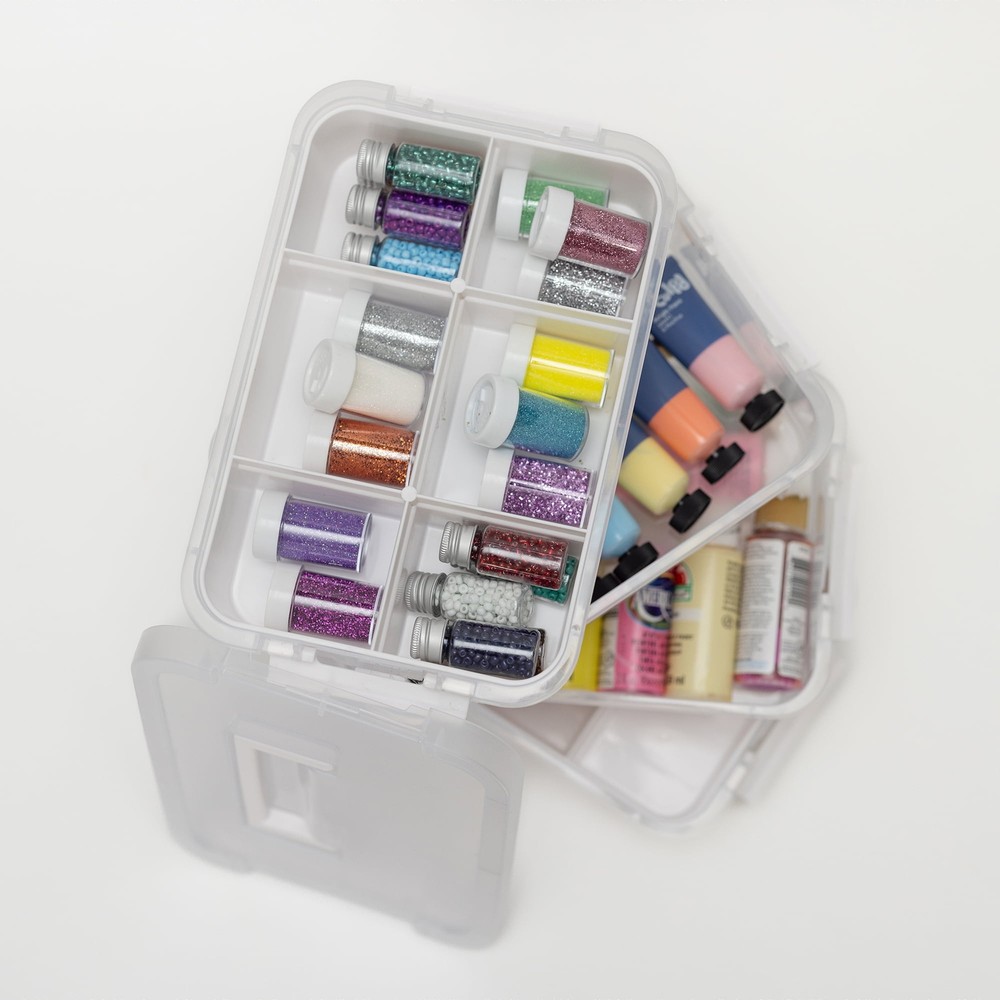 Discover theClear Plastic Storage Case with 28 Removable Jars – the ideal solution for your crafting storage needs. This clear, durable case measures 10 x 1.75 x 5 inches and comes with 28 well-sized jars for effortless bead and craft organization. The strong latches provide secure protection for your supplies, and the portable clear jar with a screw-top lid allows you to take your essentials anywhere, worry-free. Elevate your crafting experience with this stylish and practical clear storage companion! Versatile storage: The 4-Tier Snap Box is designed to store crafting, office, and home supplies, providing a convenient solution for organizing items. Easy to carry: This snap box comes with an organizer case that is easy to carry, allowing you to transport your supplies effortlessly. Secure and customizable: With 4 stackable and customizable locking tiers, this plastic craft storage box ensures that your supplies are securely locked in place during transportation, providing both safety and convenience. Durable and efficient: Organize your home in a durable and convenient way with this storage box, reducing the need to constantly keep track of your supplies and enabling you to focus more on the activities you love.