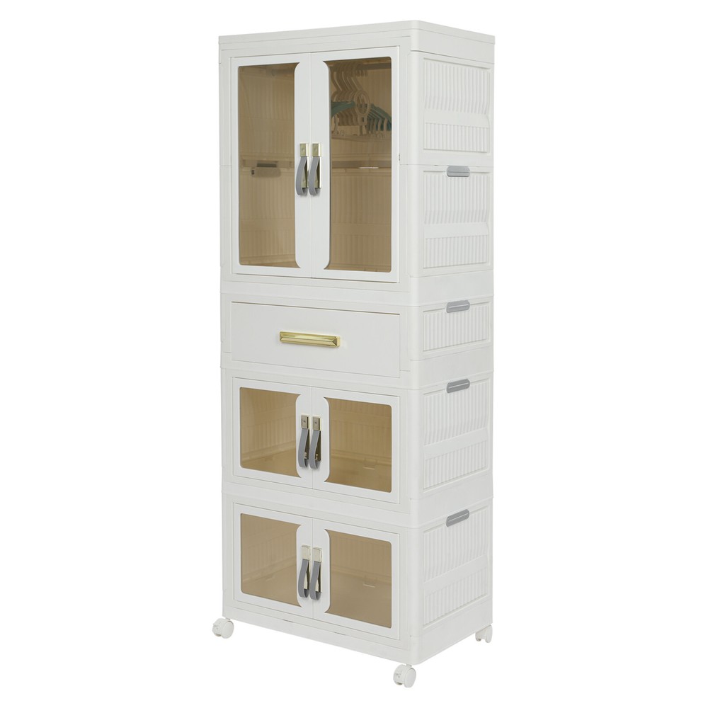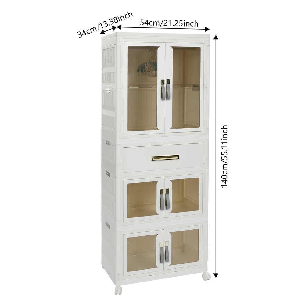 Item Width: 13.38 in Feature!: Stable performance, durable Number of Shelves: 4 Color: Clear Brown, White Room: Bedroom UPC: Does not apply Number of Drawers: 1 gtin13: Does not apply Mounting: Free Standing Item Height: 55 11 in Style: Modern Material: Pp, Pet, and Tpr Brand: Unbranded Type: Storage Cabinet Item Length: 21.25 in