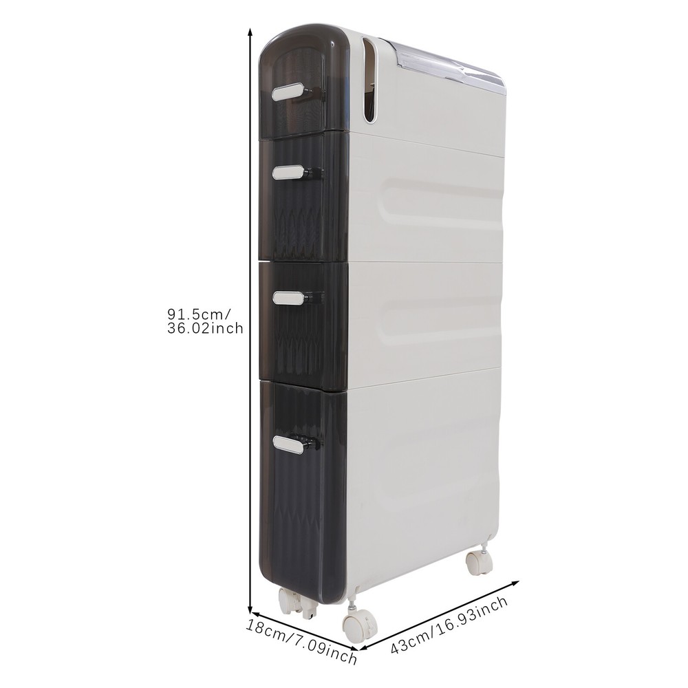 Color: White, Black, Clear Material: PP, ABS, PET Type: Storage Cabinet Number of Drawers: 4 Brand: Unbranded Style: Modern Room: Basement, Bathroom, Bedroom, Classroom, Dining Room, Dorm Room, Garage, Hallway, Home Office/Study, Kitchen, Living Room, Porch, Utility/Laundry Room Mounting: Free Standing gtin13: 758589909701 Product Size: 18*43*91.5cm/7.09*16.93*36.02in Features: With Drawers Item Height: 36.02in UPC: 758589909701 Item Length: 16.93in Item Width: 7.09in Number of Shelves: 1 Handle Material: Plastic