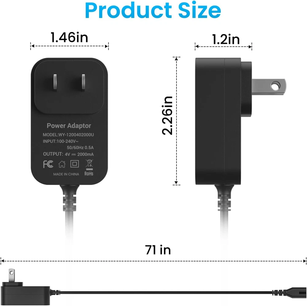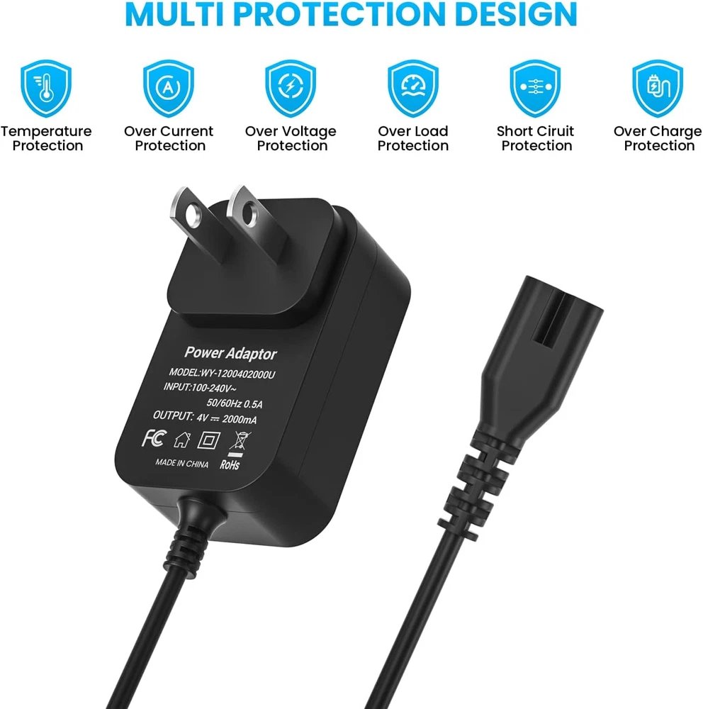 Store New Arrivals Add to Favorite View Feedback Contact 4V for Wahl Magic Clip Cordless Charger, 4V Wahl Clipper Charger for Wahl Shaver 8148/8591/8164/8504, Wahl 1919 100 Year Hair Clipper, Wahl 5-Star Magic Clip Cordless Shavers. Description Item model number 4v 2 A Power Adaptor Manufacturer SHENZHEN WOYUAN ELECTRONICS CO.,LTD Mounting Type Wall Mount Color black Is Discontinued By Manufacturer No Product Dimensions 2.17 x 1.38 x 0.98 inches Connector Type Barrel Connector Compatible Devices function(f) {var _np=(window.P._namespace("DetailPageProductOverviewTemplatesJava"));if(_np.guardFatal){_np.guardFatal(f)(_np);}else{f(_np);}}(function(P) { P.when('A').execute(function(A){ A.on('a:truncate:po-attribute-truncate-3:updated', function(data) { var isTruncated = !data.truncateInstance.getIfTextFits(); var seeMoreElement = document.getElementById('po-attribute-see-more-id-3'); if(seeMoreElement) { seeMoreElement.style.display = isTruncated ? '' : 'none'; } }) }); })); Wahl 5-star Magic Clip Cordless Hair Clipper 8148/ 8148L 8148-308 8504 8164 Shaver ,Wahl 1919 100 Year Clipper, Wahl Cordless Senior 08504-400 Shaver, Wahl 8591 Electric Cordless Clipper Trimmer, such as 8591L,8591-001 / 8591-1235 / 8591-016 / 8591-018 See more Item Weight 3.52 ounces Connectivity Technology USB Input Voltage 4 Volts (DC) Compatible Phone Models function(f) {var _np=(window.P._namespace("DetailPageProductOverviewTemplatesJava"));if(_np.guardFatal){_np.guardFatal(f)(_np);}else{f(_np);}}(function(P) { P.when('A').execute(function(A){ A.on('a:truncate:po-attribute-truncate-4:updated', function(data) { var isTruncated = !data.truncateInstance.getIfTextFits(); var seeMoreElement = document.getElementById('po-attribute-see-more-id-4'); if(seeMoreElement) { seeMoreElement.style.display = isTruncated ? '' : 'none'; } }) }); })); Wahl 5-star Magic Clip Cordless Hair Clipper 8148/ 8148L 8148-308 8504 8164 Shaver, Wahl 1919 100 Year Clipper, Wahl Cordless Senior 08504-400 Shaver, Wahl 8591 Electric Cordless Clipper Trimmer, such as 8591L,8591-001 / 8591-1235 / 8591-016 / 8591-018 See more Special Feature Travel, Short Circuit Protection Brand NFGEKT Included Components Charger Safety Design: Charger Fit for Wahl Cordless Magic Clipper Tested, approved and certified by FCC and CE and ROHS. built in smart chip,Over current protection, Over temperature protection ,Short circuit protection,Over voltage protection. Compatible With: Wahl 5-star Magic Clip Cordless Hair Clipper 8148/ 8148L 8148-308 8504 8164 Shaver ,Wahl 1919 100 Year Clipper, Wahl Cordless Senior 08504-400 Shaver, Wahl 8591 Electric Cordless Clipper Trimmer, such as 8591L,8591-001 / 8591-1235 / 8591-016 / 8591-018( please check the compatible models before your purchasing) Notice: ❌❌NOT COMPATIBLE with Wahl New Model 8171 8148L1 8504L1 8591L1 97624-002 97624-800 90302-100 97618-2200 shaver,❌❌Wahl 8163 9818 8061 9649 shaver,❌❌Wahl SS2L trimmer and other brands clipper/shaver. Input: 100-240V AC, 50-60Hz. Output: DC 4V 2A. Cable length: 1.8M/6FT. The extremely long Wahl power cord allows you to use indoor convenient. AFTER-SALE SERVICE: This product can be replaced or refunded within 30 days, if you have any questions about our products, Please contact NFGEKT promptly by email. Thank you for your support. Product Description Compatibility: 4V Clipper Compatible with Wahl Magic Clip Cordless Charger Cord with Wahl 5 Star Cordless Premium Hair Clipper 8148. Professional 5 star cordless magic clip hair clipper charger for Wahl 5-Star 8164 Shaver. Charger Fit for Wahl Cordless Magic Clipper 97225-002 Clip Shaver AC Adapter Power Cord Supply forS010AZM0400200. NFGEKT Charger Compatible with Wahl 8591 Electric Cordless Hair Clipper Trimmer. NFGEKT 4V 2A clippers magic clips charger for Wahl 1919 100 Year Hair Clipper. This Wahl clipper charger replacement is only for our listed models, please check our listed compatible models and make sure your clipper model matches it. 4V charger replace with Wahl 5-star Cordless Senior Hair Clipper 8504. Please check your Wahl Trimmer model number or original Wahl Trimer charger connector before purchasing to make sure the charger is compatible with your Trimmer. Note: Clippers shaver charger for wahl not applicable to Wahl 8163 / 9818 / 8061 / 9649 / Whal Model 8171 (Not Work Andis Clipper or Foil shaver). If there is any problem with the product received andyou can ask us through Amazon at any time. We care about only putting out high quality products that satisfy your needs. Please check whether the charger you need matches the compatible model listed in the picture and title before purchase; Because some models of this product have different versions of the interface, if you are not sure whether it matches, please provide the product model and take a picture of the device interface to ask us, we will give you suggestions. Safety & Reliable: The 4V charger for wahl groomer clipper supports over current protection, Over voltage protection, Short circuit protection, Over temperature protection which will keep dangers away from charging your wahl clipper, CE/FCC/RoHS listed.It is normal for the temperature of the wahl charger to increase during charging of wahl trimmer clipper. ABOUT US We offer the best prices around on high quality products. Our E-store includes media such as books, movies, music and games while offering electronics, toys, sporting apparel, clothing, tools, general home, garden items and more. SHIPPING We are always working hard to ensure your package arrives as soon as possible. Please understand that some factors like weather, high postal traffic, and the performance of shipping companies are outside of our control. We offer free shipping to the lower 48 states and ship within 2 business days of payment, usually sooner. We do not accept P.O. Boxes. Please provide a physical address. RETURNS We offer a 30-Day Return Policy on items which you are not completely satisfied with. You have the optio
