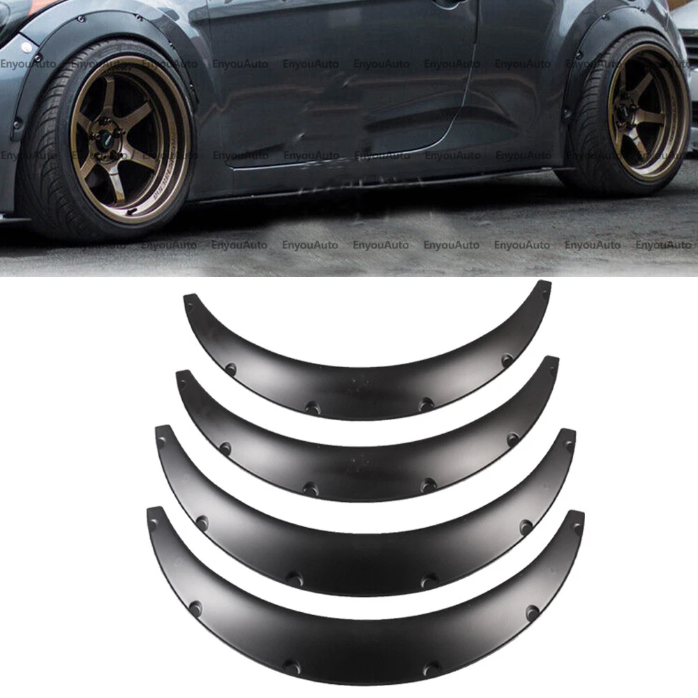 Universal Wheel Fender Flares (Please measure fender size before purchase to avoid inappropriate size) This is a Universal product. When it is installed on some models, it may required you use a little force with your hand to bend the wheel brows to fit the wheel arches' radian. The rear doors of some models are integrated, and the fender needs to be cut to a suitable size and then installed on the rear door Suitable vehicle type: Fits for car universal: Honda,Toyota,Mazda,Subaru, Volkswagen,Acura,mitsubishi,Cadillac,lexus,Audi,BMW,Mercedes Benz,Ford,VOLVO,Hyundai,Nissan,Infiniti,Buick,Chevrolet,Kia,Dodge (You can contact us if you have any concerns). Feature: -Smooth and precise edge cutting finish. -Additional Coverage for Larger Tire and Wheel Packages -Improve Appearance and Styling Dramatically -Protects wheel from mud, scratches, sand and other outer damage. -Made of high quality PP plastic, flexible and resistant to corrosion, harder and more durable. -Easy to install & Universal Fitment (Please measure fender size before purchase to avoid inappropriate size) Specification: Size:Length 32 inches Width 3.1 inches (Please measure fender size before purchase to avoid inappropriate size) Type:Universal Wheel Fender Flares Installation: riveted / bolted Placement on Vehicle: Left, Right, Front, Rear Material:PP Color:Black Package Included: 4 x Fender Flares (with 24pcs screws) How to select and install 1. Firstly, determine the diameter of the wheel eyebrow of the original car, then select the appropriate wheel eyebrow size. 2. After receiving the goods, Place the wheel eyebrow where it will be mounted, and there are 6 screws on the wheel eyebrow to determine the hole position. 3. Punch holes in the original vehicle and the wheel eyebrow and fix with screws. 4. If you want to change the color, you can do it by yourself. Delivery details/Shipping and handing: 1. We will ship your order within 3 working days 2. If you didn't receive the item after 7 days, Please contact us, we'll investigate and solve the delivery problem. If you are satisfied with our service, please leave 5 Stars Rating Thanks! Terms of sales: 1. Please contact us before leaving a Negative feedback if you are not satisfied our service or products. Good communication is helpful for both of us to resolve any problems and issues. We are promising to try our best to provide the best service and 100% satisfaction for valuable buyer like you 2. All of the items are new. If it is not in new conditions, refund is offered. Otherwise, replacement can be offered for defective product. We will exchange or give the seller credit to buyer. 3. Customers are responsible for return shipment fee except for wrong shipment or defective products. About us: If you have any questions, please feel free to email our service specialists 24 Hours a Day, 7 Days a Week, and we will reply you ASAP. If no response within 24 Hours, please check the spam of mail box or kindly re-send it to us. We greatly appreciate your POSITIVE feedback. Please do NOT leave negative feedback without any contact. If you haven't received item in 30 days, please contact us and We will try our best to solve your problem ! We are the professional car decoration dealer, if you would like to make your car a shinny look, please contact us !!!