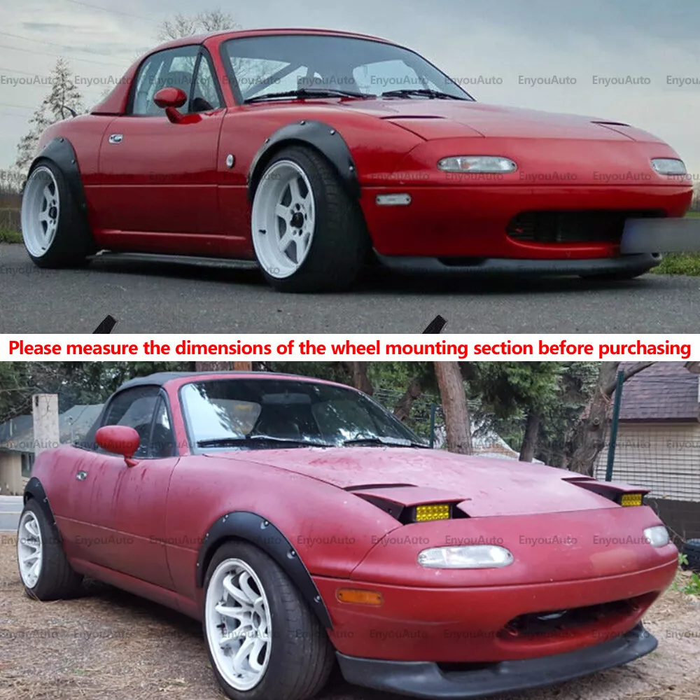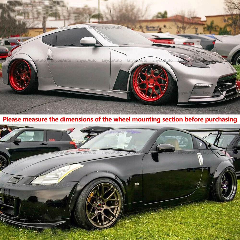 Universal Wheel Fender Flares (Please measure fender size before purchase to avoid inappropriate size) This is a Universal product. When it is installed on some models, it may required you use a little force with your hand to bend the wheel brows to fit the wheel arches' radian. The rear doors of some models are integrated, and the fender needs to be cut to a suitable size and then installed on the rear door Suitable vehicle type: Fits for car universal: Honda,Toyota,Mazda,Subaru, Volkswagen,Acura,mitsubishi,Cadillac,lexus,Audi,BMW,Mercedes Benz,Ford,VOLVO,Hyundai,Nissan,Infiniti,Buick,Chevrolet,Kia,Dodge (You can contact us if you have any concerns). Feature: -Smooth and precise edge cutting finish. -Additional Coverage for Larger Tire and Wheel Packages -Improve Appearance and Styling Dramatically -Protects wheel from mud, scratches, sand and other outer damage. -Made of high quality PP plastic, flexible and resistant to corrosion, harder and more durable. -Easy to install & Universal Fitment (Please measure fender size before purchase to avoid inappropriate size) Specification: Size:Length 32 inches Width 3.1 inches (Please measure fender size before purchase to avoid inappropriate size) Type:Universal Wheel Fender Flares Installation: riveted / bolted Placement on Vehicle: Left, Right, Front, Rear Material:PP Color:Black Package Included: 4 x Fender Flares (with 24pcs screws) How to select and install 1. Firstly, determine the diameter of the wheel eyebrow of the original car, then select the appropriate wheel eyebrow size. 2. After receiving the goods, Place the wheel eyebrow where it will be mounted, and there are 6 screws on the wheel eyebrow to determine the hole position. 3. Punch holes in the original vehicle and the wheel eyebrow and fix with screws. 4. If you want to change the color, you can do it by yourself. Delivery details/Shipping and handing: 1. We will ship your order within 3 working days 2. If you didn't receive the item after 7 days, Please contact us, we'll investigate and solve the delivery problem. If you are satisfied with our service, please leave 5 Stars Rating Thanks! Terms of sales: 1. Please contact us before leaving a Negative feedback if you are not satisfied our service or products. Good communication is helpful for both of us to resolve any problems and issues. We are promising to try our best to provide the best service and 100% satisfaction for valuable buyer like you 2. All of the items are new. If it is not in new conditions, refund is offered. Otherwise, replacement can be offered for defective product. We will exchange or give the seller credit to buyer. 3. Customers are responsible for return shipment fee except for wrong shipment or defective products. About us: If you have any questions, please feel free to email our service specialists 24 Hours a Day, 7 Days a Week, and we will reply you ASAP. If no response within 24 Hours, please check the spam of mail box or kindly re-send it to us. We greatly appreciate your POSITIVE feedback. Please do NOT leave negative feedback without any contact. If you haven't received item in 30 days, please contact us and We will try our best to solve your problem ! We are the professional car decoration dealer, if you would like to make your car a shinny look, please contact us !!!